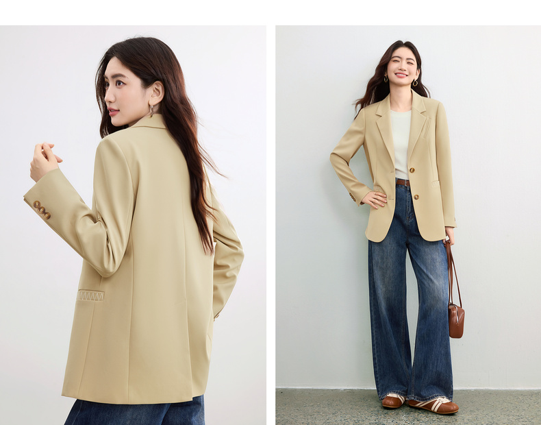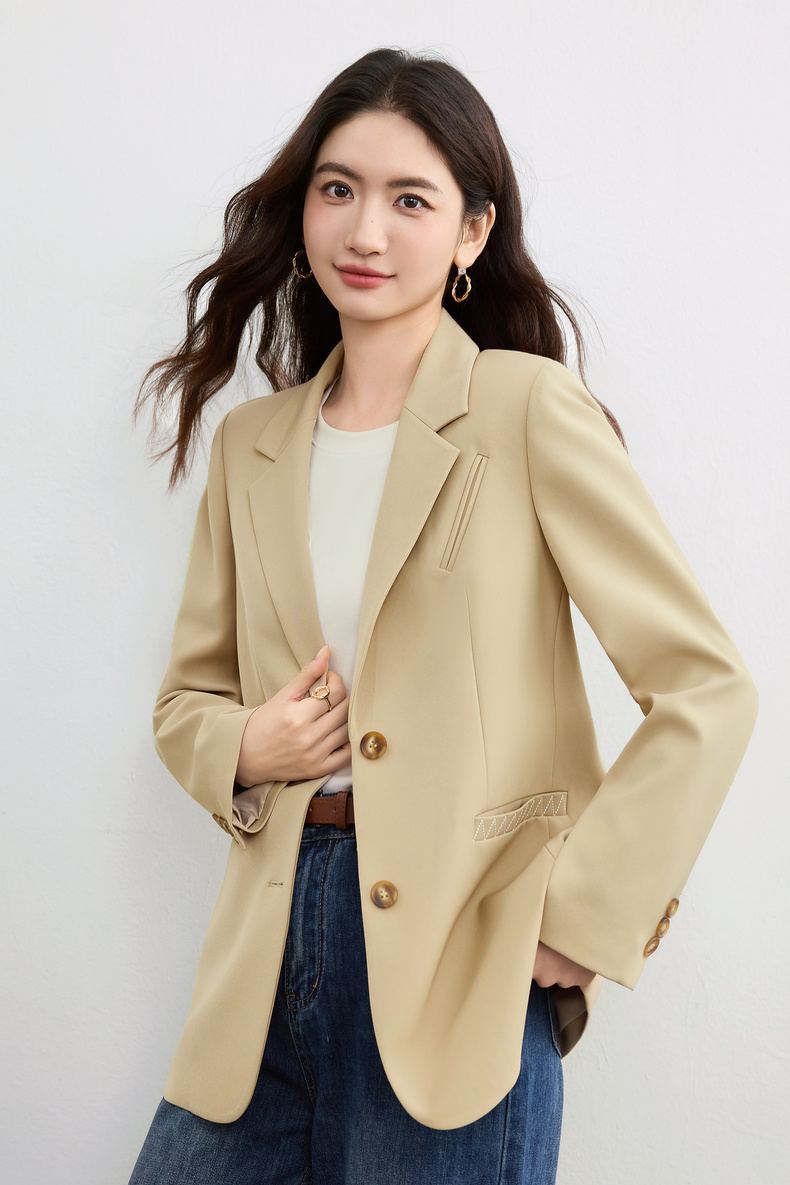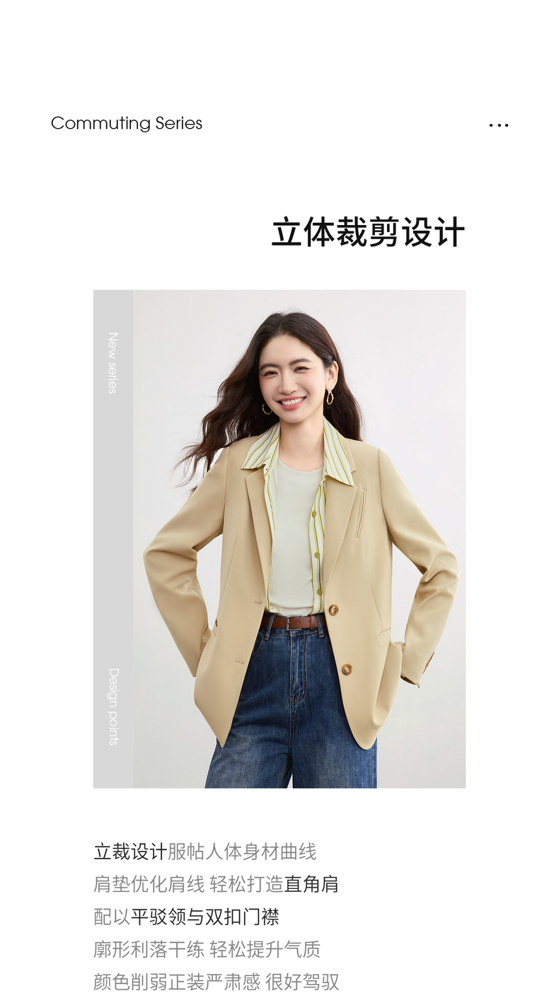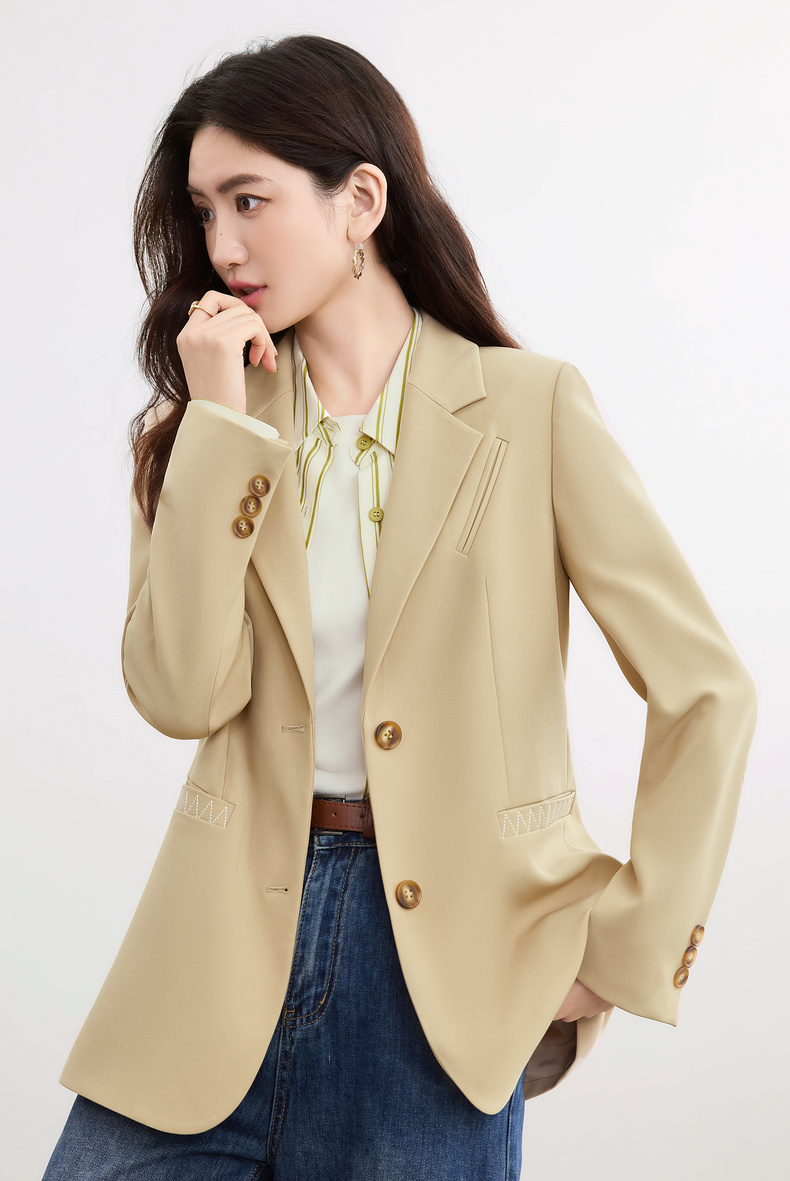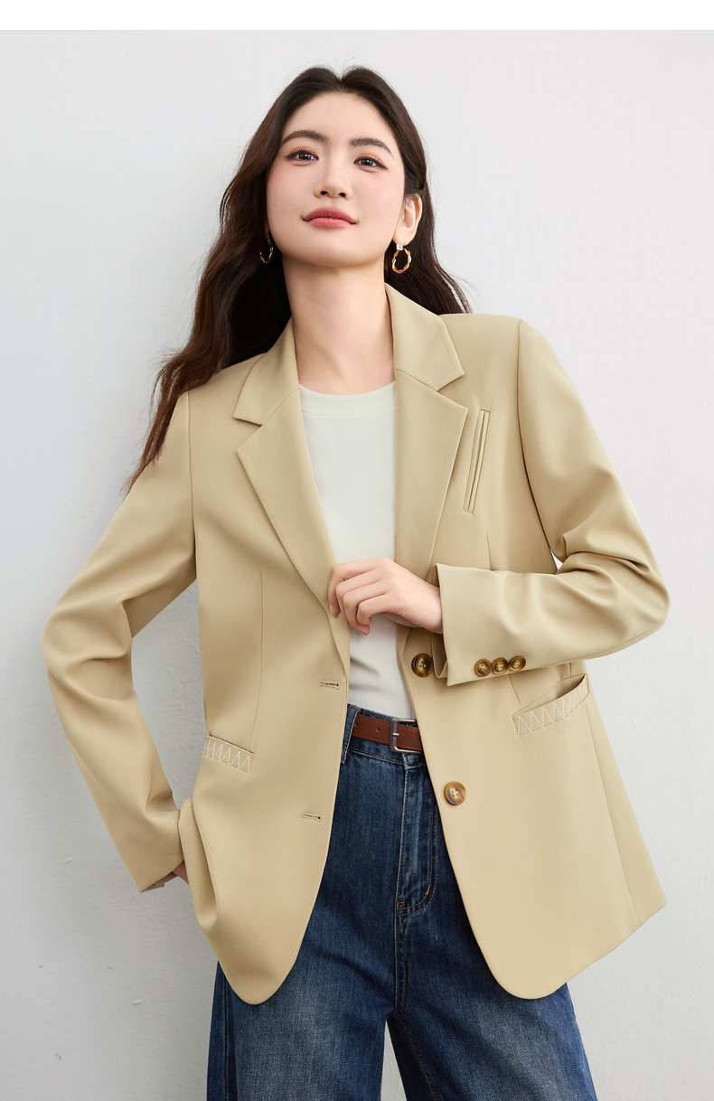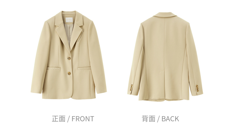 【内购】【直角肩】气质通勤平驳领两粒扣撞色线迹垫肩长袖西装外套-153XC2923