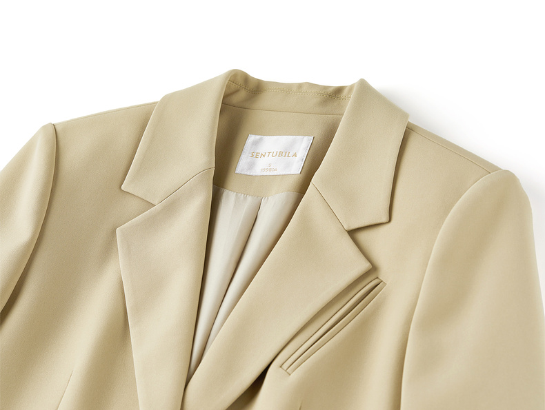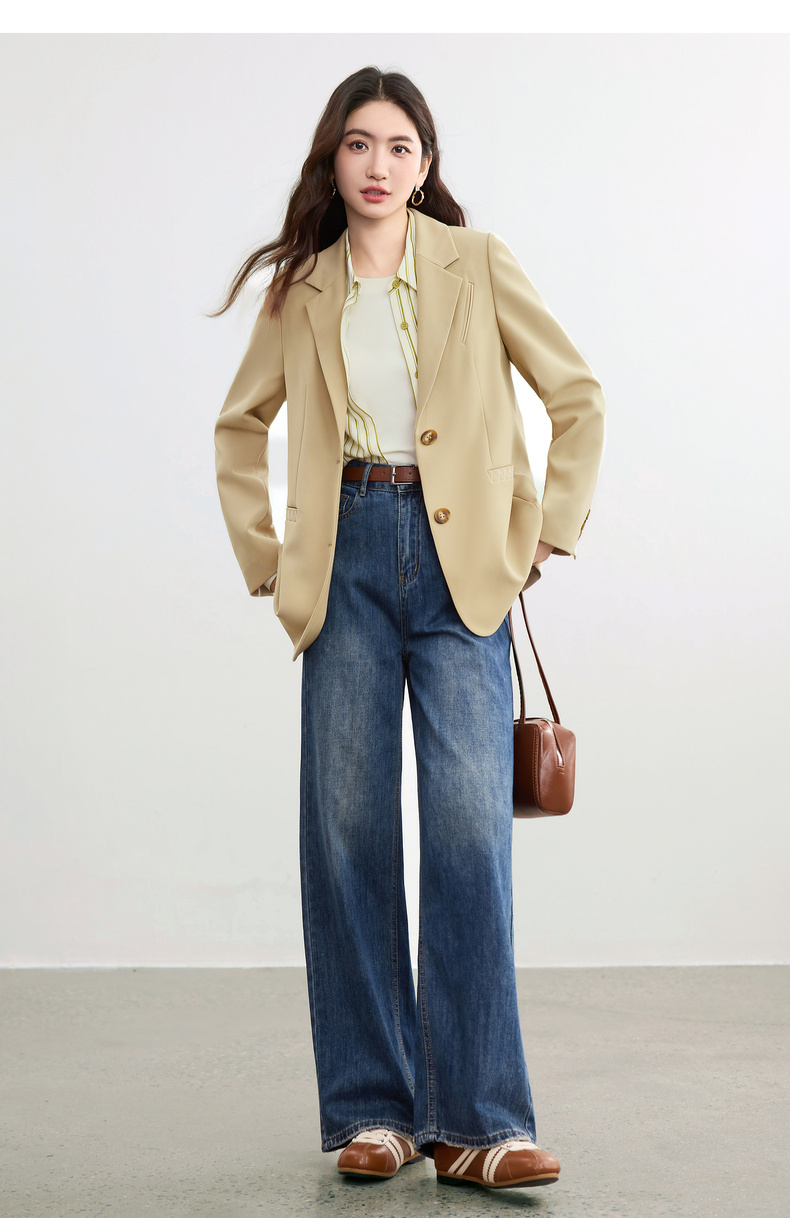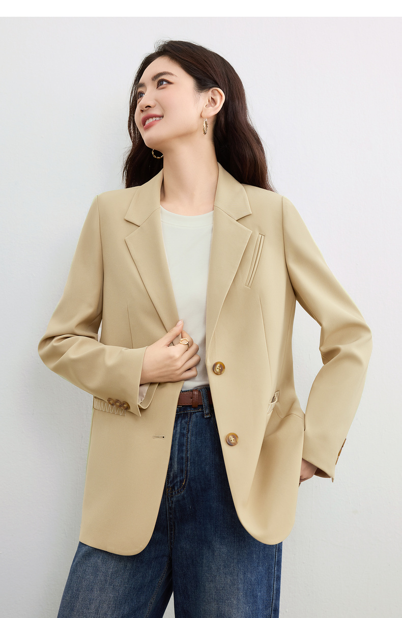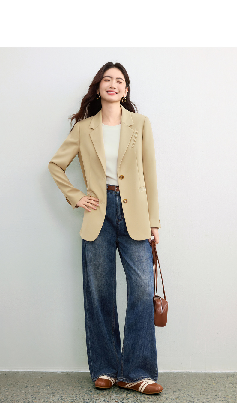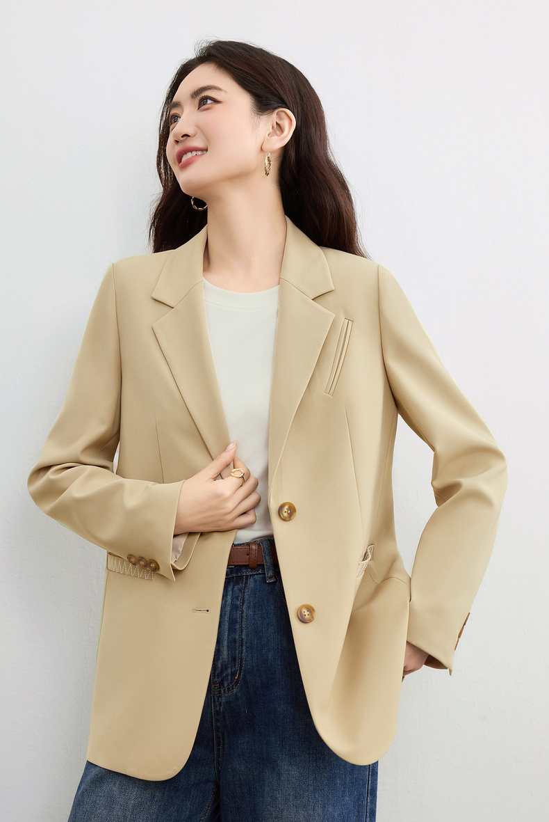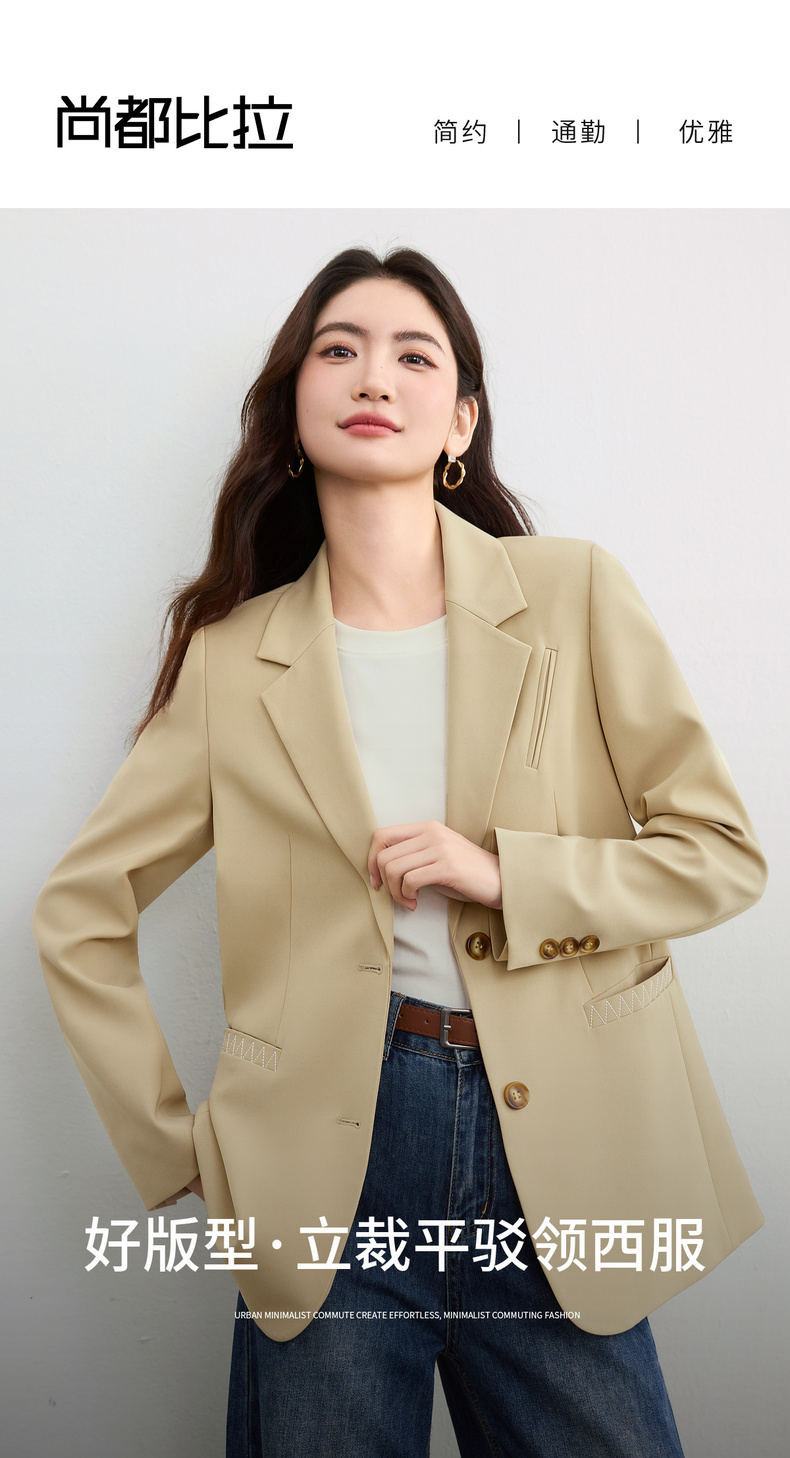 【内购】【直角肩】气质通勤平驳领两粒扣撞色线迹垫肩长袖西装外套-153XC2923