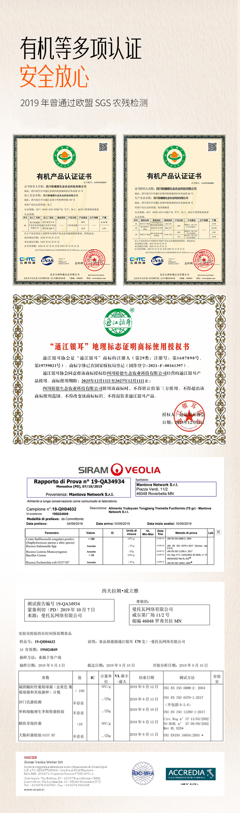 | 产品标准号: GB/T 19630.1-2011 | 厂名: 四川裕德源生态农业科技有限公司 |