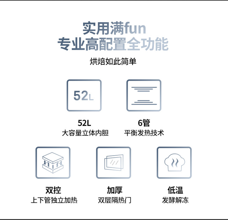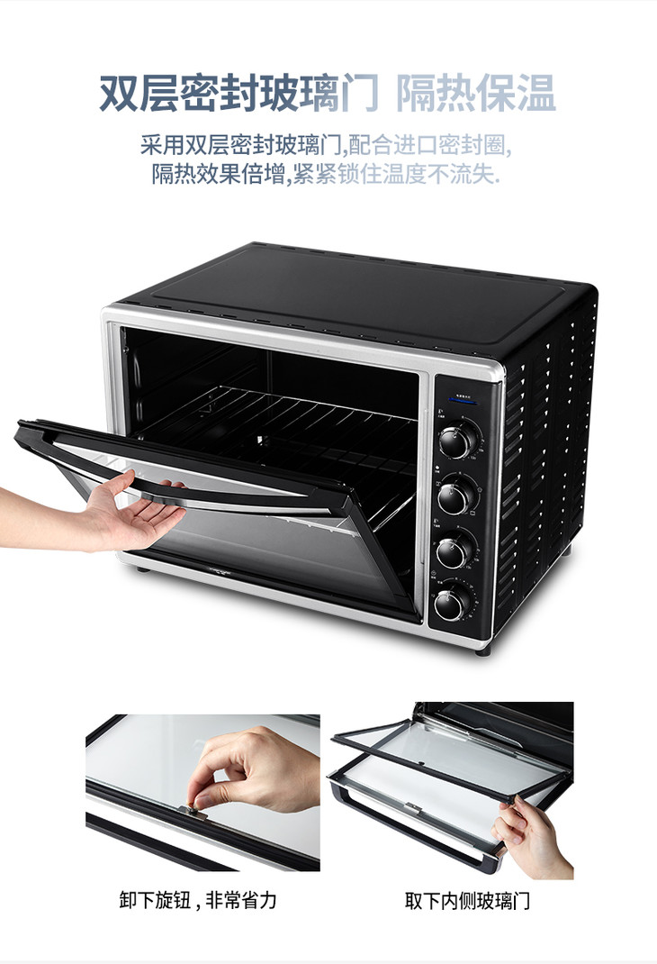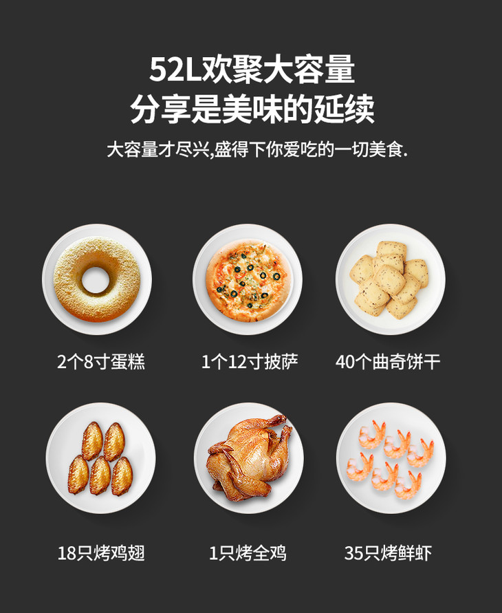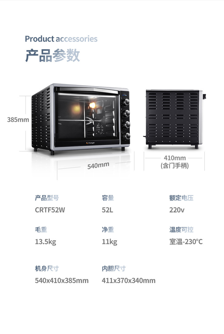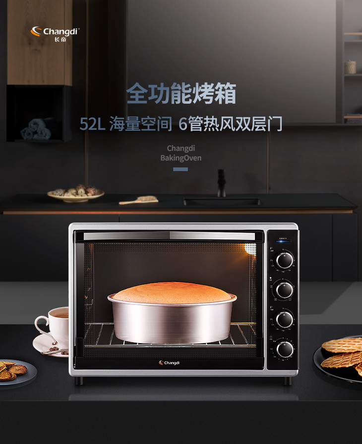 长帝CRTF52W烤箱52升家用烘焙多功能全自动大容量蛋糕披萨商用