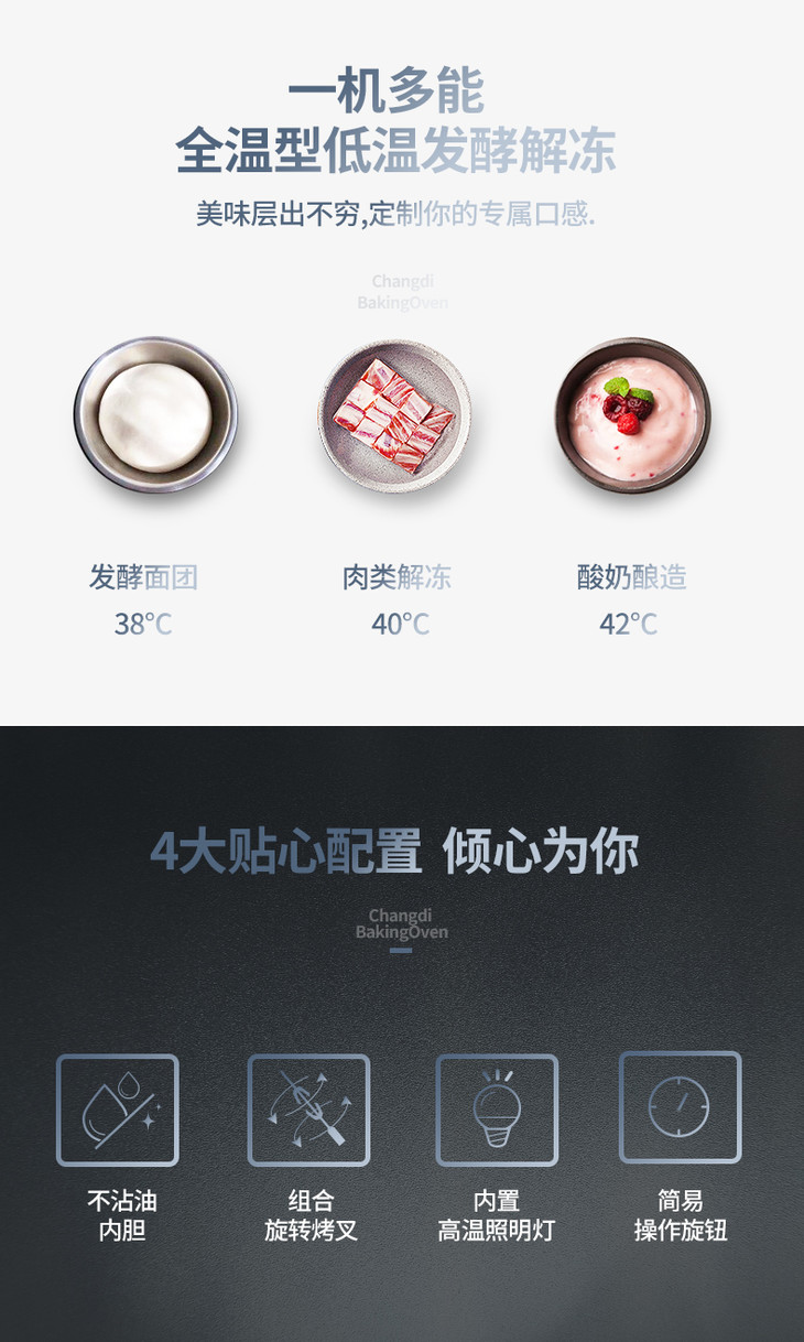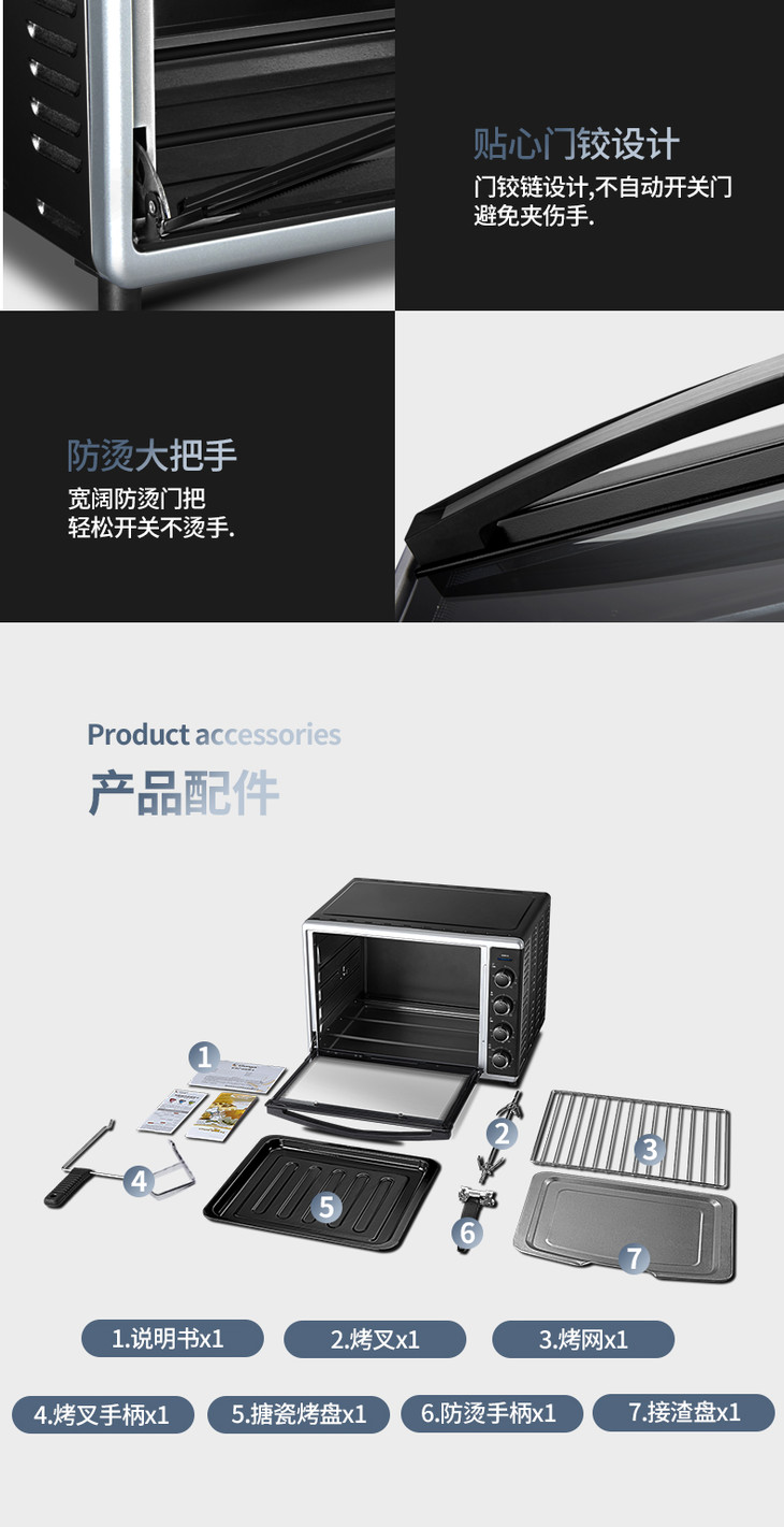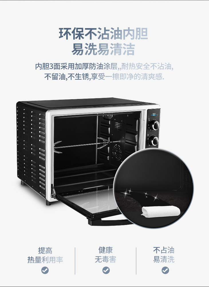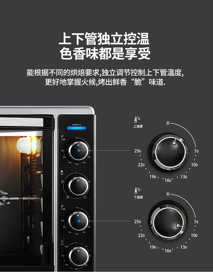 长帝CRTF52W烤箱52升家用烘焙多功能全自动大容量蛋糕披萨商用