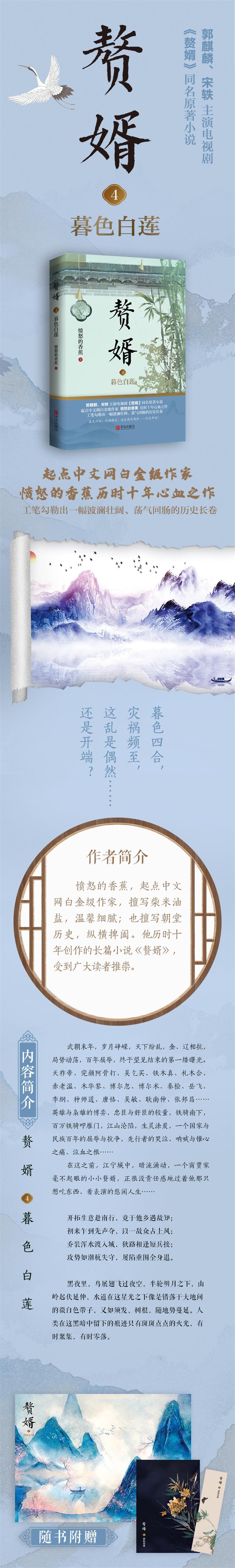 武朝末年,岁月峥嵘,天下纷乱,金、辽相抗,局势动荡,百年屈辱,终于望见结束的第一缕曙光。天祚帝、完颜阿骨打、吴乞买、铁木真、札木合、赤老温、木华黎、博尔忽、博尔术、秦桧、岳飞、李纲、种师道、唐恪、吴敏、耿南仲、张邦昌……英雄与枭雄的博弈,忠臣与奸臣的较量,铁骑南下,百万铁骑叩雁门,江山沦陷,生灵涂炭,一个国家与民族百年的屈辱与抗争,先行者的哭泣、呐喊与锥心之痛、泣血之恨…… 在这之前,江宁城中,暗流涌动,一个商贾家毫不起眼的小小赘婿,正很没责任感地过着他那只想吃东西、看表演的悠闲人生……黑夜里,鸟展翅飞过夜空,半轮明月之下,山岭起伏延伸,水道在这星光之下像是错落于大地间的微白色带子,又如须发、树根,随地势蔓延。人类在这黑暗中留下的痕迹只有斑斑点点的火光,有时聚集,有时零落。