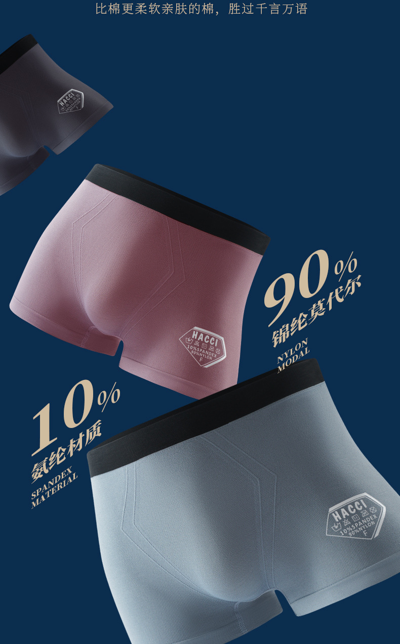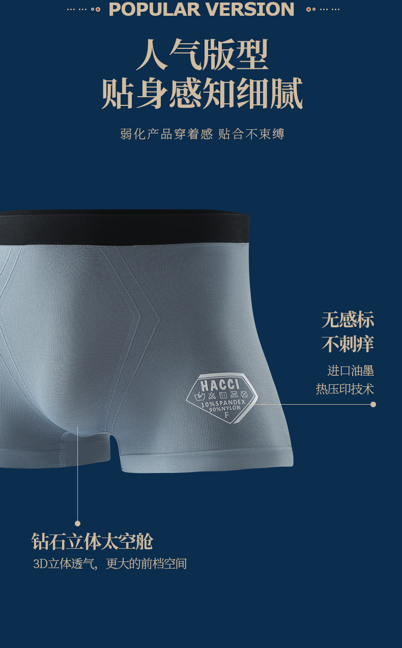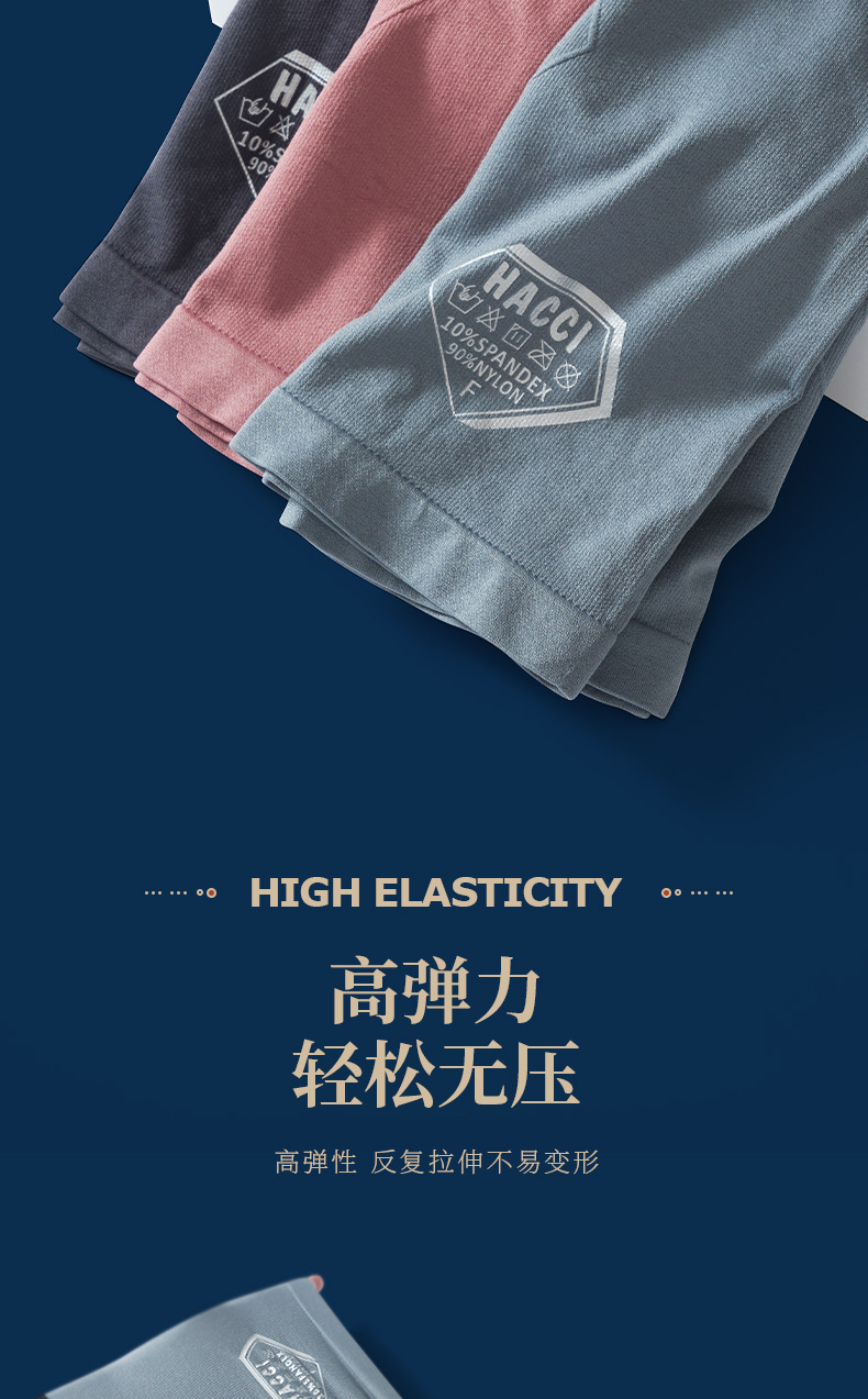 黛唯梵HACCI漫画裤2.0男士内裤高弹四角裤透气短裤无缝透气条纹平角裤男国庆清明出游