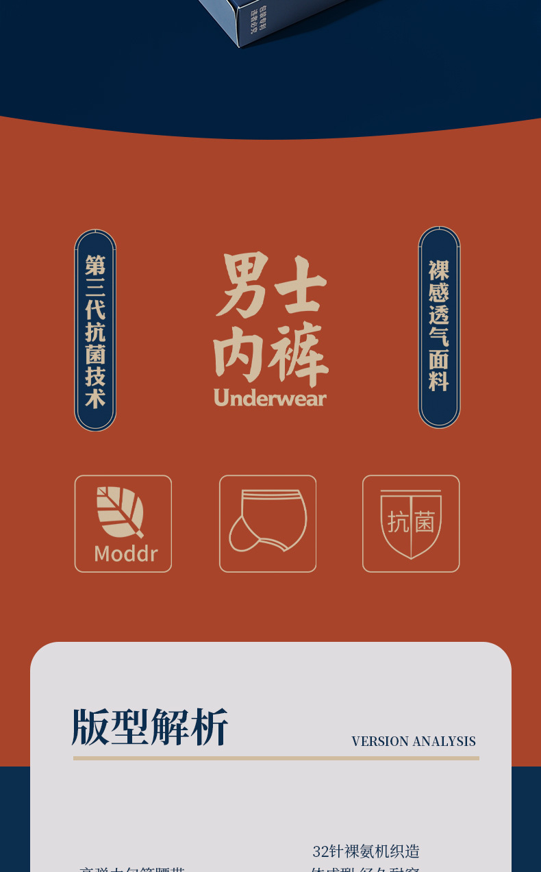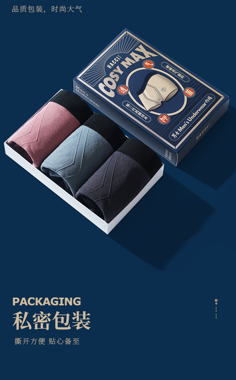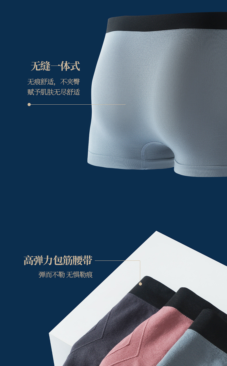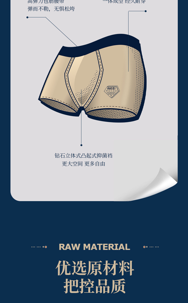 黛唯梵HACCI漫画裤2.0男士内裤高弹四角裤透气短裤无缝透气条纹平角裤男国庆清明出游