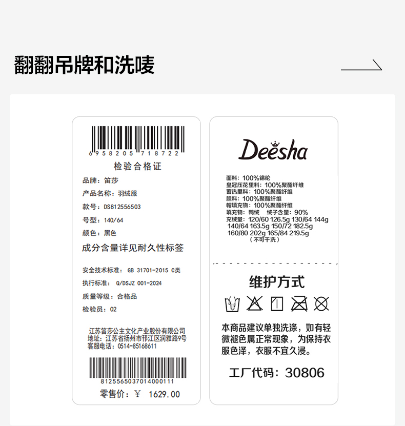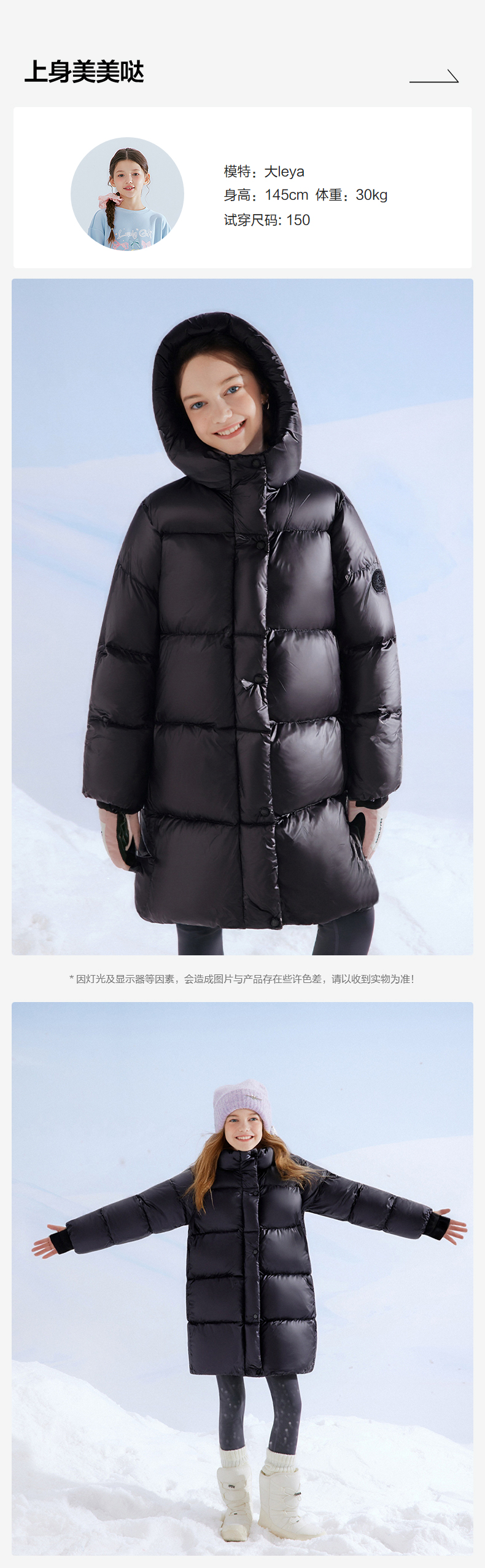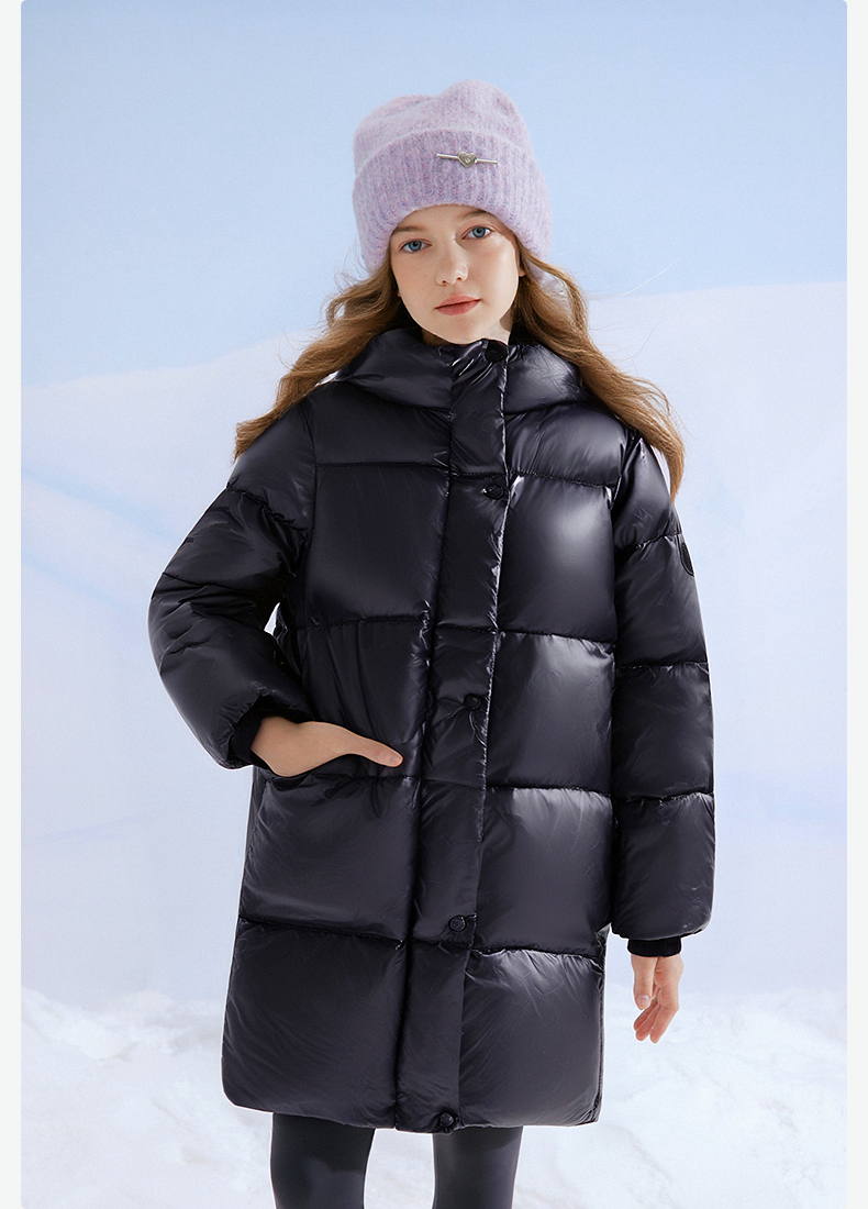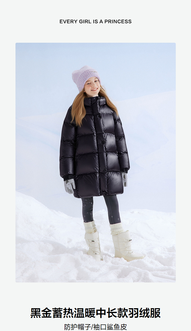 笛莎Deesha 童装女童羽绒服2025冬新款女童黑金蓄热温暖中长款羽绒服