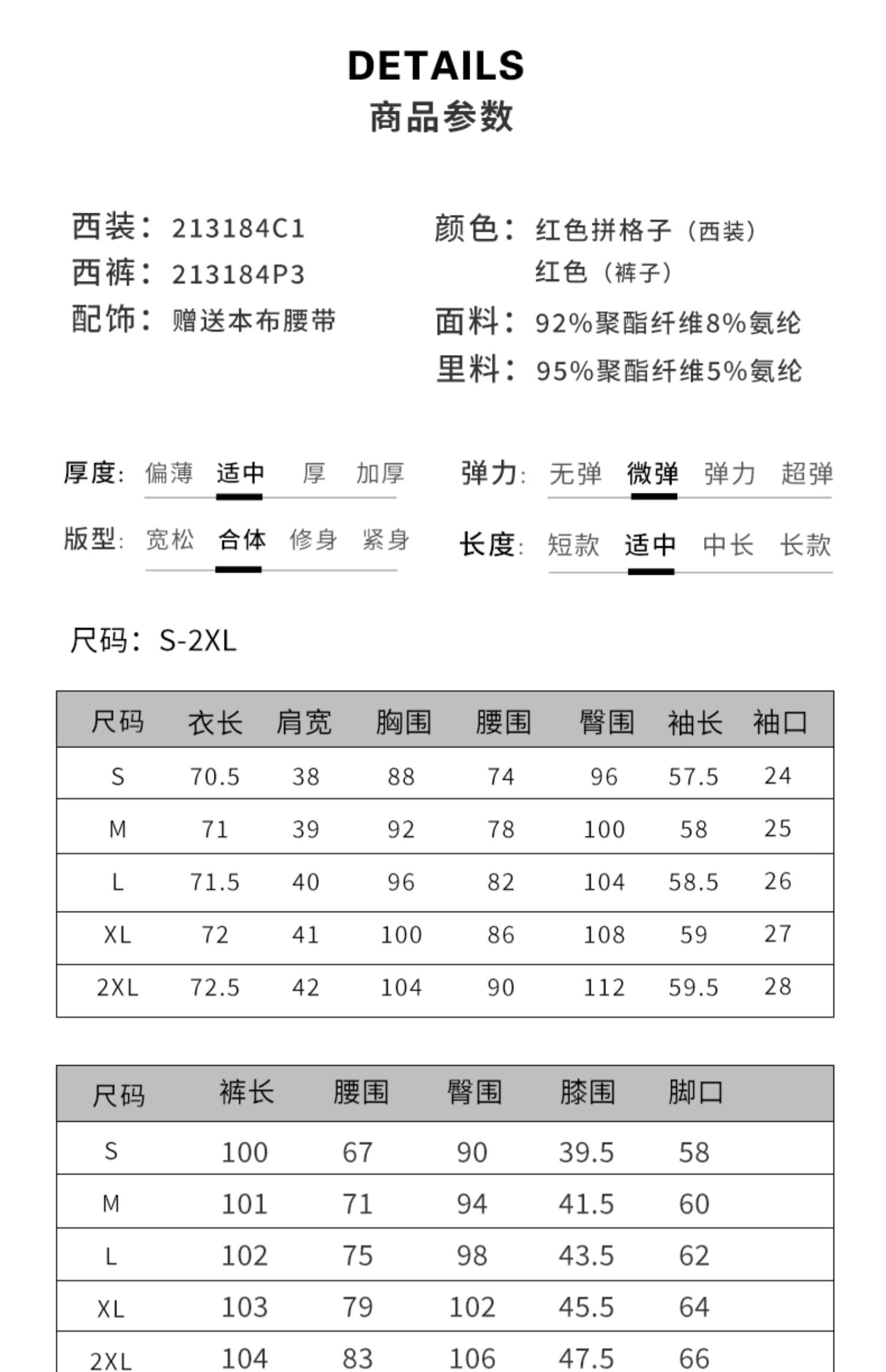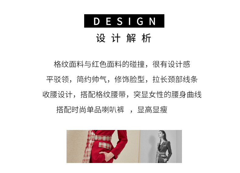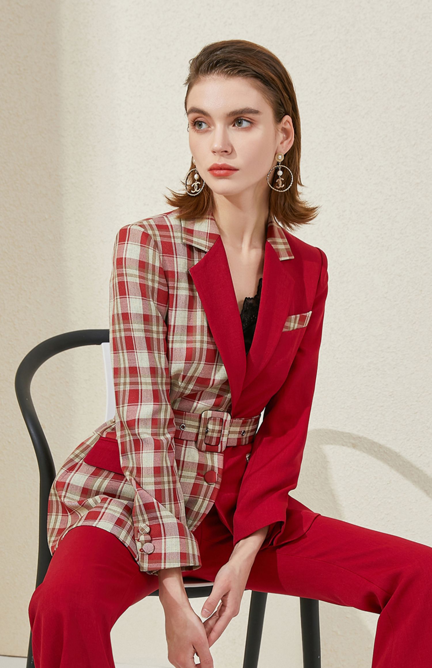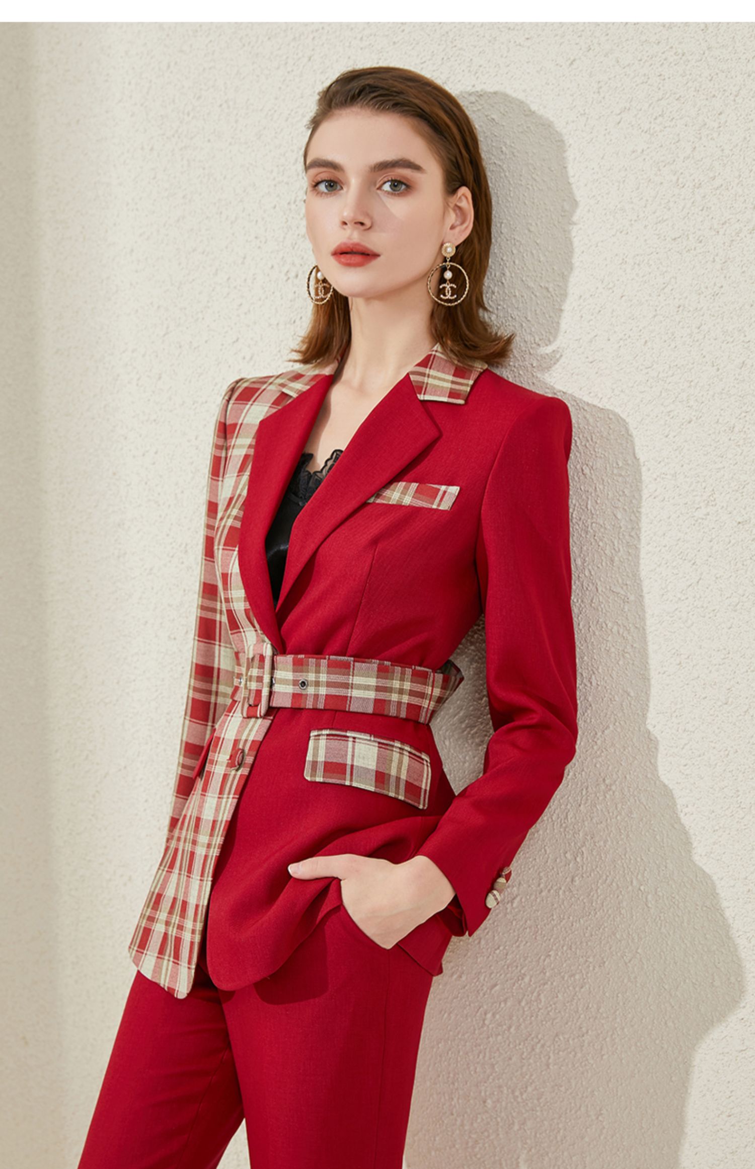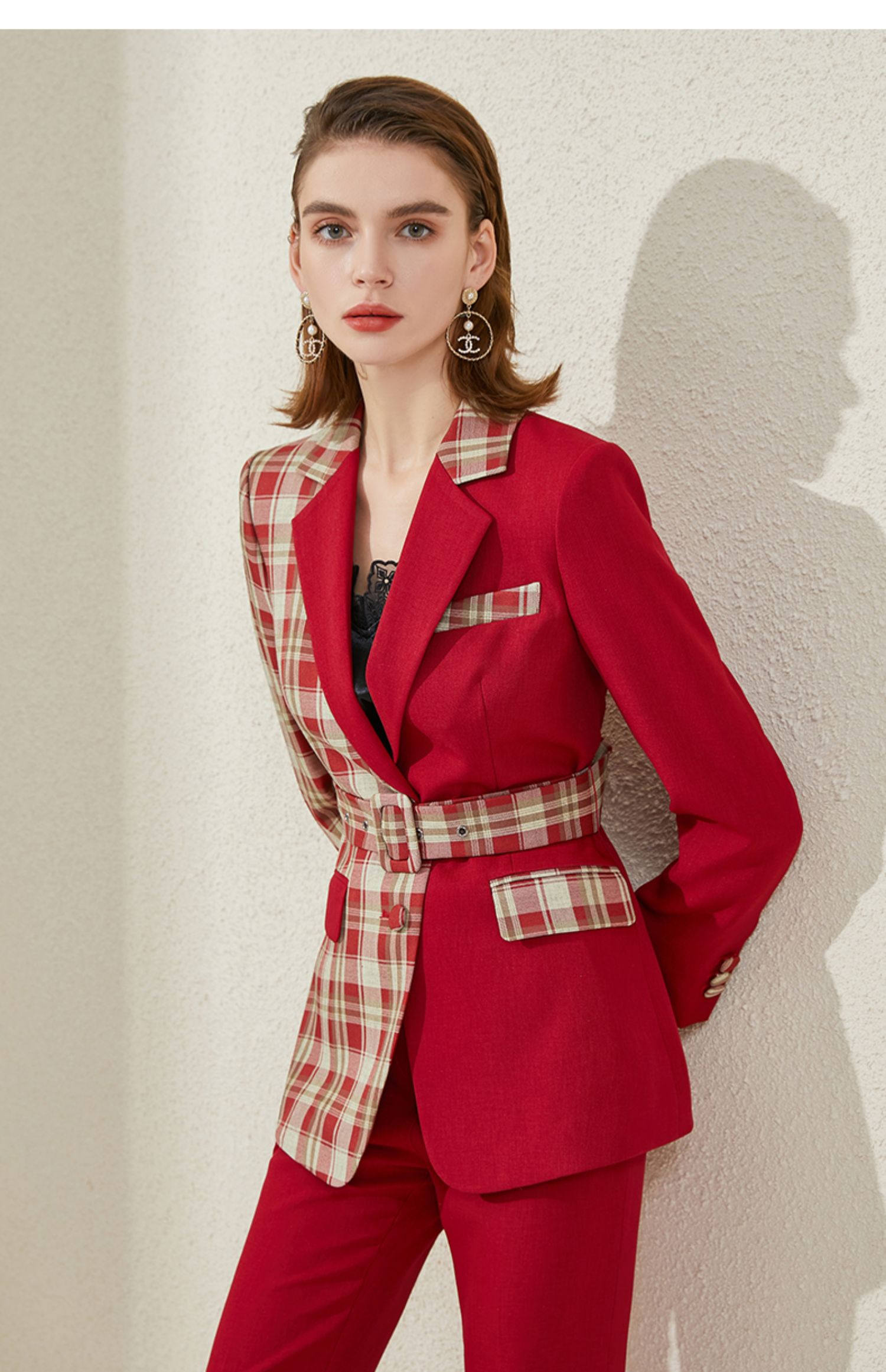 IWY/高端红色格纹阔腿裤职业装秋季长袖新款宴会主持上镜总裁西装套装 213184C1+P3