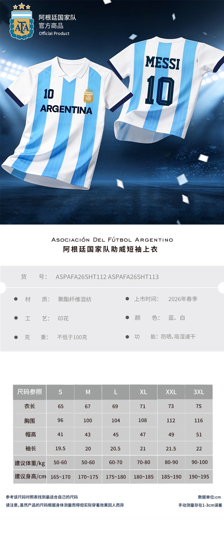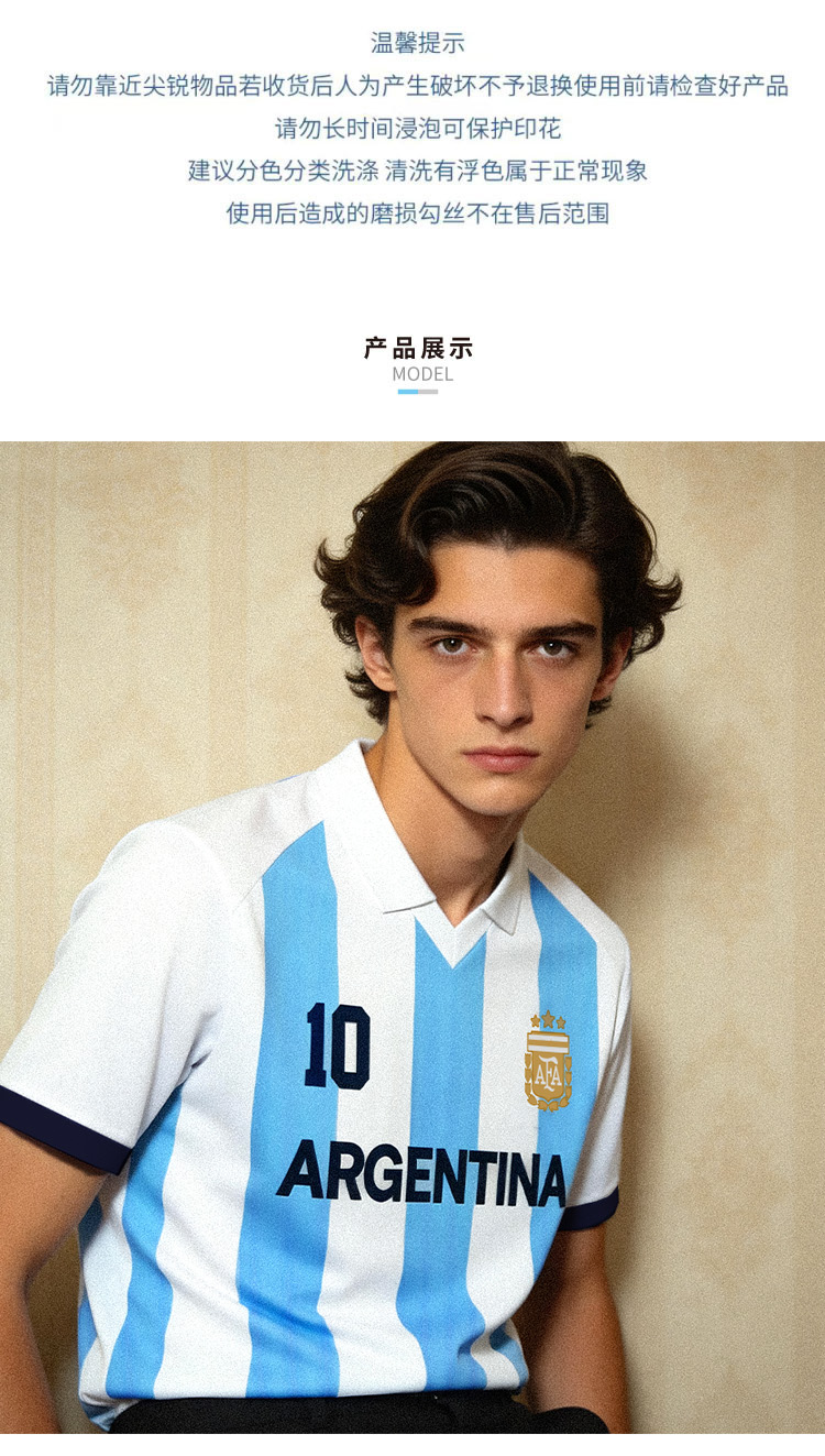 【国家队官方比赛助威服】|蓝白条纹速干运动T恤polo世界杯阿根廷