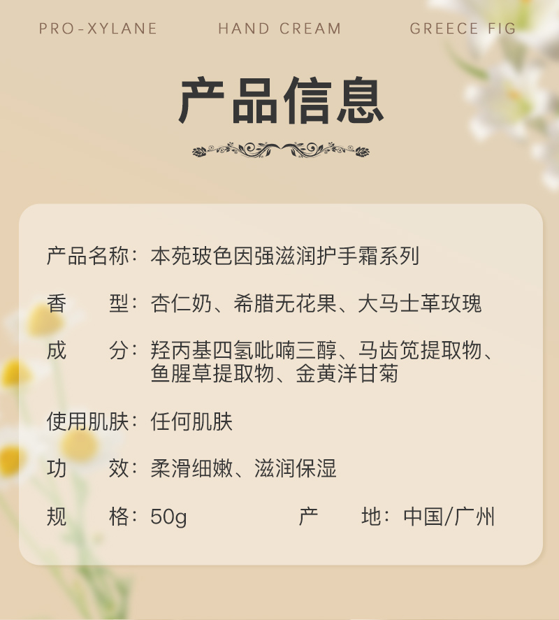 【3支装护手霜礼盒】本苑玻色因强滋润护手霜 SPA级护肤 72小时滋润保湿 质地轻盈不油腻50g/支
