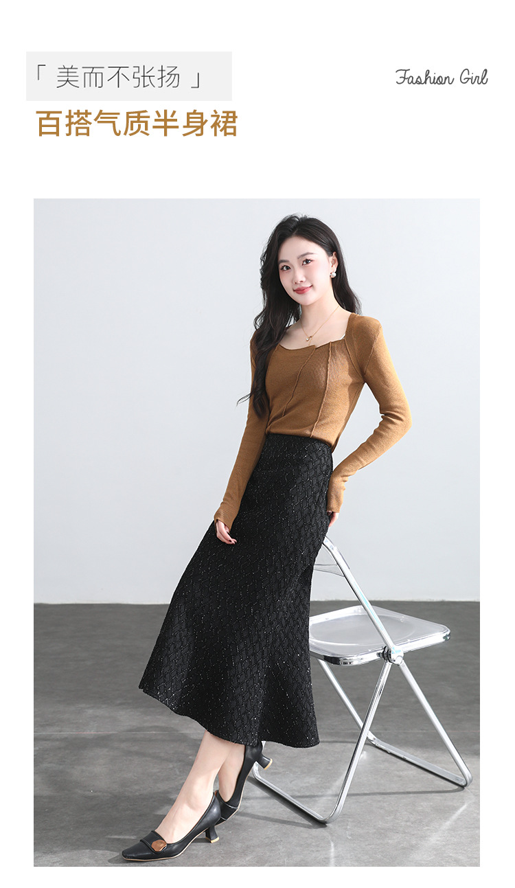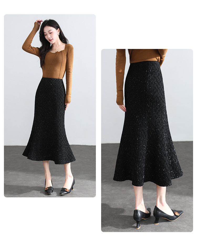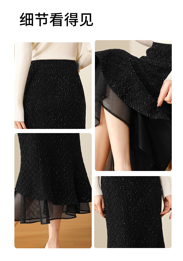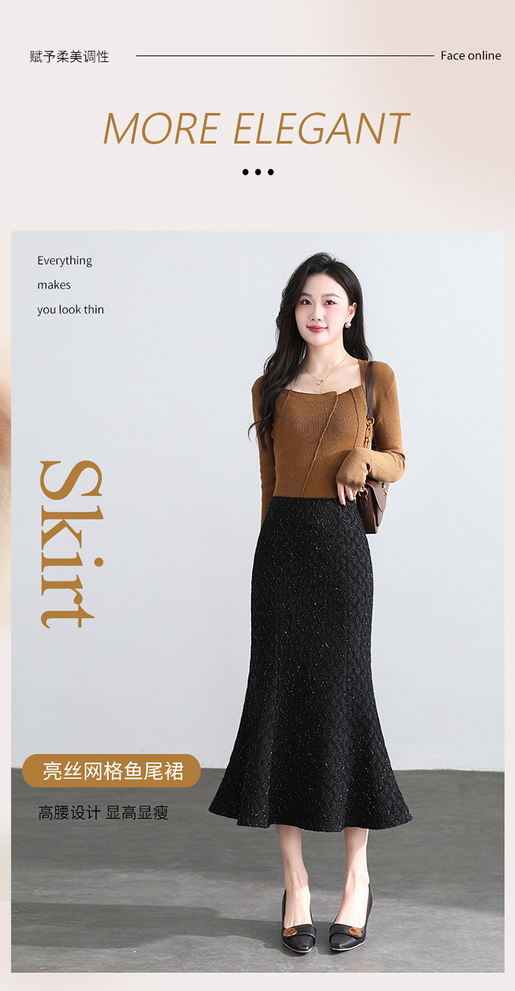 通勤简约修身时尚包臀鱼尾裙,冬款高腰中长款气质优雅半身裙MYX-YGLR-28156-L