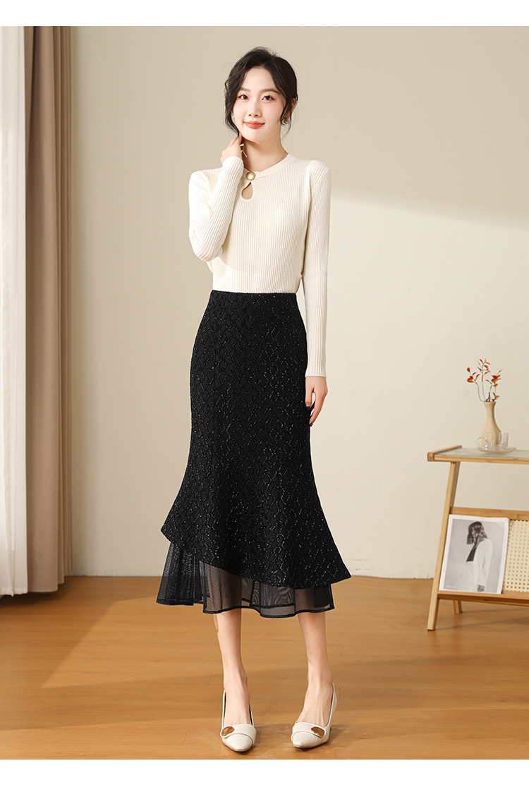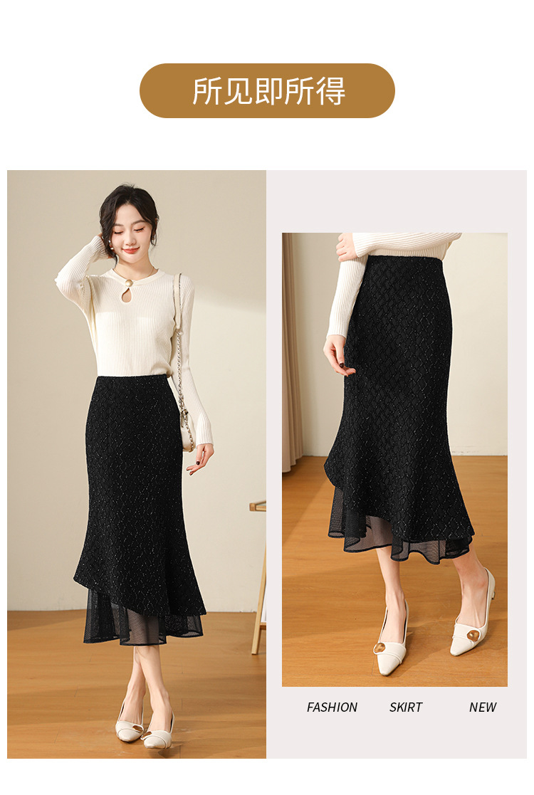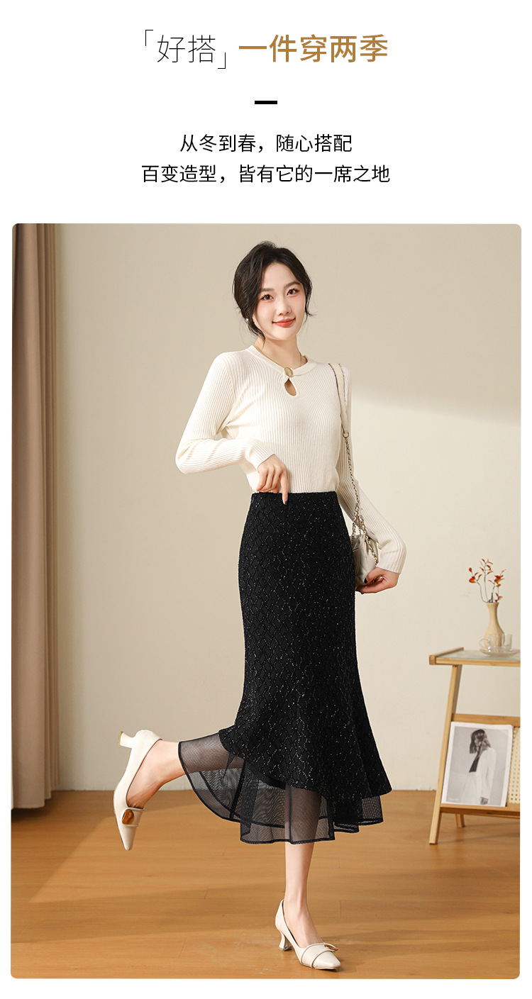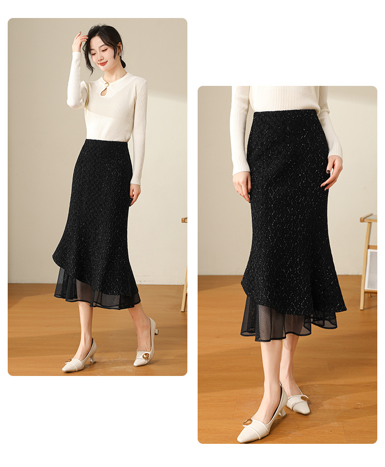 通勤简约修身时尚包臀鱼尾裙,冬款高腰中长款气质优雅半身裙MYX-YGLR-28156-L