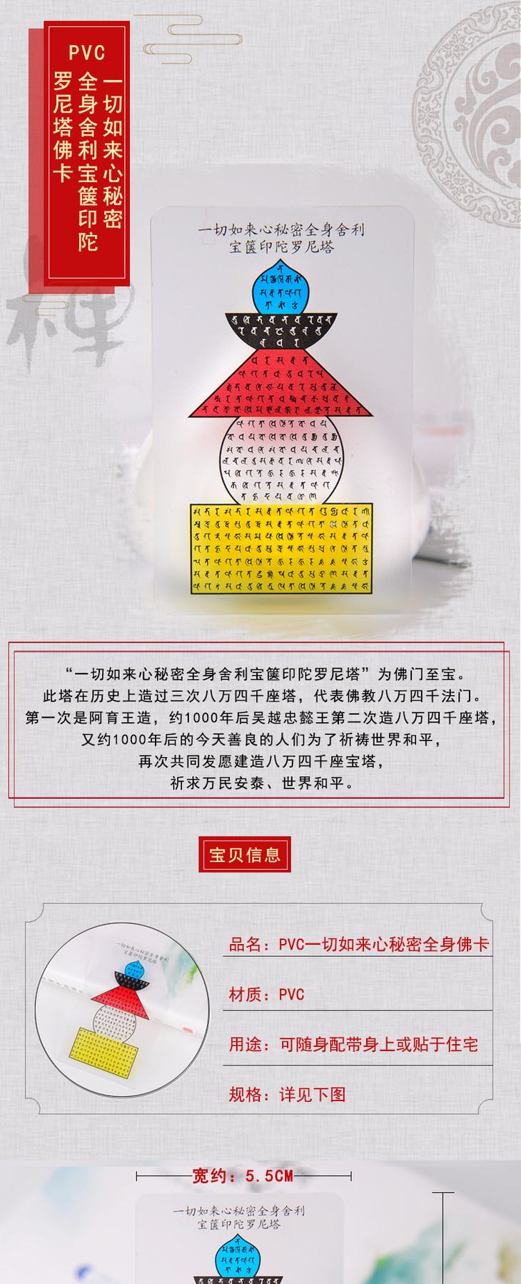 护明佛卡身辟邪佛卡PVC一切如来心秘密全身舍利宝箧印陀罗尼塔透卡片