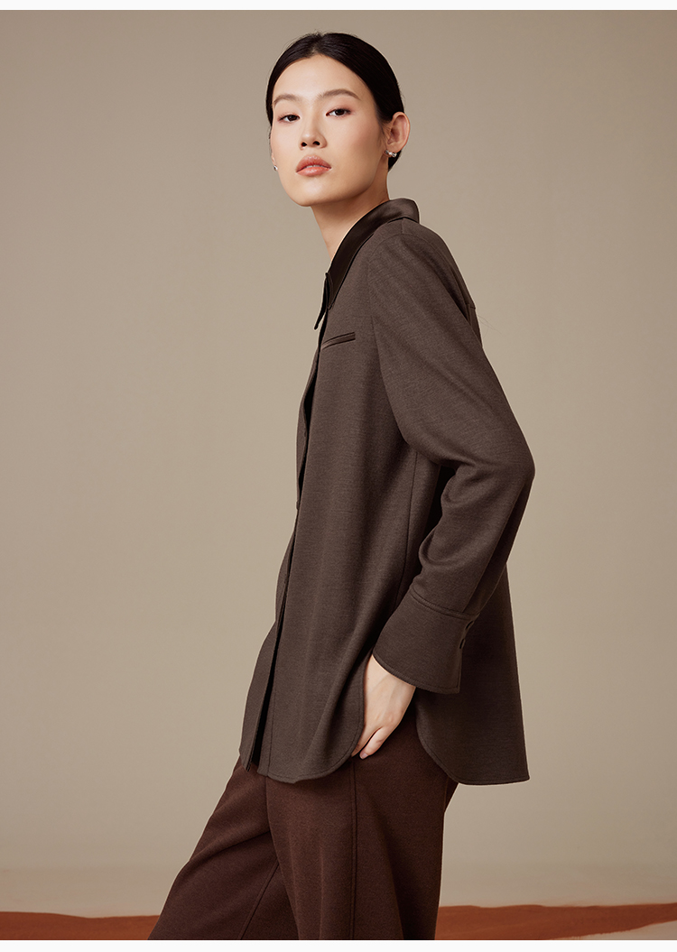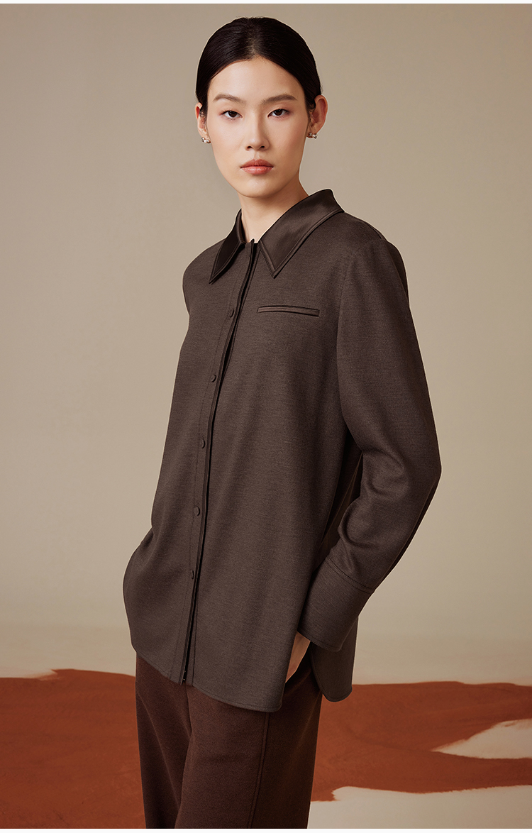 pure touch女士绵羊毛正肩合身廓形衬衫1301244424