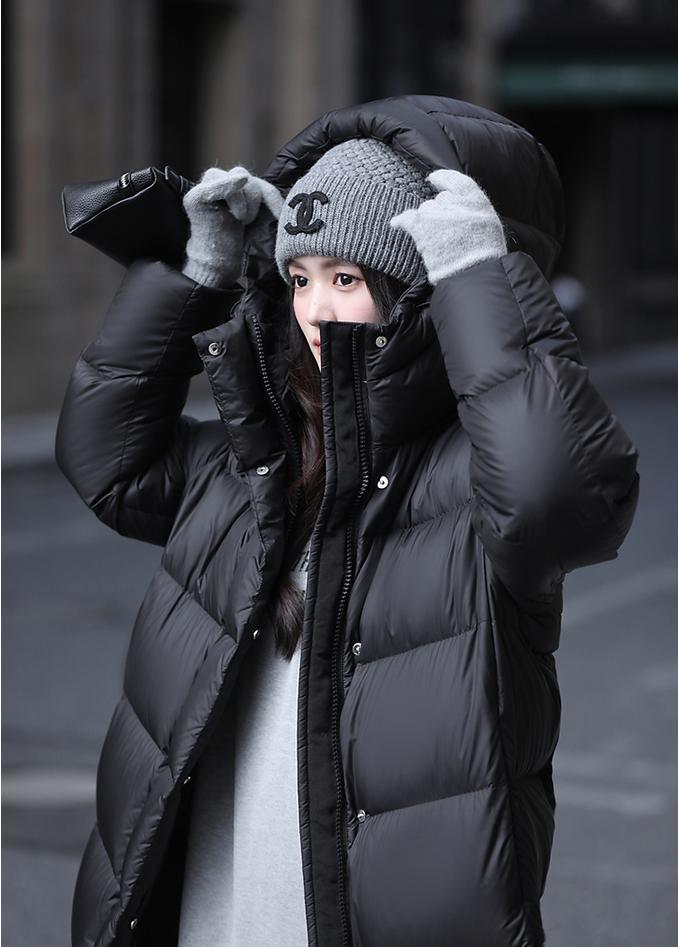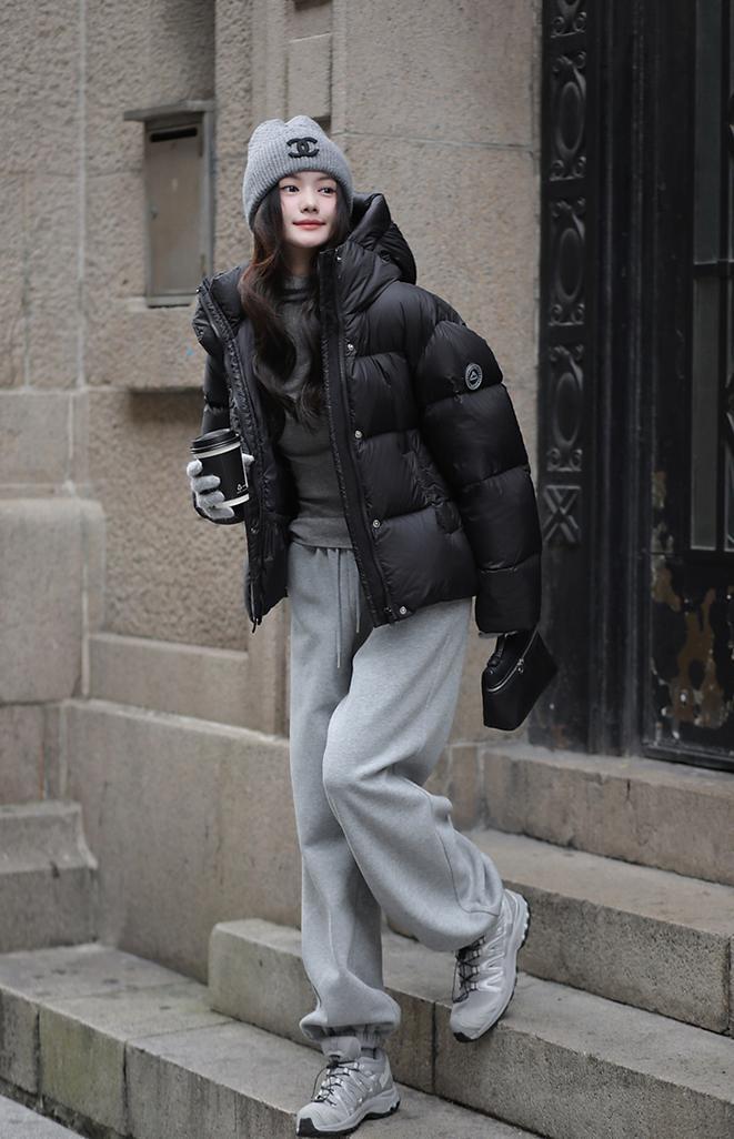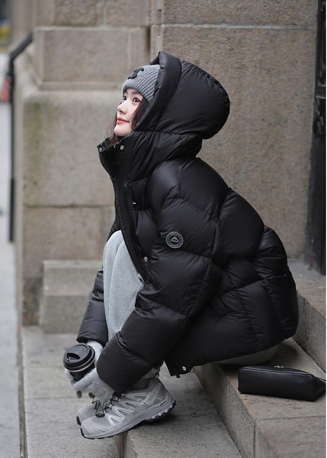🖤黑色 黑白即经典,经典即永恒 上身还很显比例非常百搭好看! 帽子巨大非常挡风! 显瘦耐脏总之集合了所有的优点