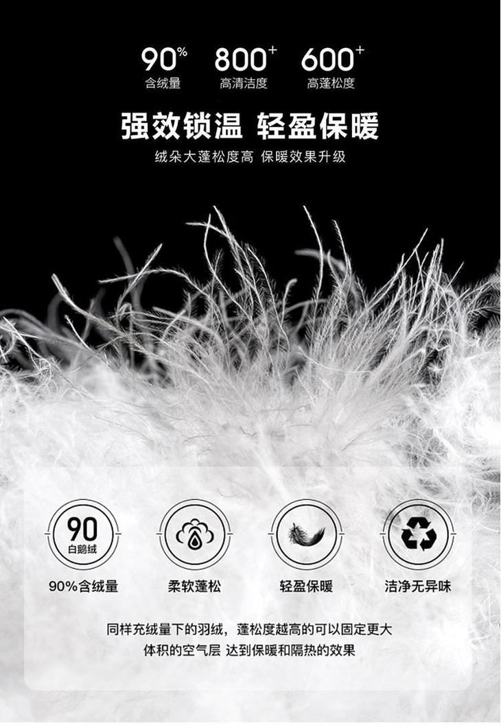 ⚠️御寒主力,轻盈登场! ✅核心防护,高密防风防泼水面料 无惧寒风冷雨,保持内里干爽舒适 ✅贴心细节,面料经防静电处理 不易吸灰沾尘,冬日耐脏实穿,打理更省心! ✅黄金保暖,内里填充 90优质白鹅绒 轻盈体验与超强保暖力,锁住温暖不臃肿 ✅方块绗缝,精密绗缝将高克重鹅绒牢牢锁定 确保全身温暖均匀分布,无冷点 高克重鹅绒 X 超轻高强面料=实打实的暖轻帅! 这才是让你无惧寒冬,体面出行的终极防护✅