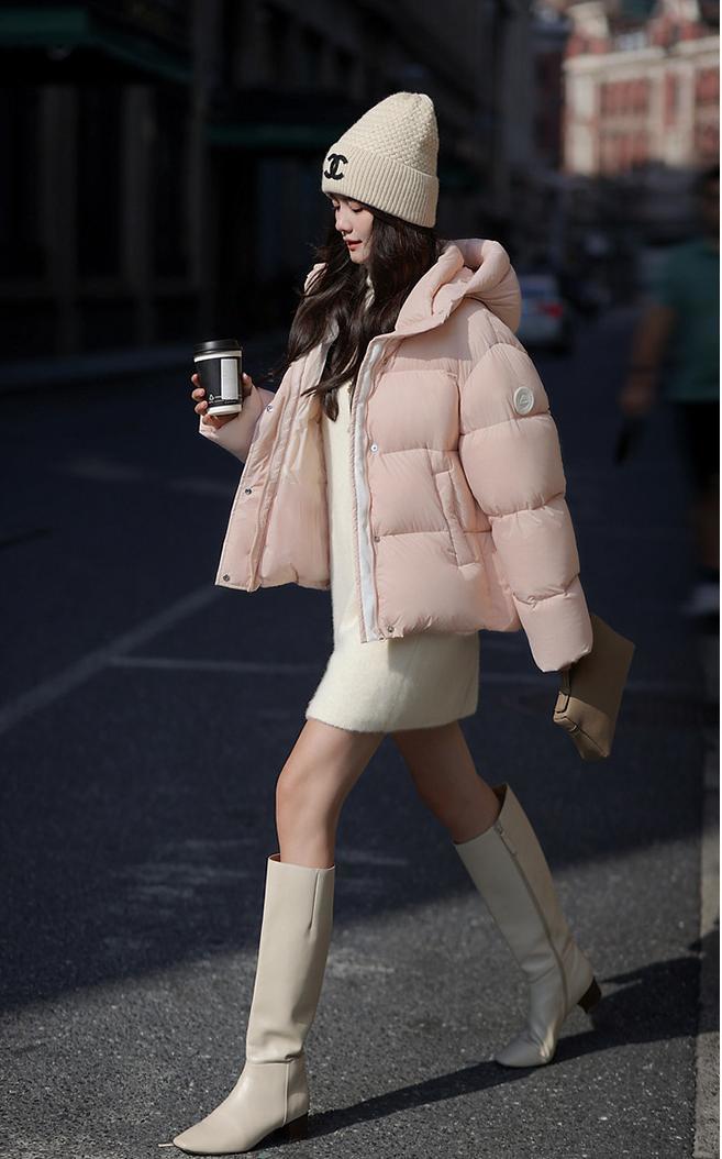 😍想要干净又乖巧风格的 可以放心冲奶昔米 上身真的巨显肤色白 整个温柔得掐出水来了 真的很稳扛过冬天的那种!!