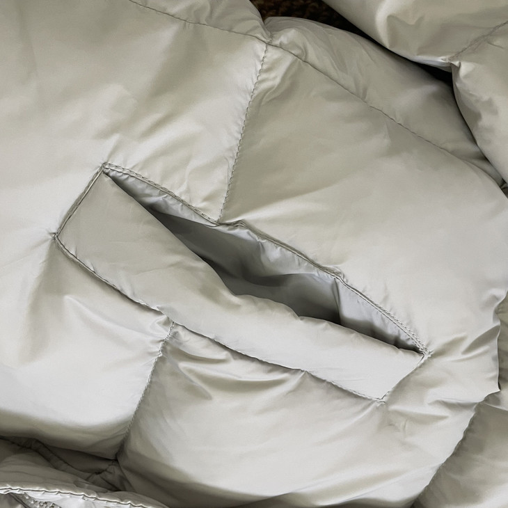 🔺整件衣服的充绒也十分的均匀饱满! 包括袖口、领口、帽子、口袋等都是鼓鼓囊囊的! 高蓬松度,按压明显塌陷,收到货抖一抖、甩一甩立马就饱满起来了! 外层采用耐磨抗撕裂面料,一线羽绒大咖常用的面料! 手感柔软细滑,呈现着金属般的光泽 轻薄舒适不压身,密度相当高,耐磨耐刮抗撕裂 砖业级防水防污,不易粘黏易打理!
