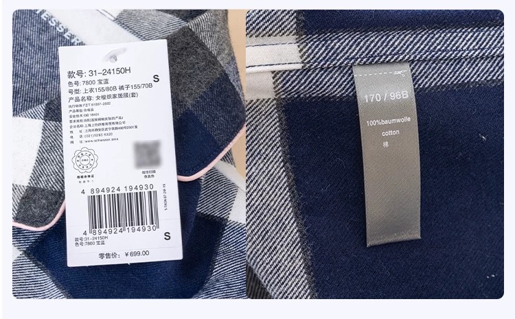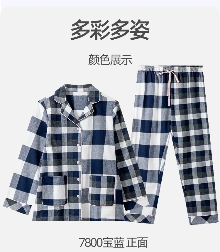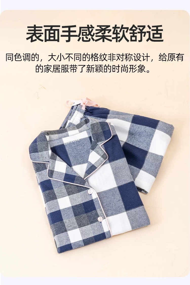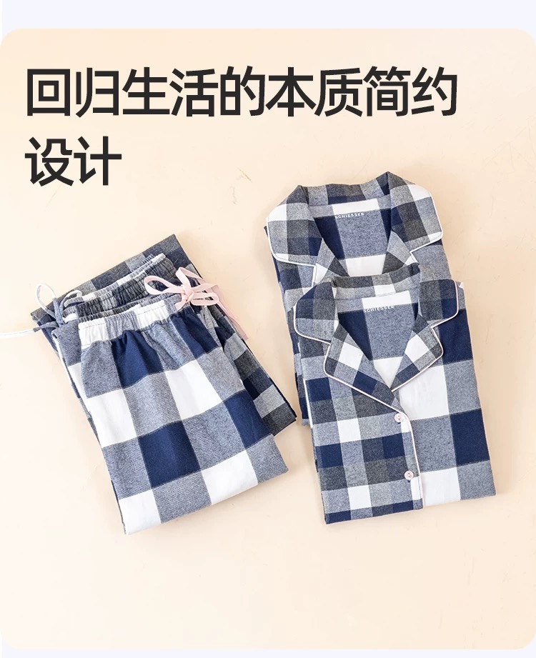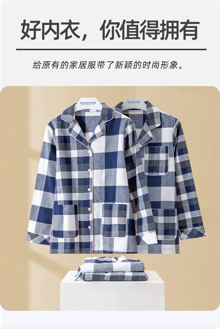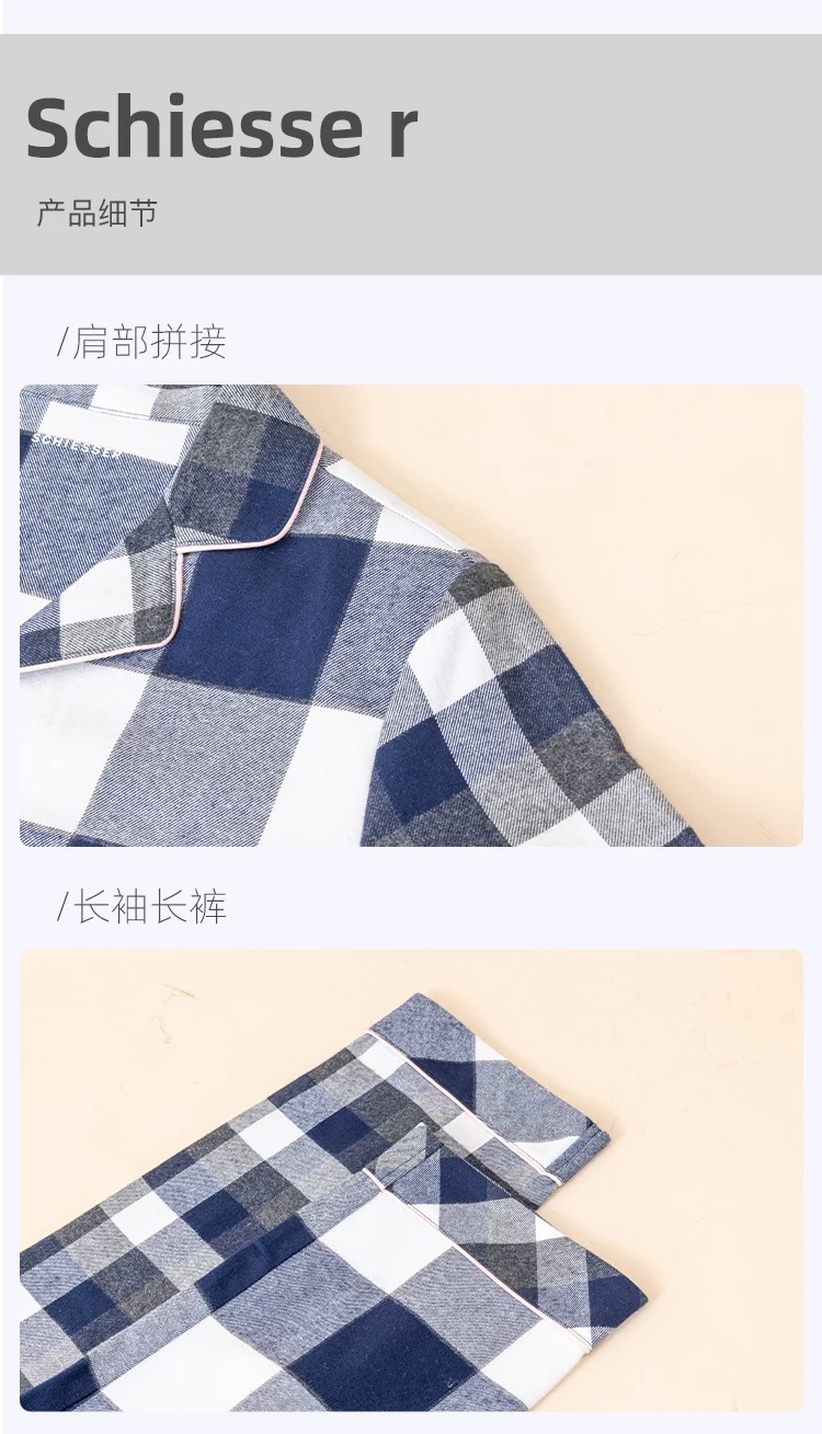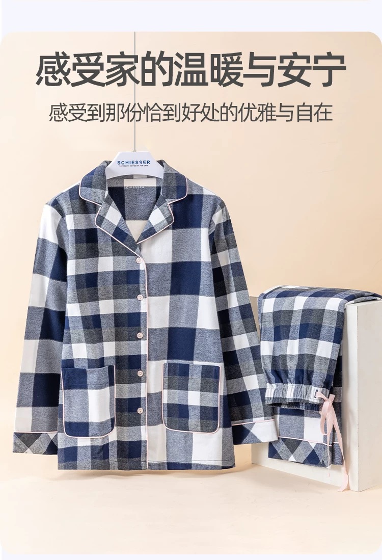 【全棉情侣 AB格子】SCHIESSER德国舒雅全棉AB格子情侣系列女士长袖家居套装31/24150H