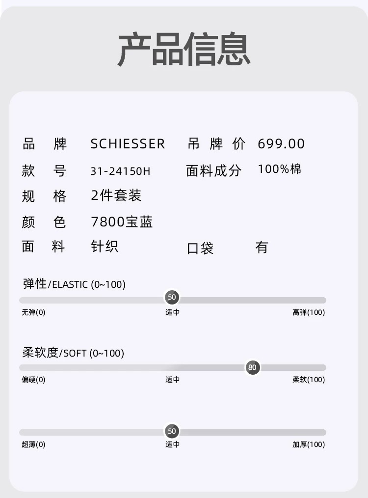 - 来自德国的SCHIESSER舒雅,专注做内衣一百四十余年,不遗余力的材料创新,因材而异的专业剪裁,健康环保的加工技术以及充满文化关注的时尚主题,做你认识之外的舒适内衣。