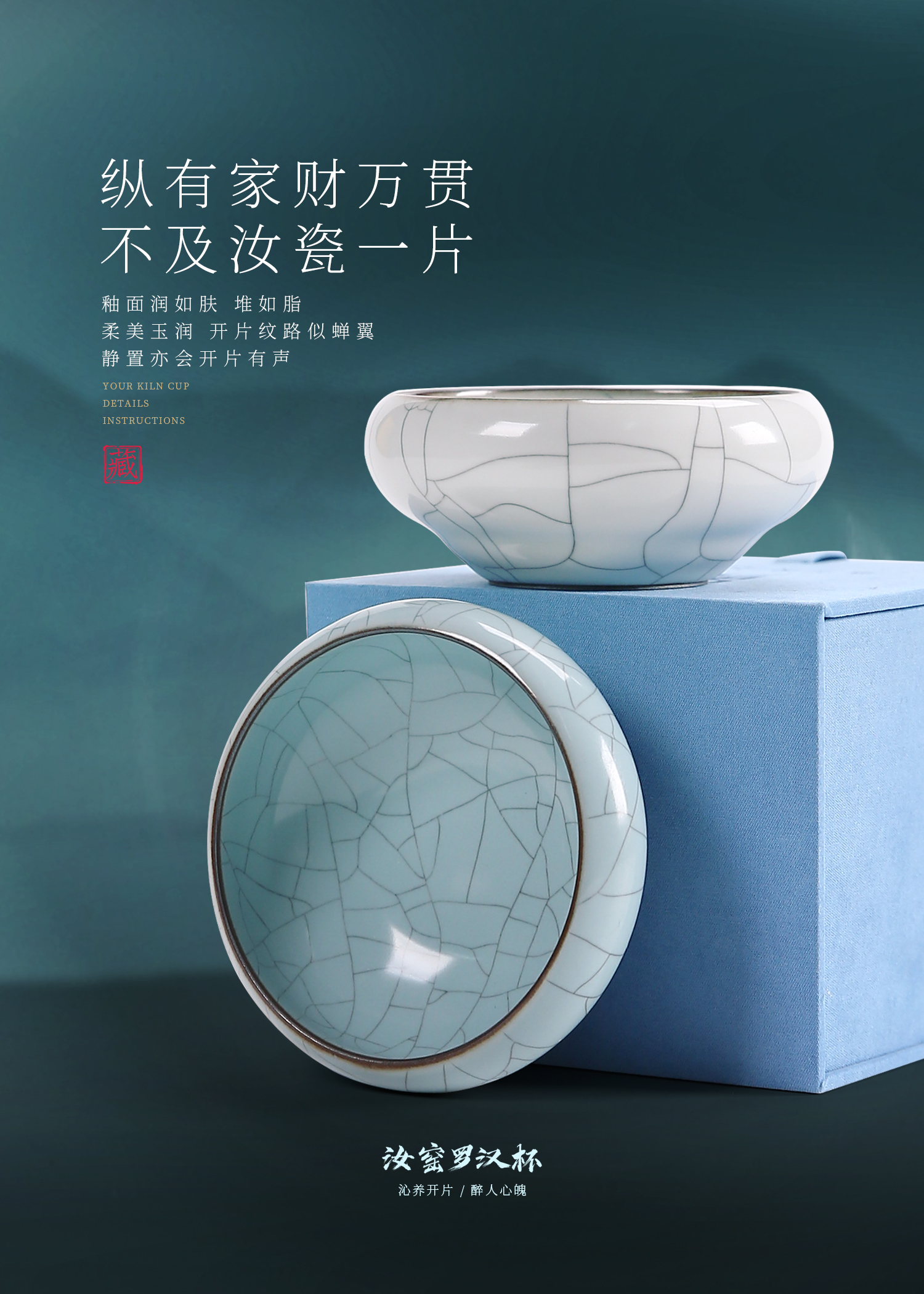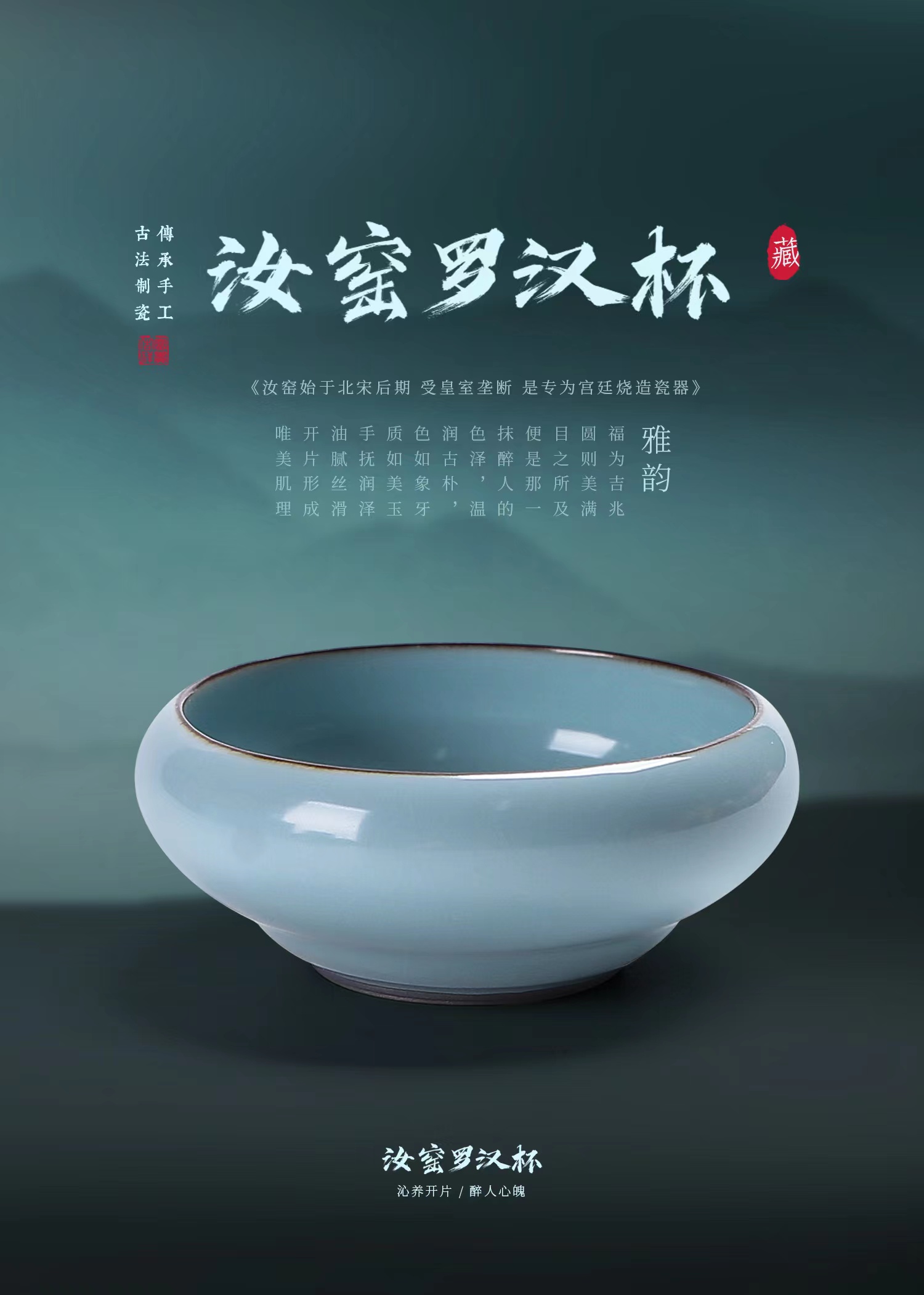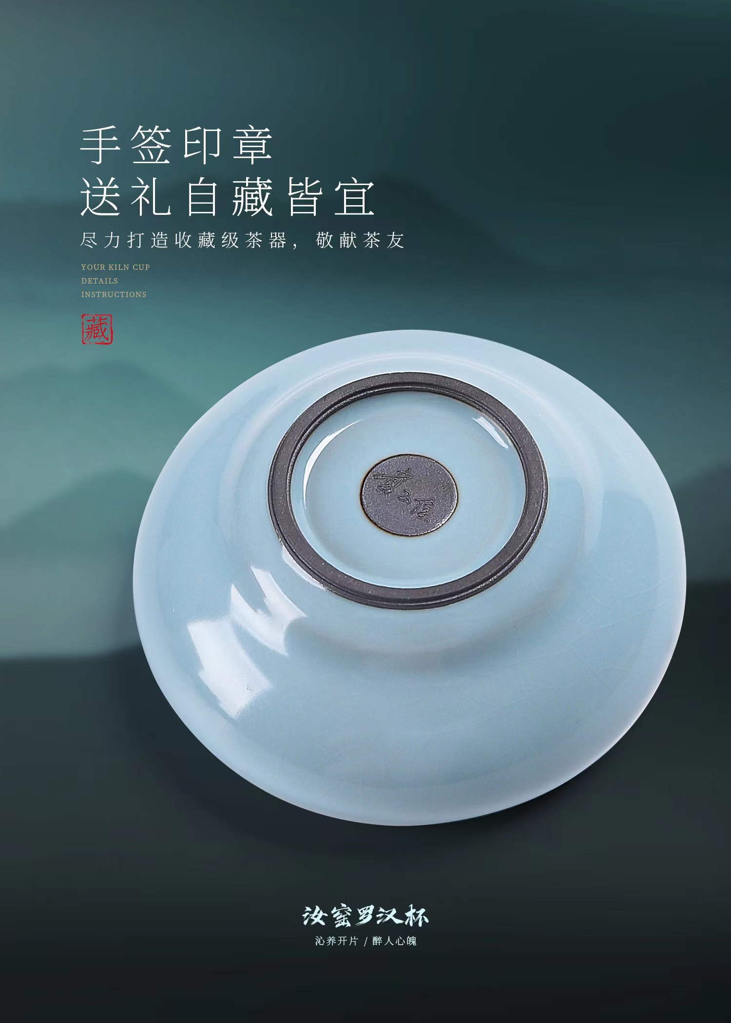 【传承手工 古法制瓷】汝窑罗汉杯 天青主人杯、月白主人杯,作者签章 品质保证,珍藏品鉴 送礼臻品