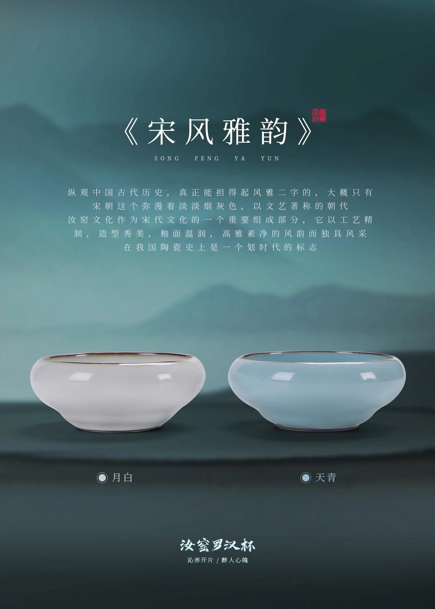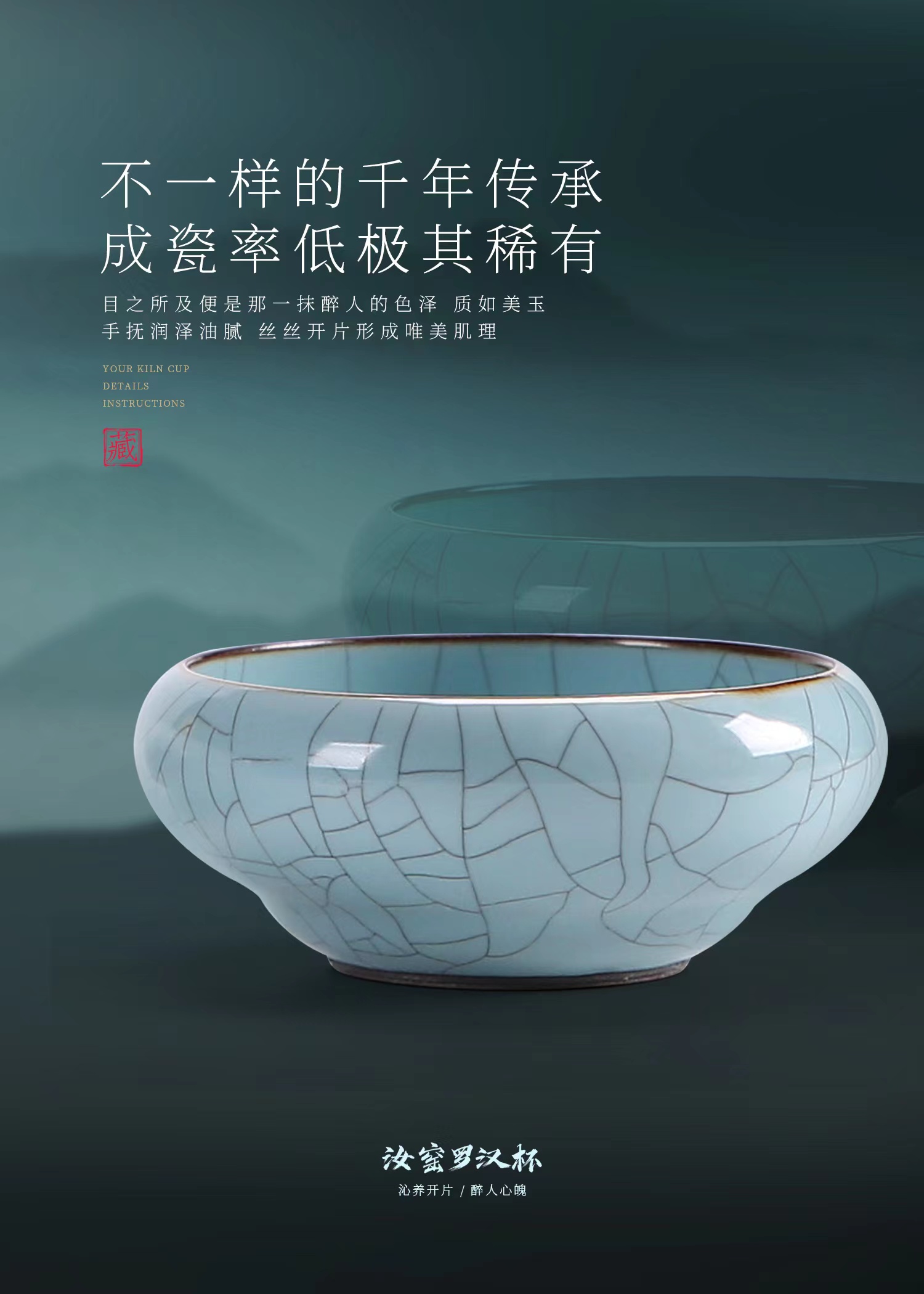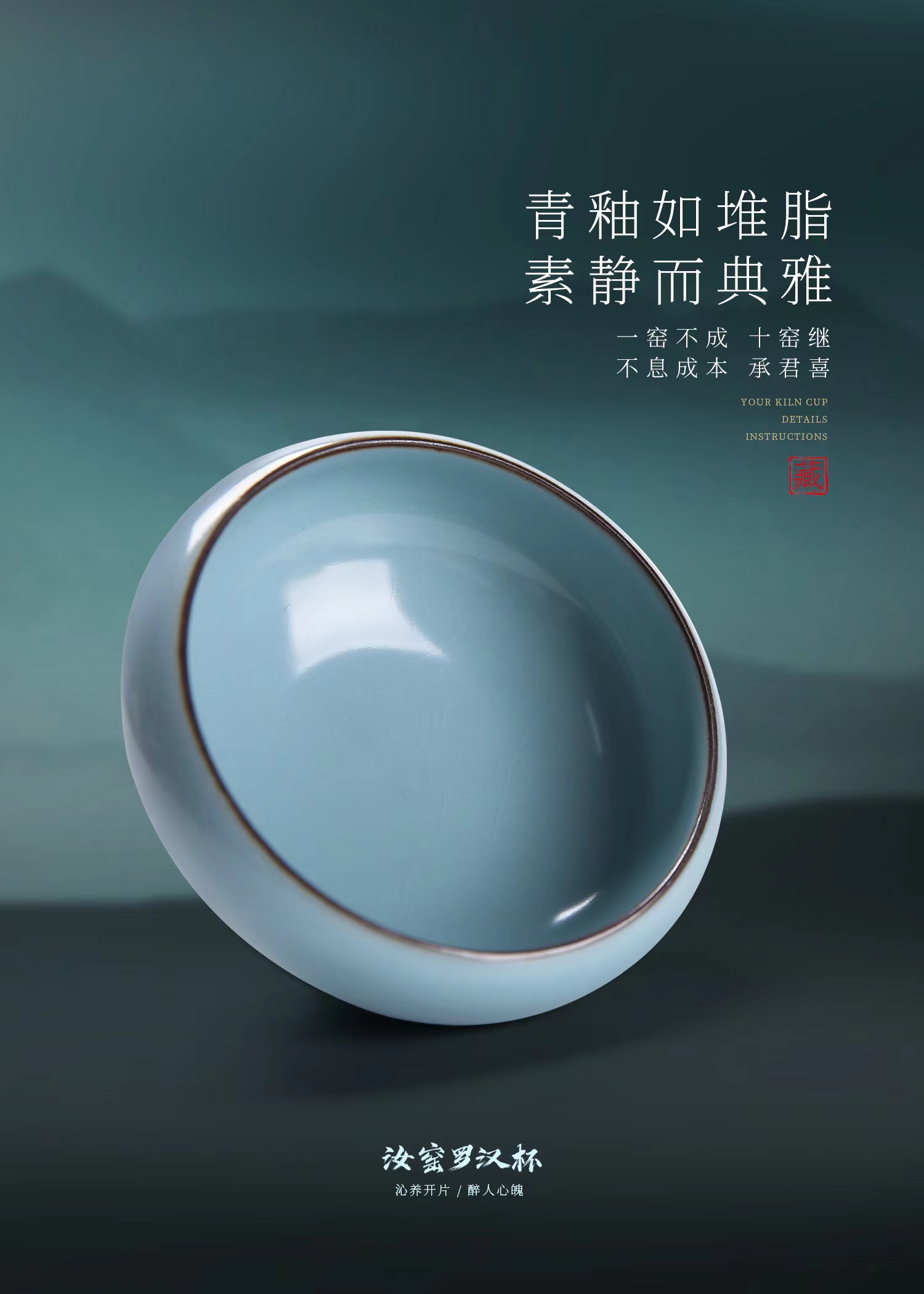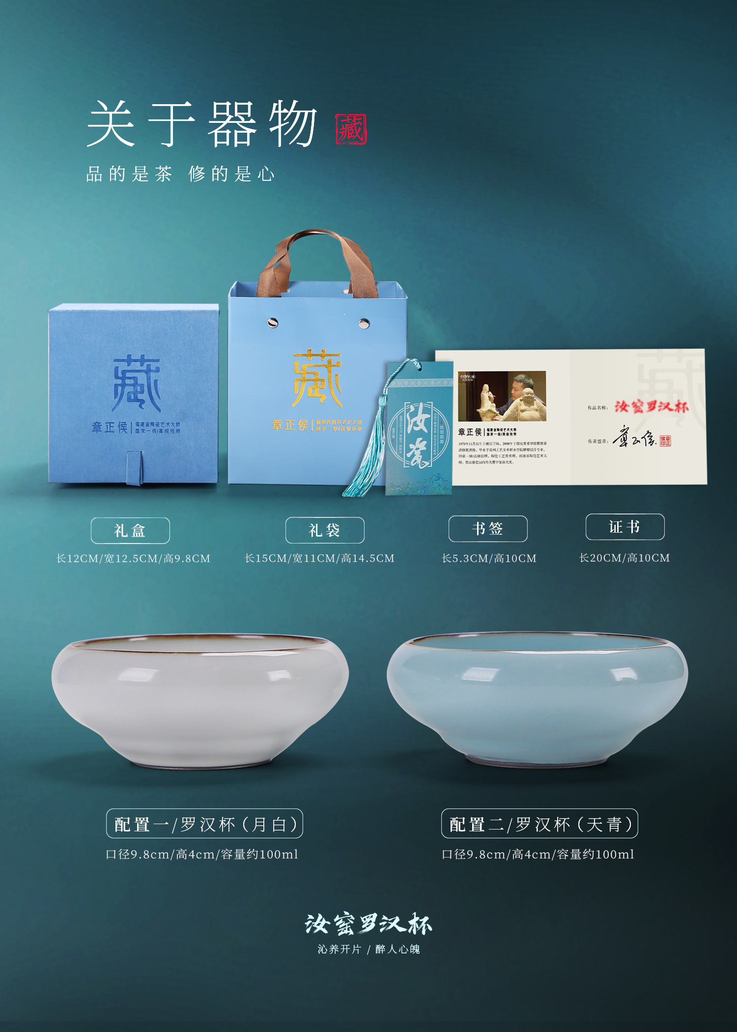 【传承手工 古法制瓷】汝窑罗汉杯 天青主人杯、月白主人杯,作者签章 品质保证,珍藏品鉴 送礼臻品