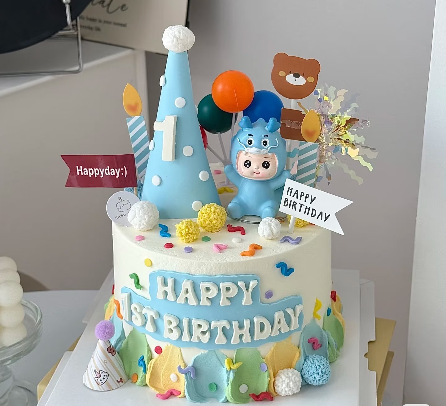 【臻品系列】---半翻糖【小蓝龙宝宝翻糖帽子款】蛋糕