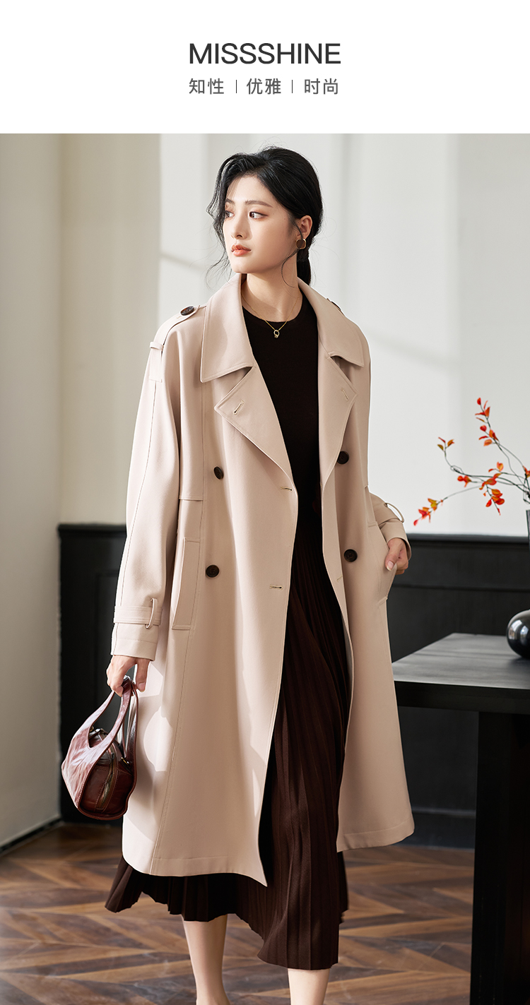 剩L/XL/2XL 米思阳2026春季新品复古时尚直筒风衣翻领外套女4031