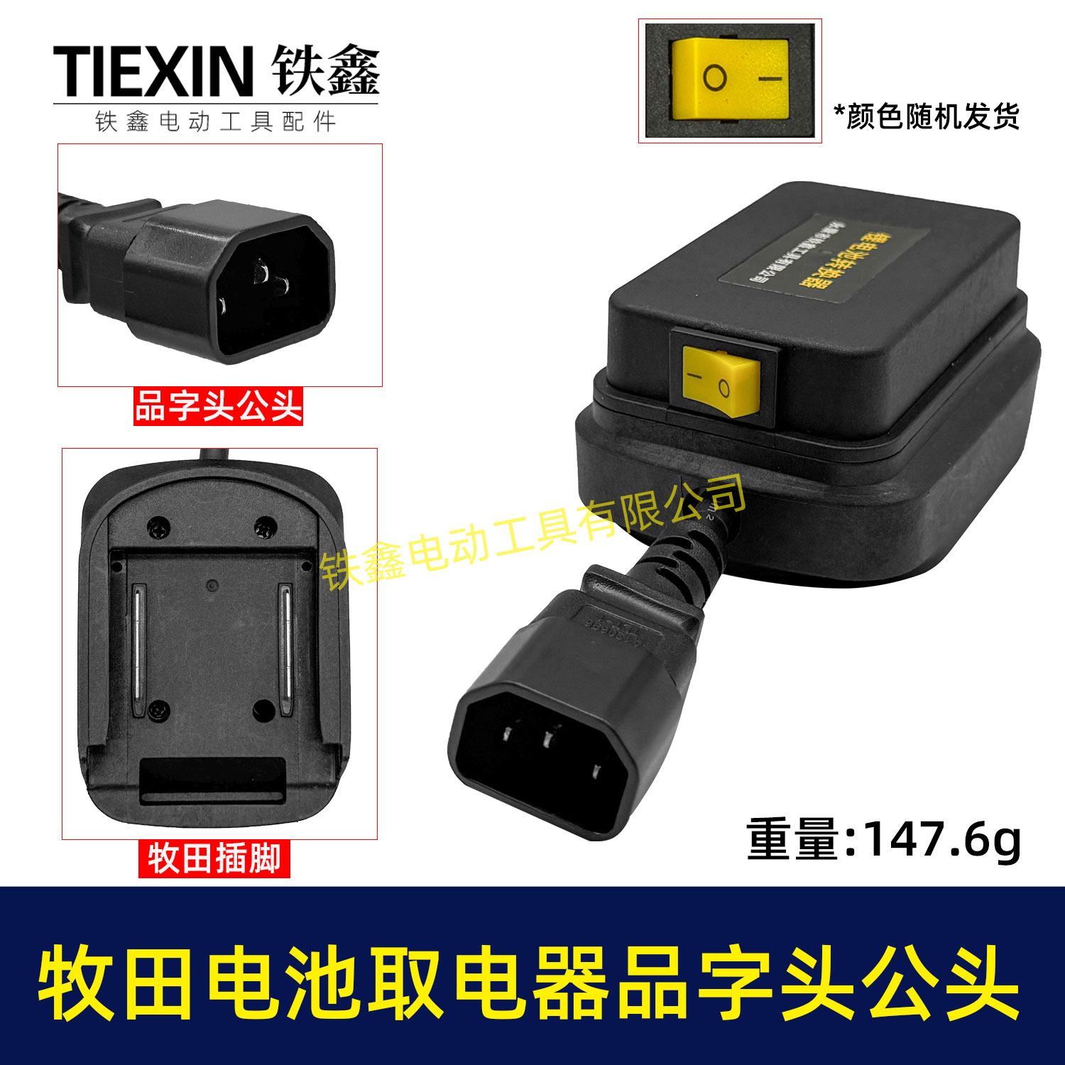 【货号08035】牧田款电池取电器品字头公头取电器转换器带开关水泵夜市LED灯转换器