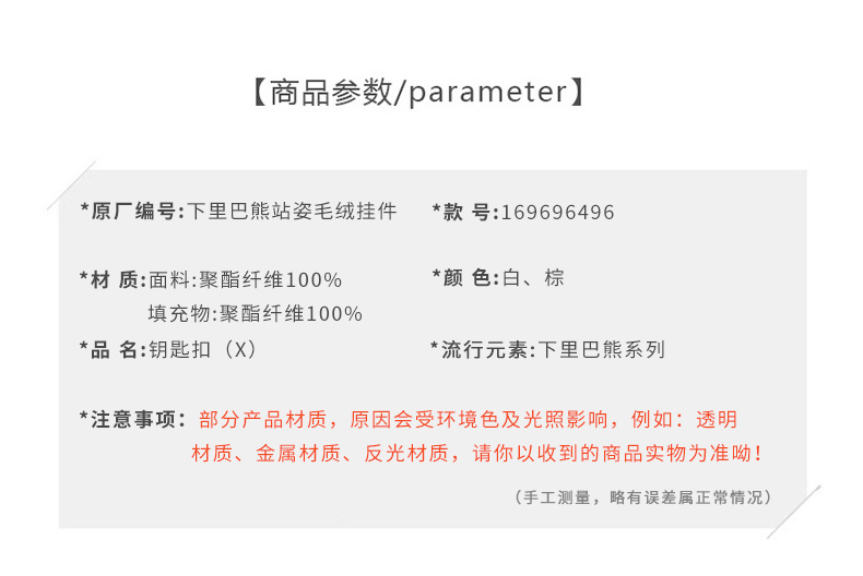 下里巴熊站姿毛绒挂件钥匙扣-纪念日百货门店同款169696496