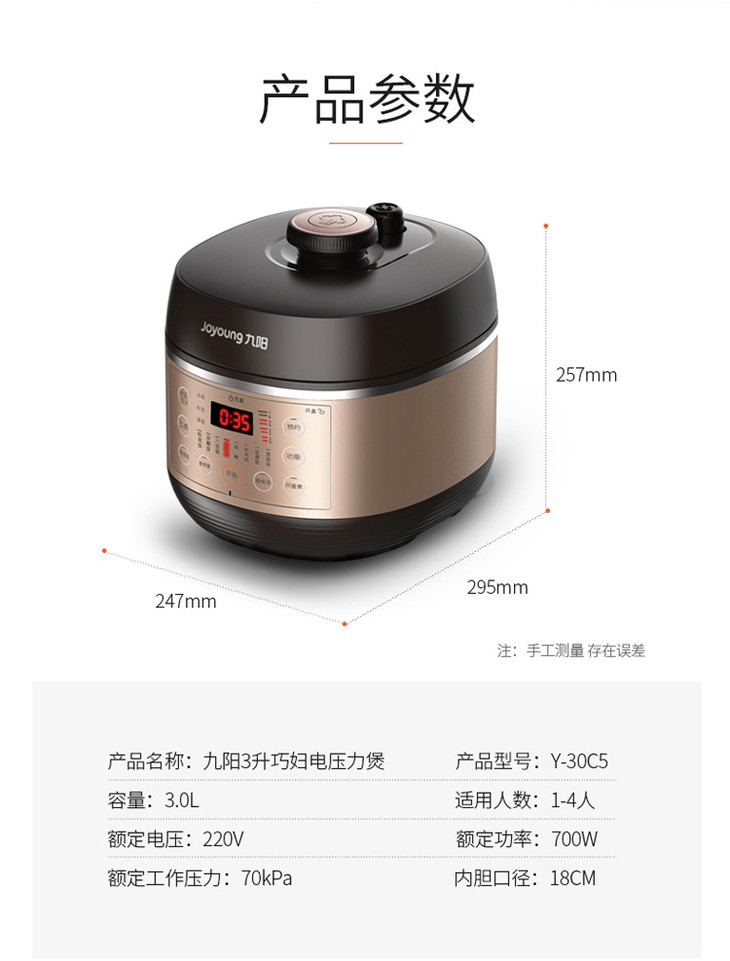 Joyoung/九阳(509221 ) 电压力锅 3L升小型家用智能电高压锅1-2-4人正品 Y-30C5