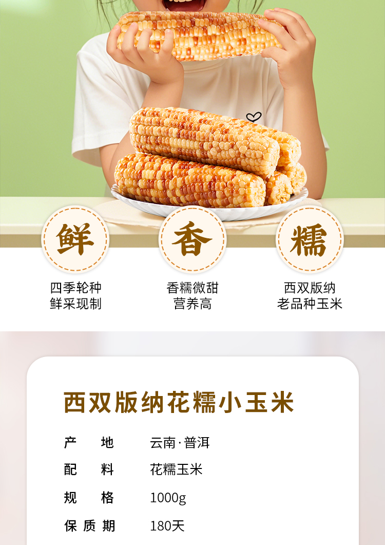 西双版纳花糯小(熟)玉米1000g单根独立 真空包装