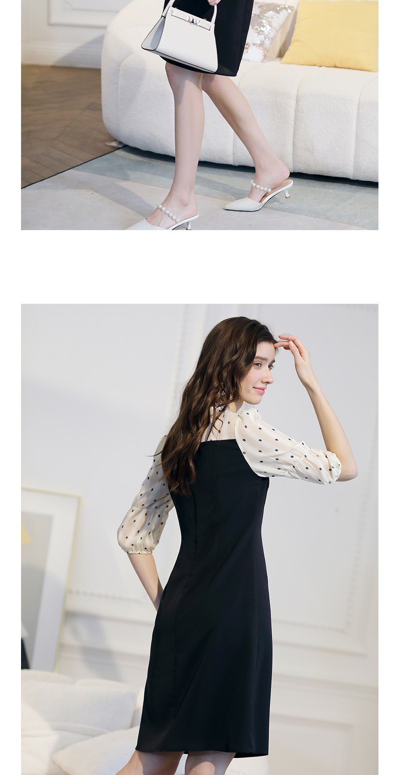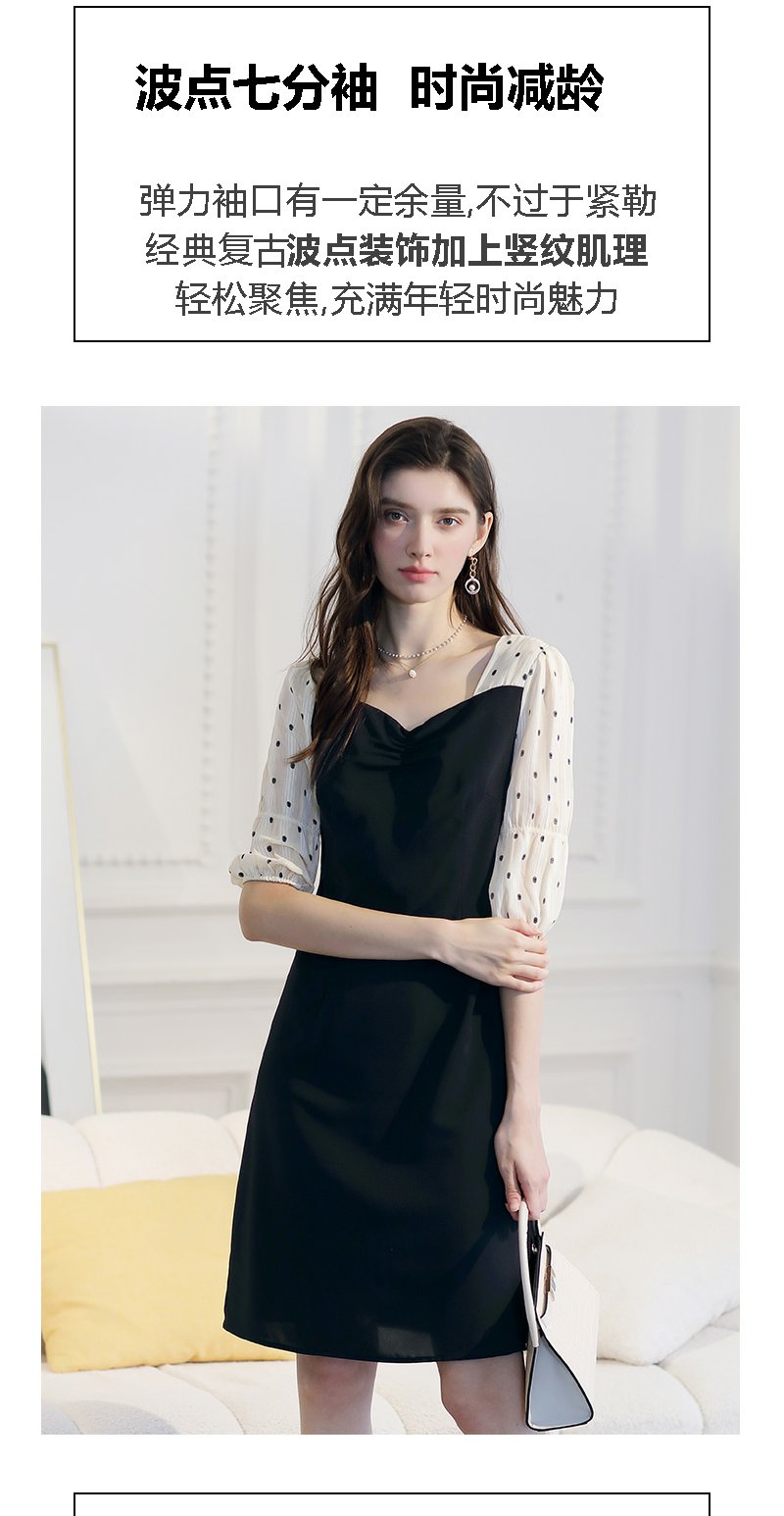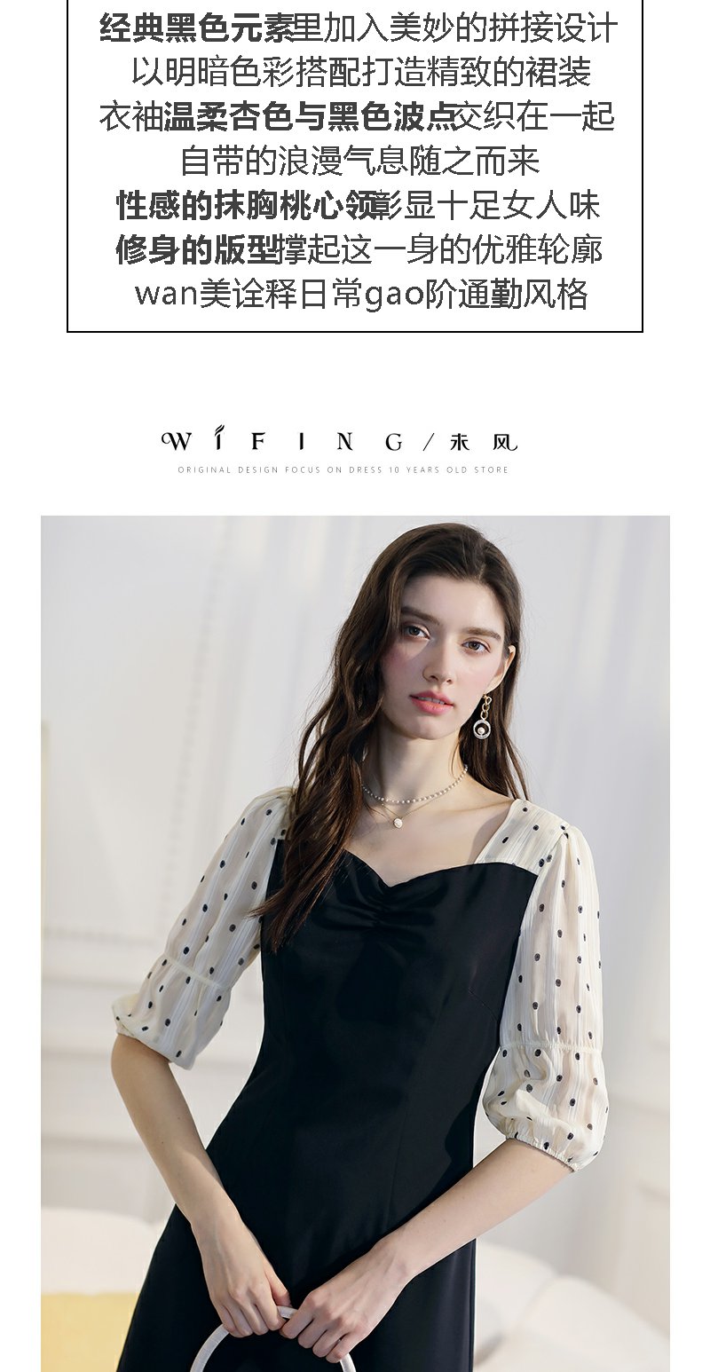 未风黑色波点连衣裙女春2024春季新款女装时尚假两件减龄显瘦裙子