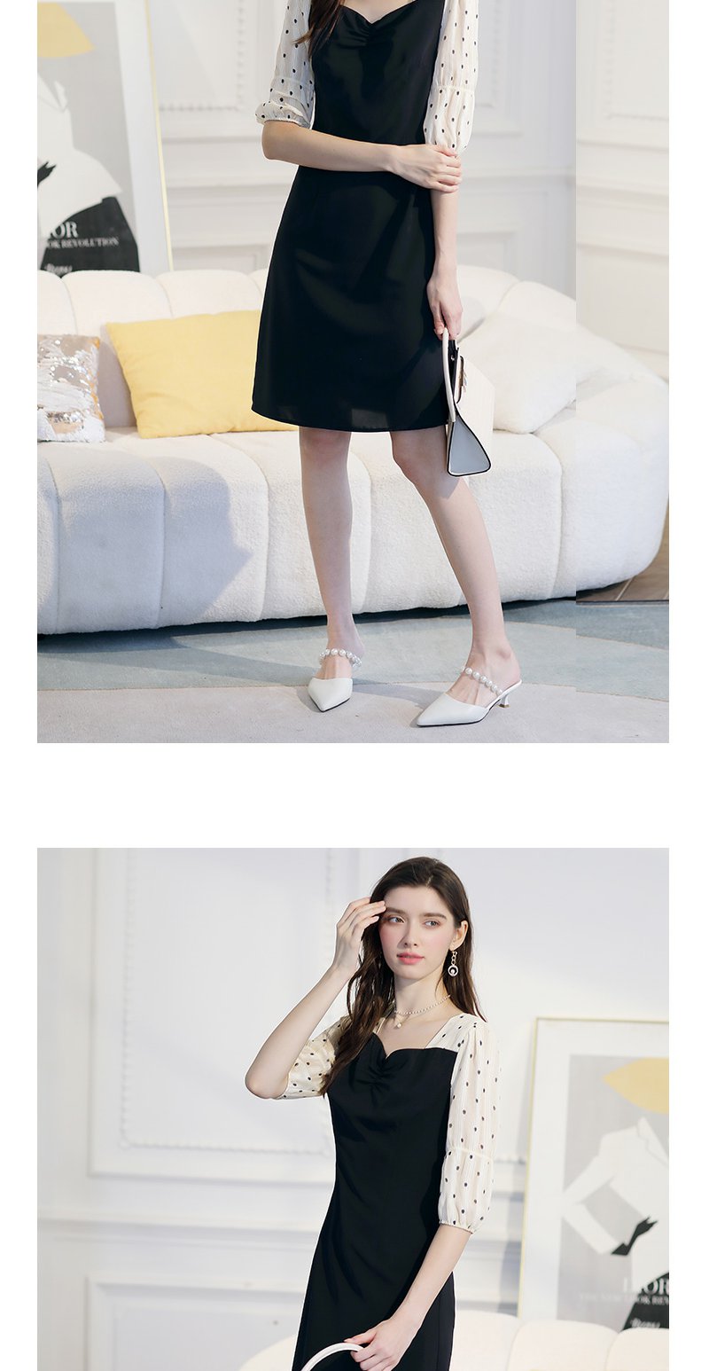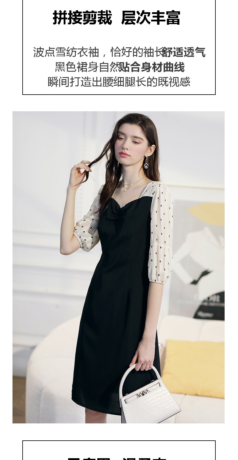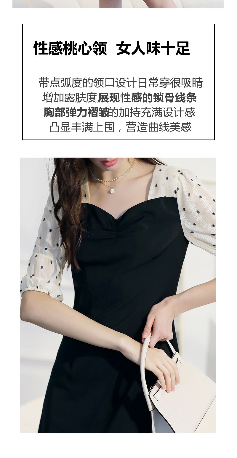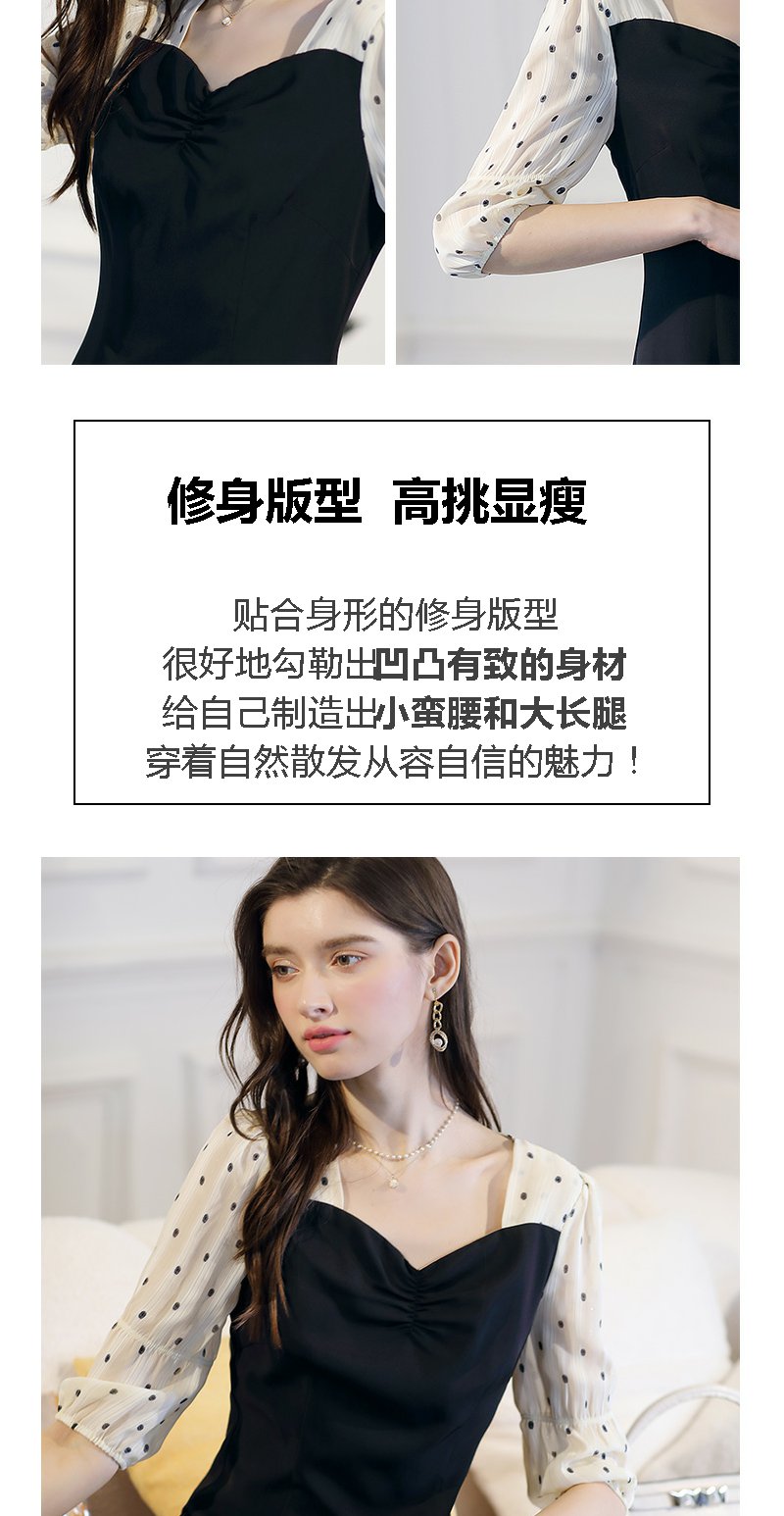 未风黑色波点连衣裙女春2024春季新款女装时尚假两件减龄显瘦裙子