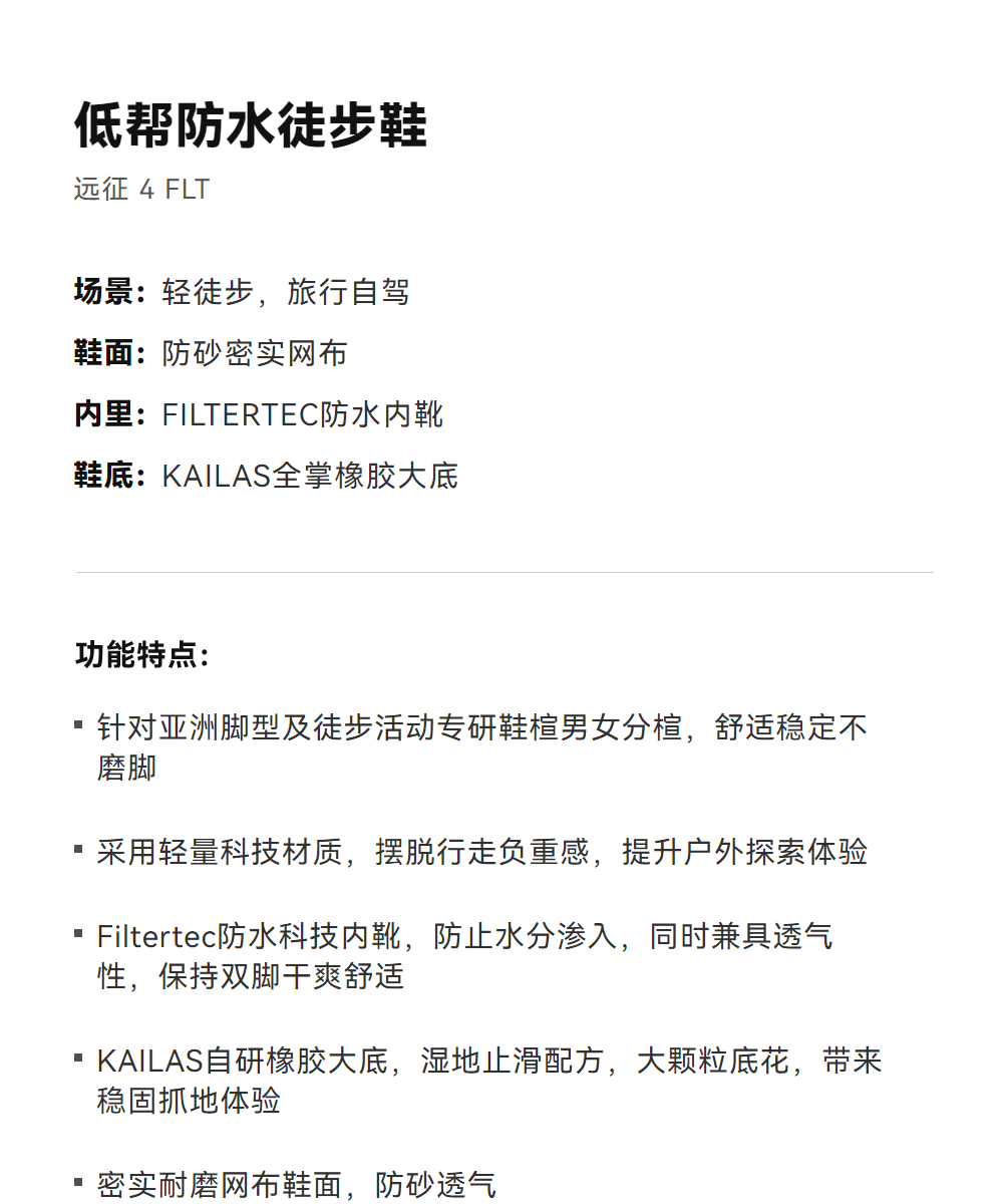 KAILAS凯乐石 女款低帮防水徒步鞋(远征-4 FLT) KS2532278