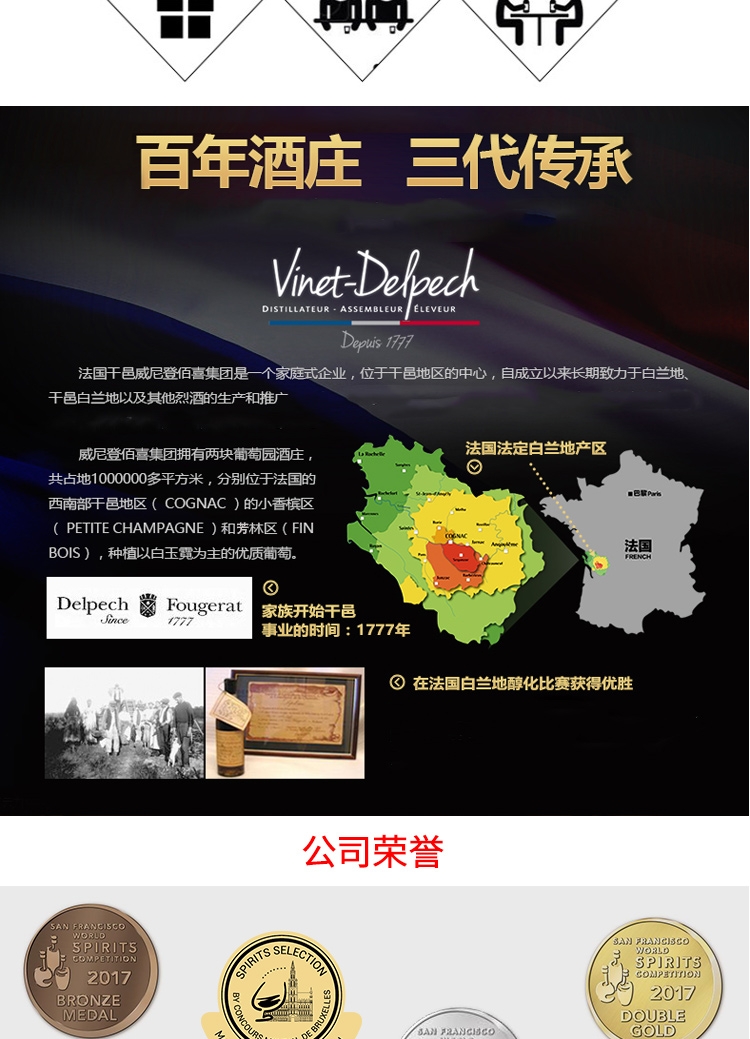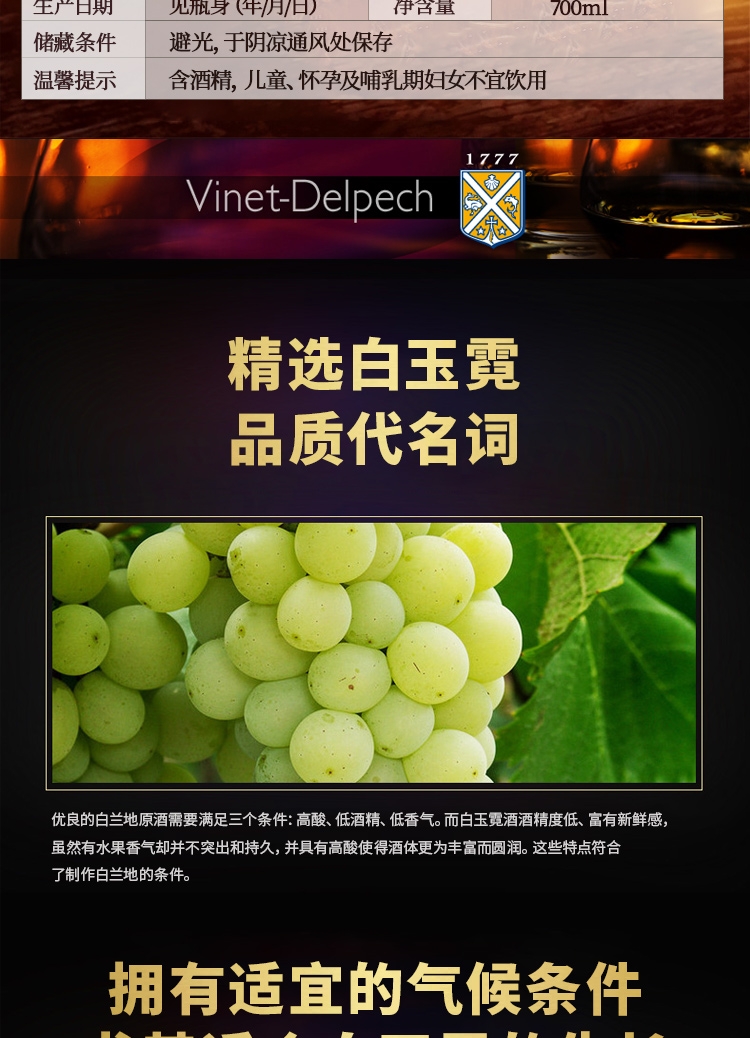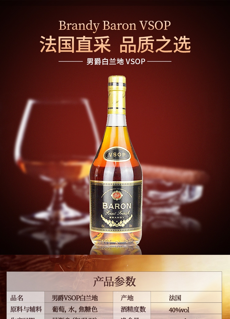 【中欧班列直供】法国 威尼登佰喜 男爵VSOP白兰地 700ml/瓶 原装进口