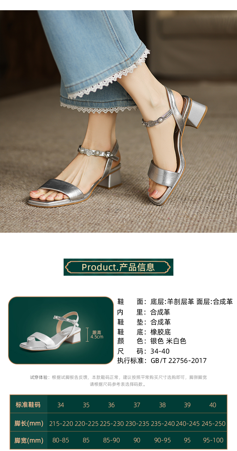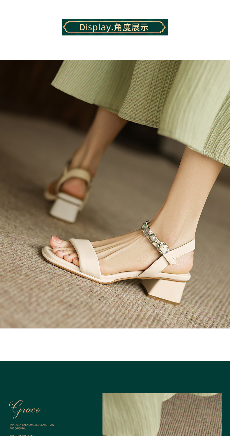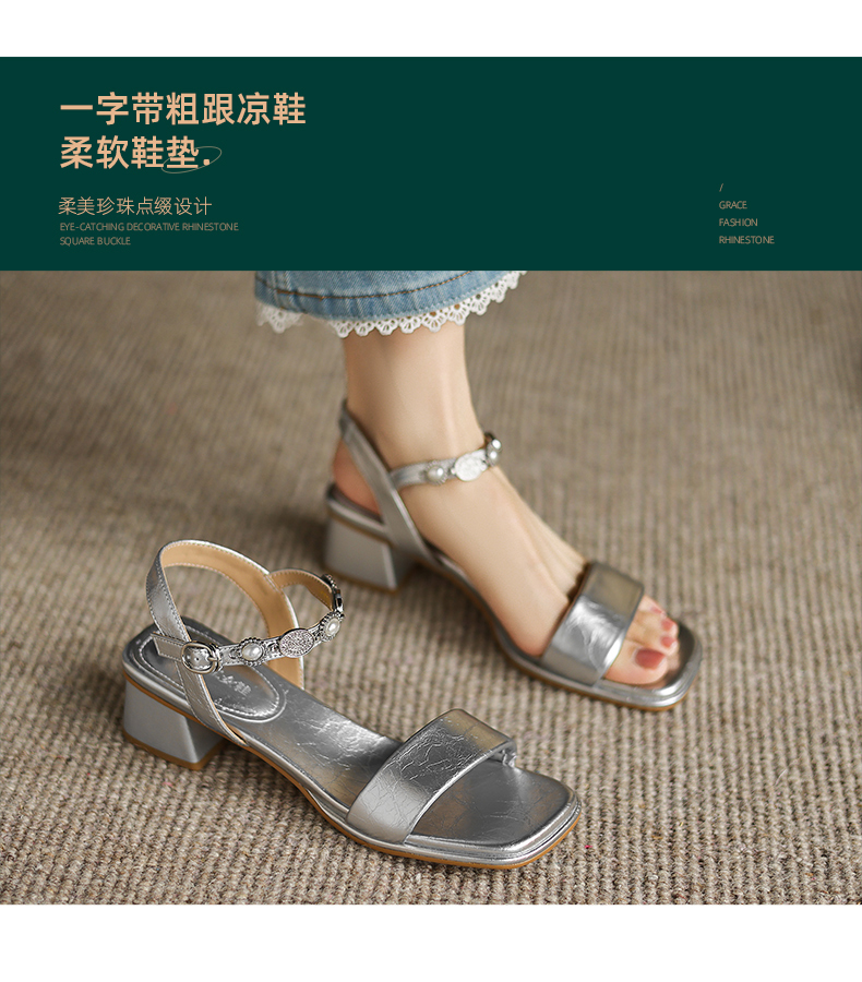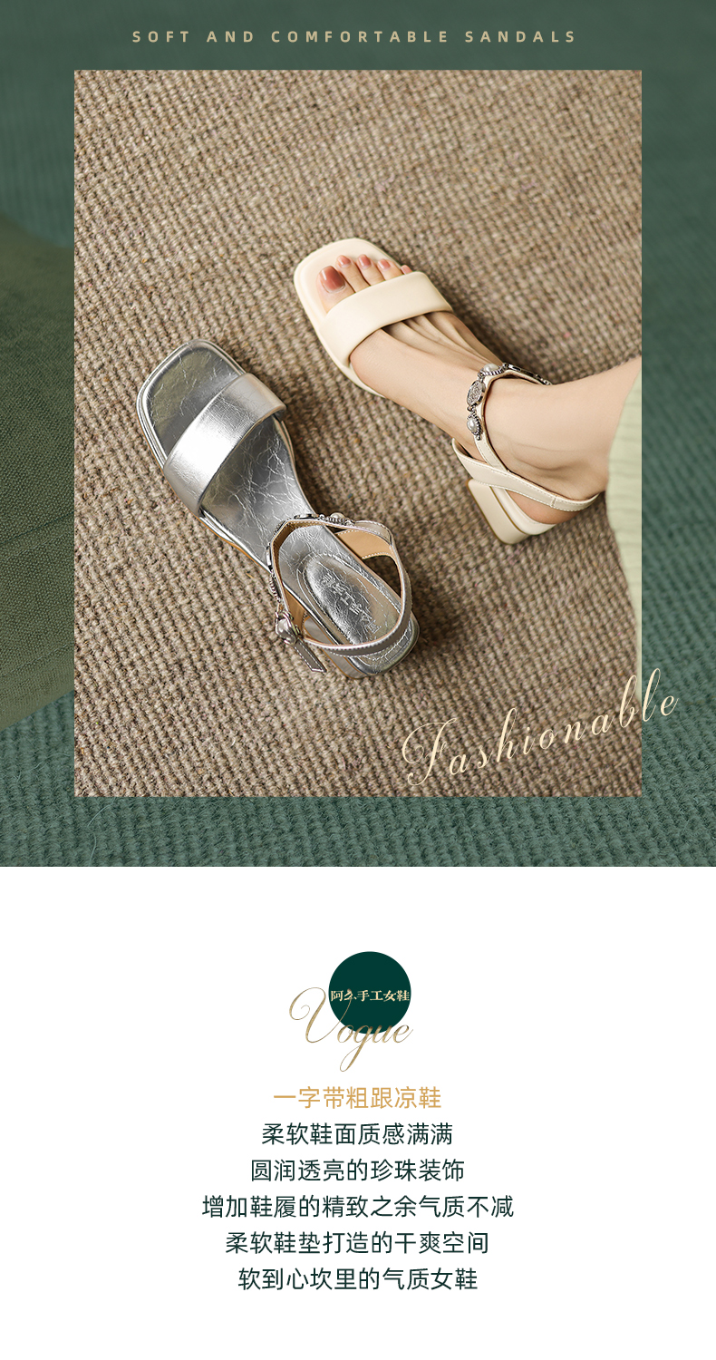 阿么手工女鞋珍珠公主风气质一字带凉鞋软底不累脚夏季外穿4.5CM