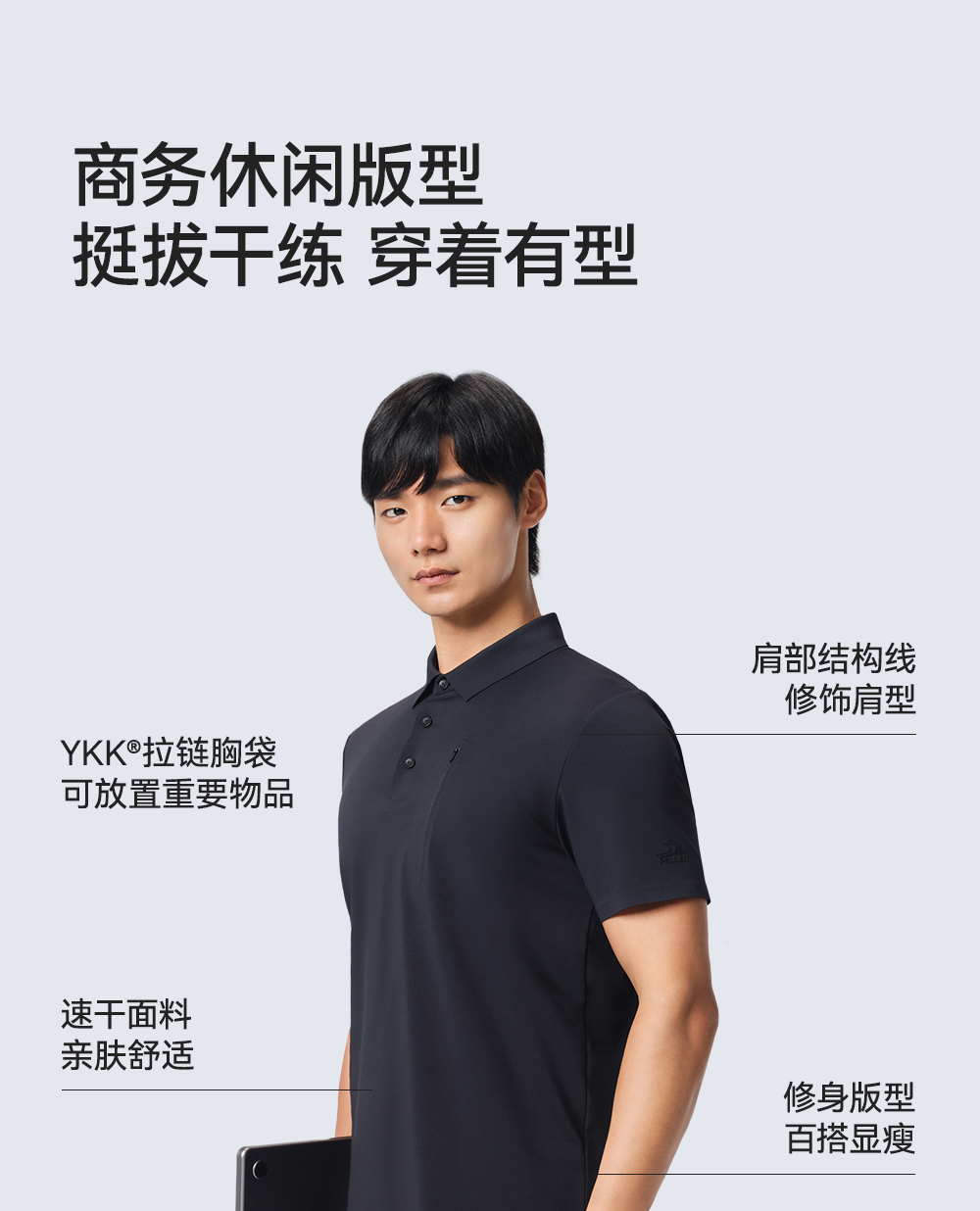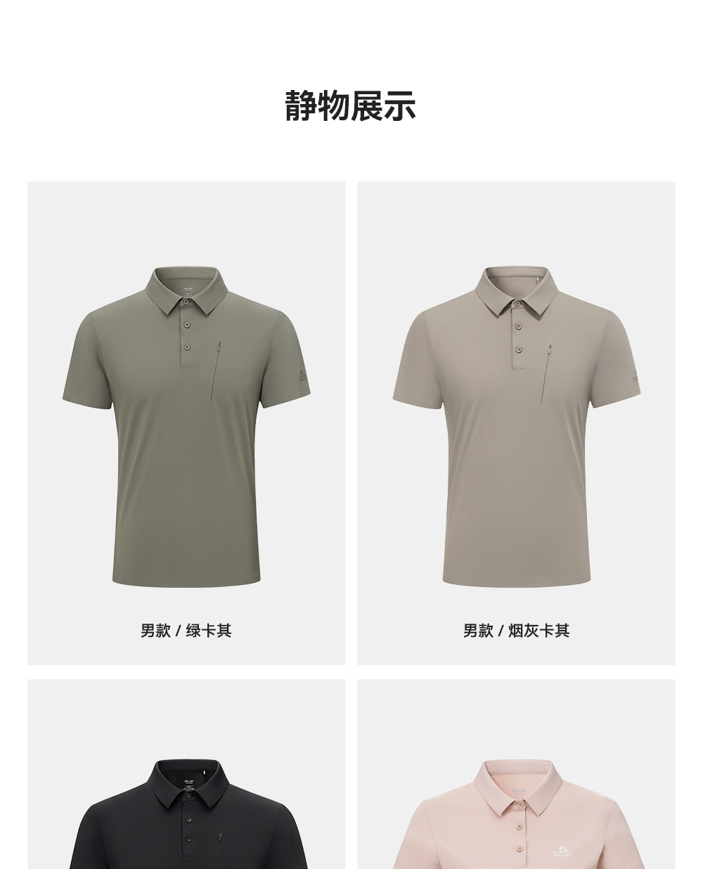 伯希和户外T恤男新款速干抗菌保罗衫高弹运动短袖翻领休闲半袖女