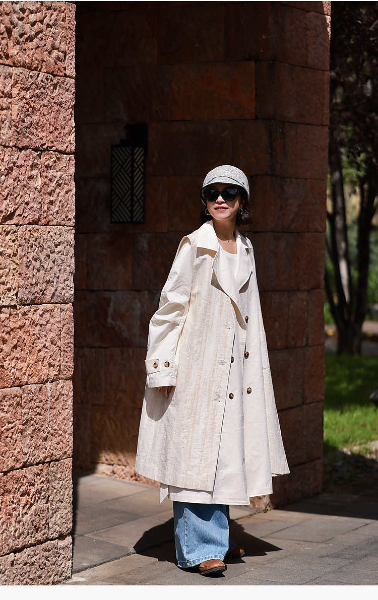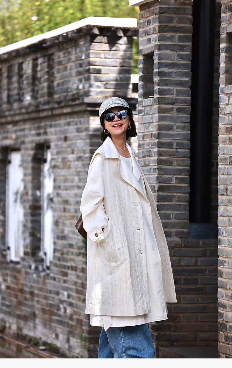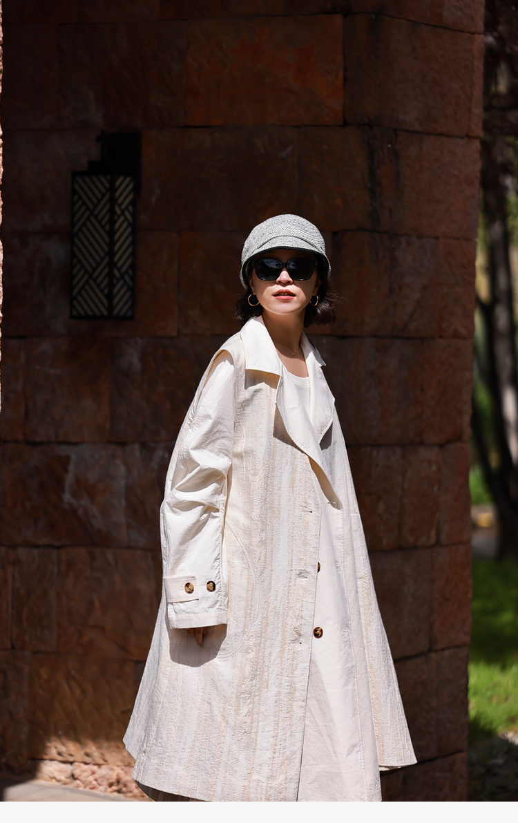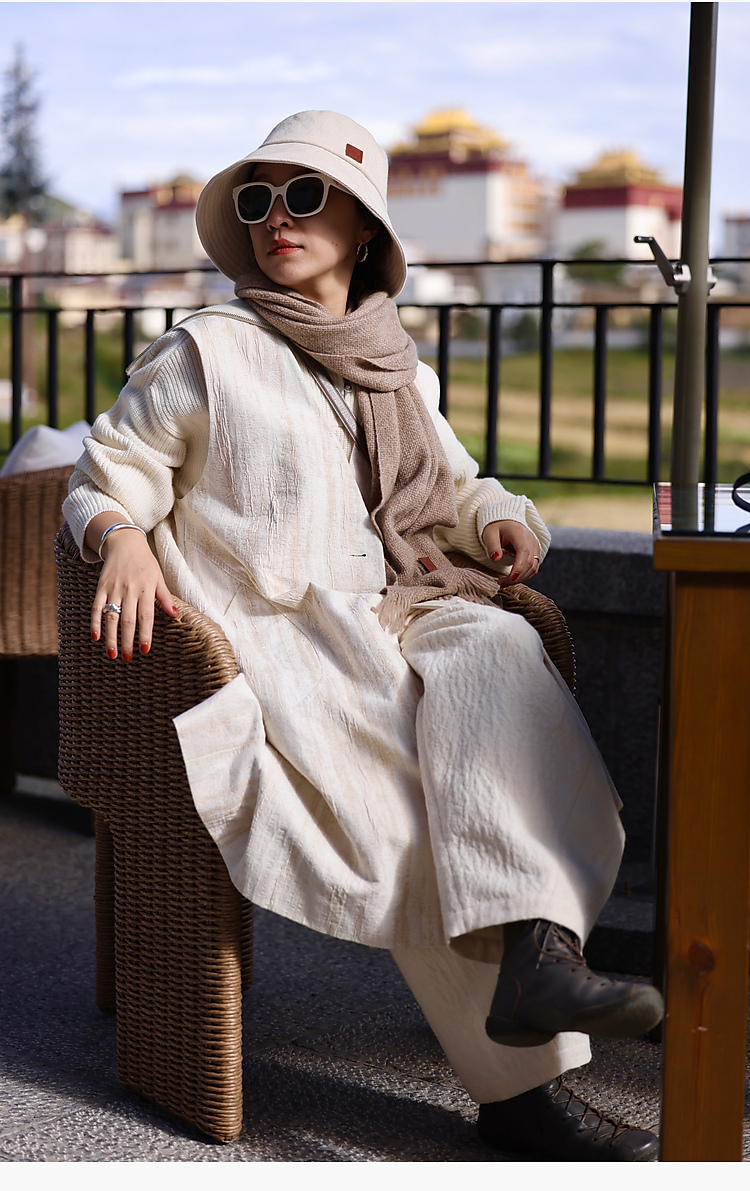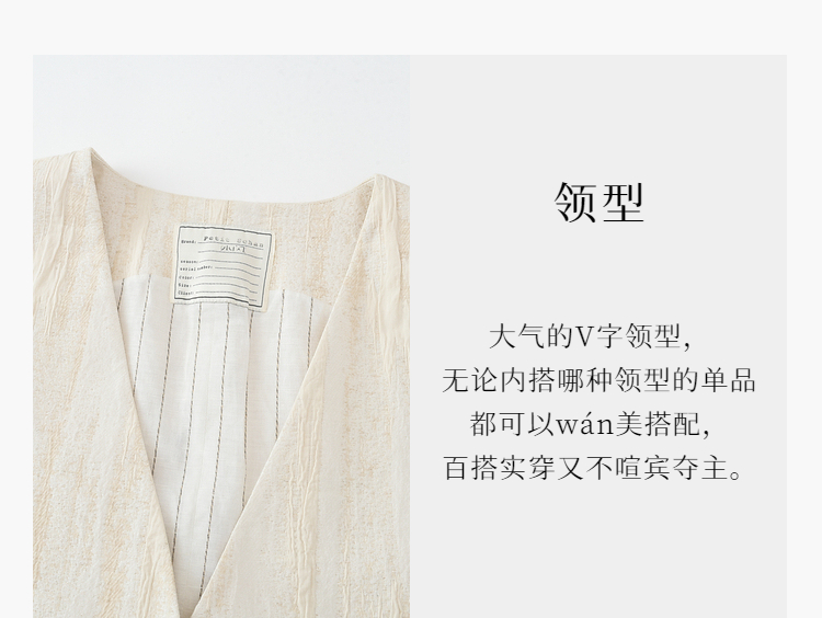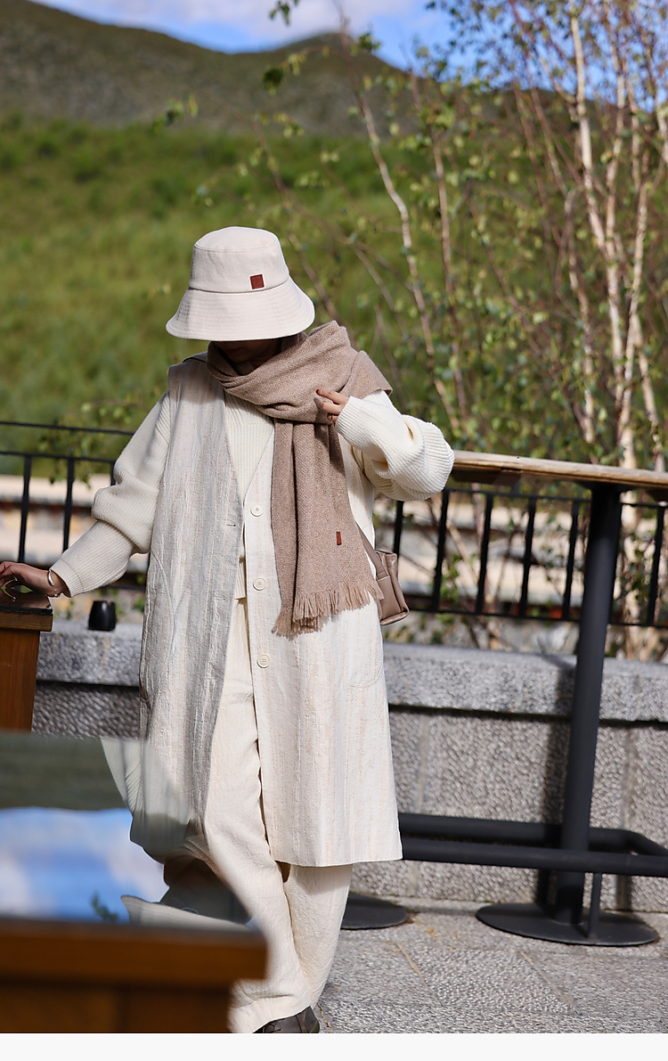 寂静的河流 棉麻混纺提花肌理感H版廓形长马甲