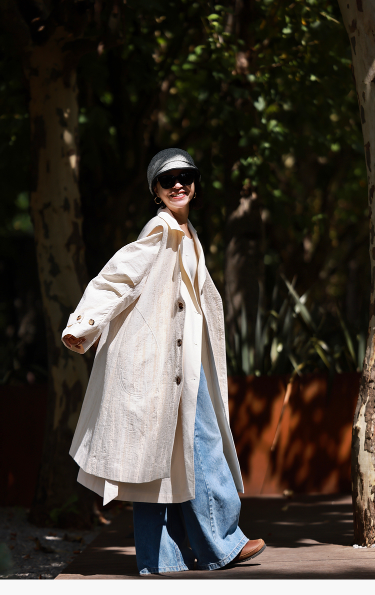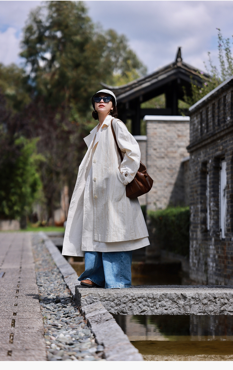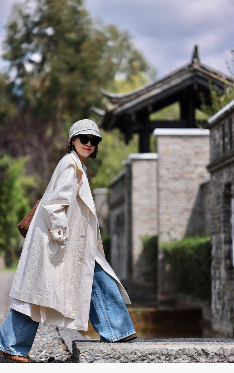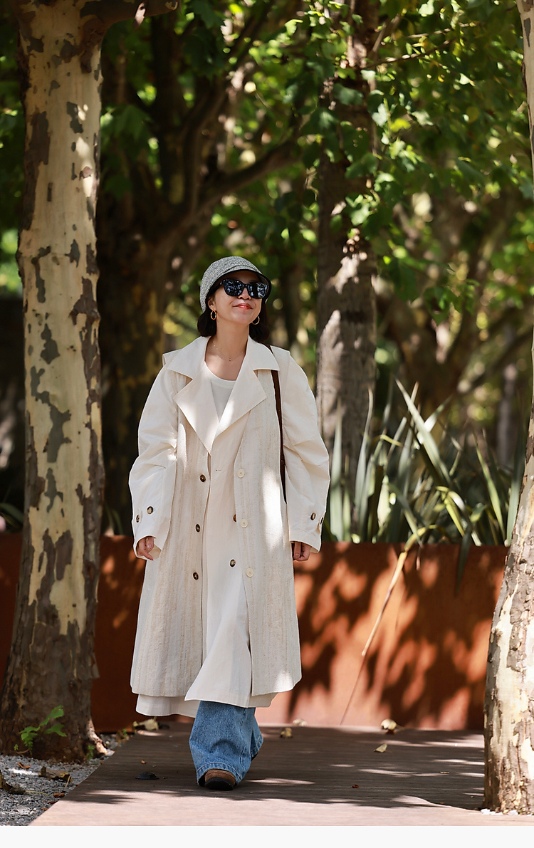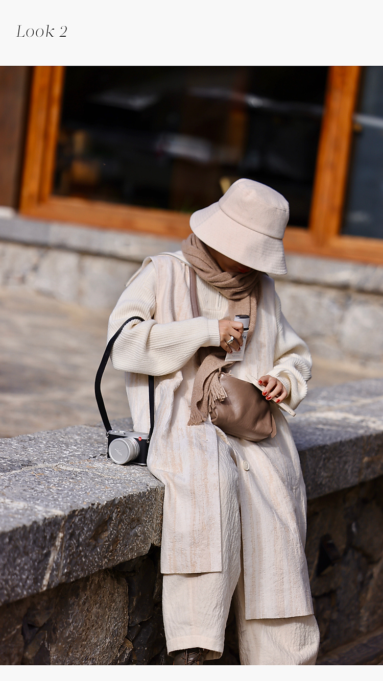 寂静的河流 棉麻混纺提花肌理感H版廓形长马甲