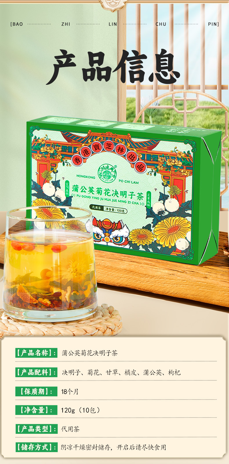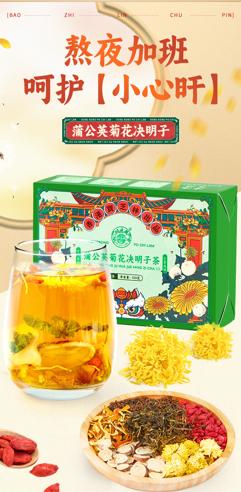 【香港宝芝林❗️蒲公英菊花决明子茶】甄选品质原料制作,甘草/菊花/枸杞/陈皮/决明子,头等好料成就好茶,整料搭配枸杞组合花茶,中老年健康养生代用茶L