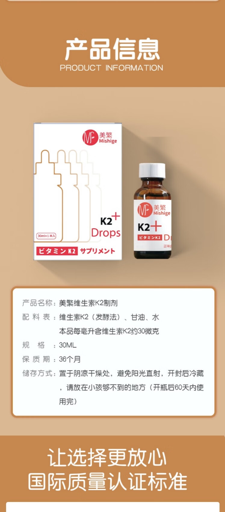 美繁Mishige维生素K2制剂液体滴剂30ml(不含防腐剂)
