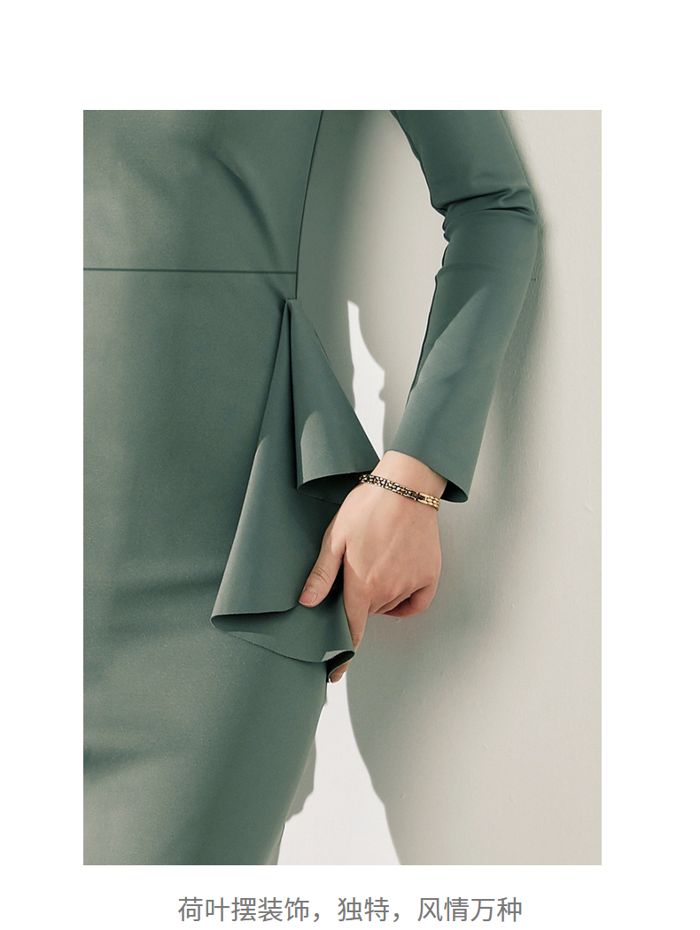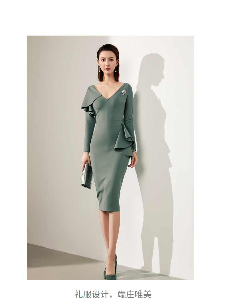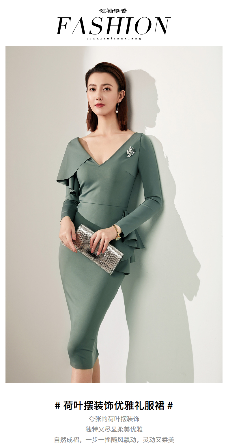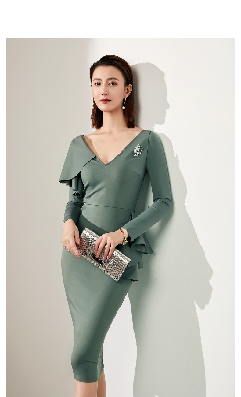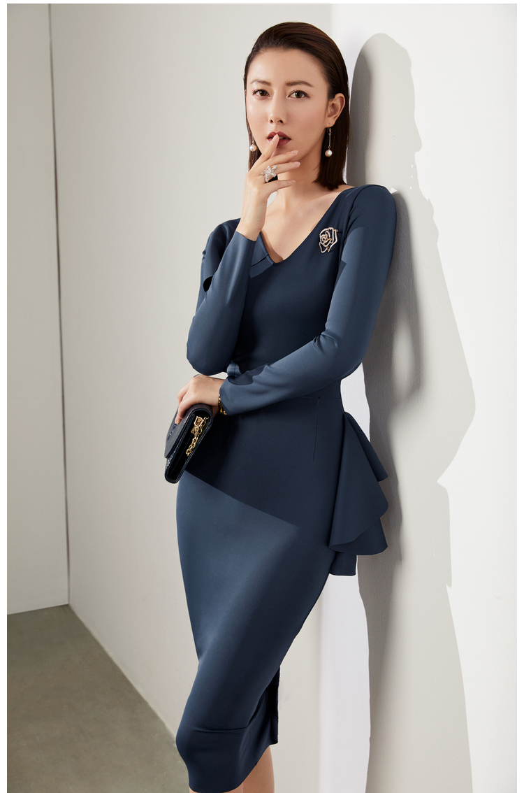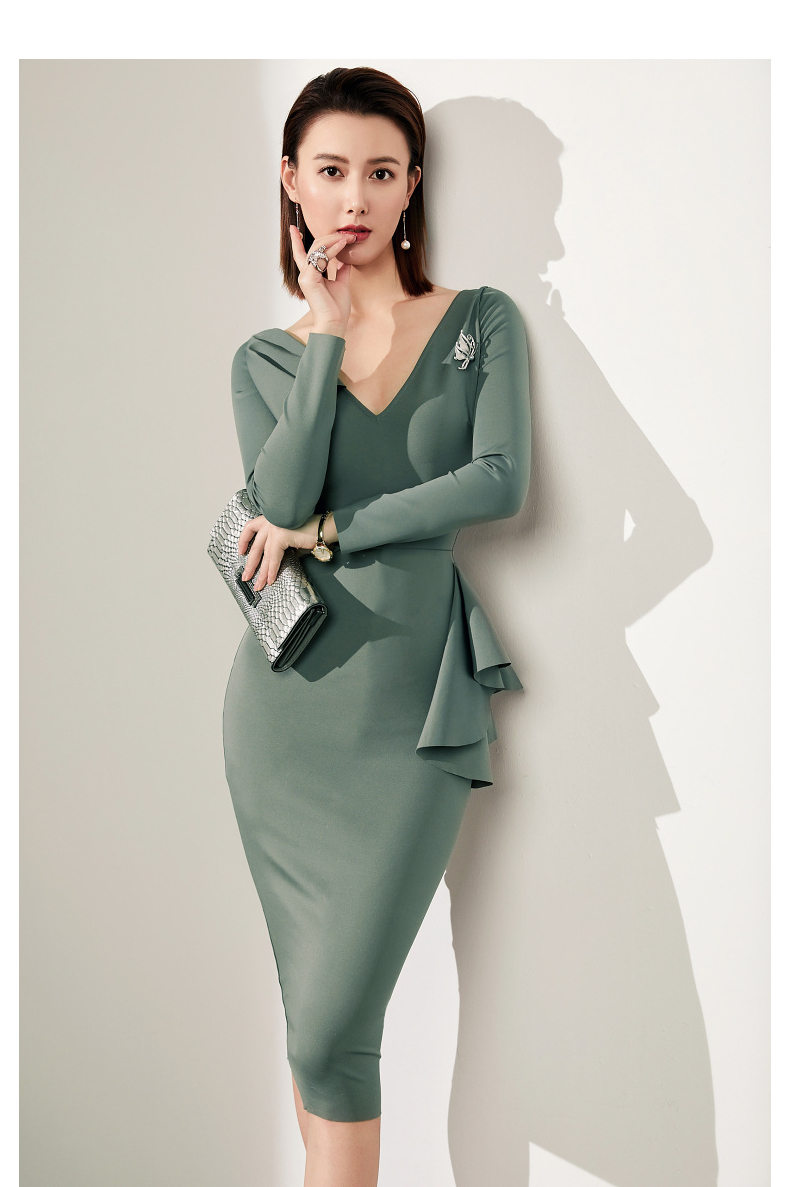 J20184208A 颈袖添香高端气质职场工作装包臀裙收腰显瘦正装连衣裙 立体显瘦 围裹V领