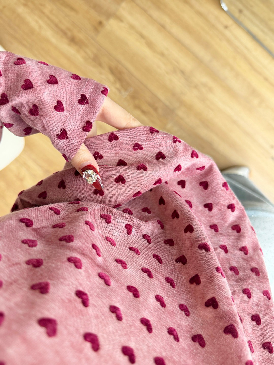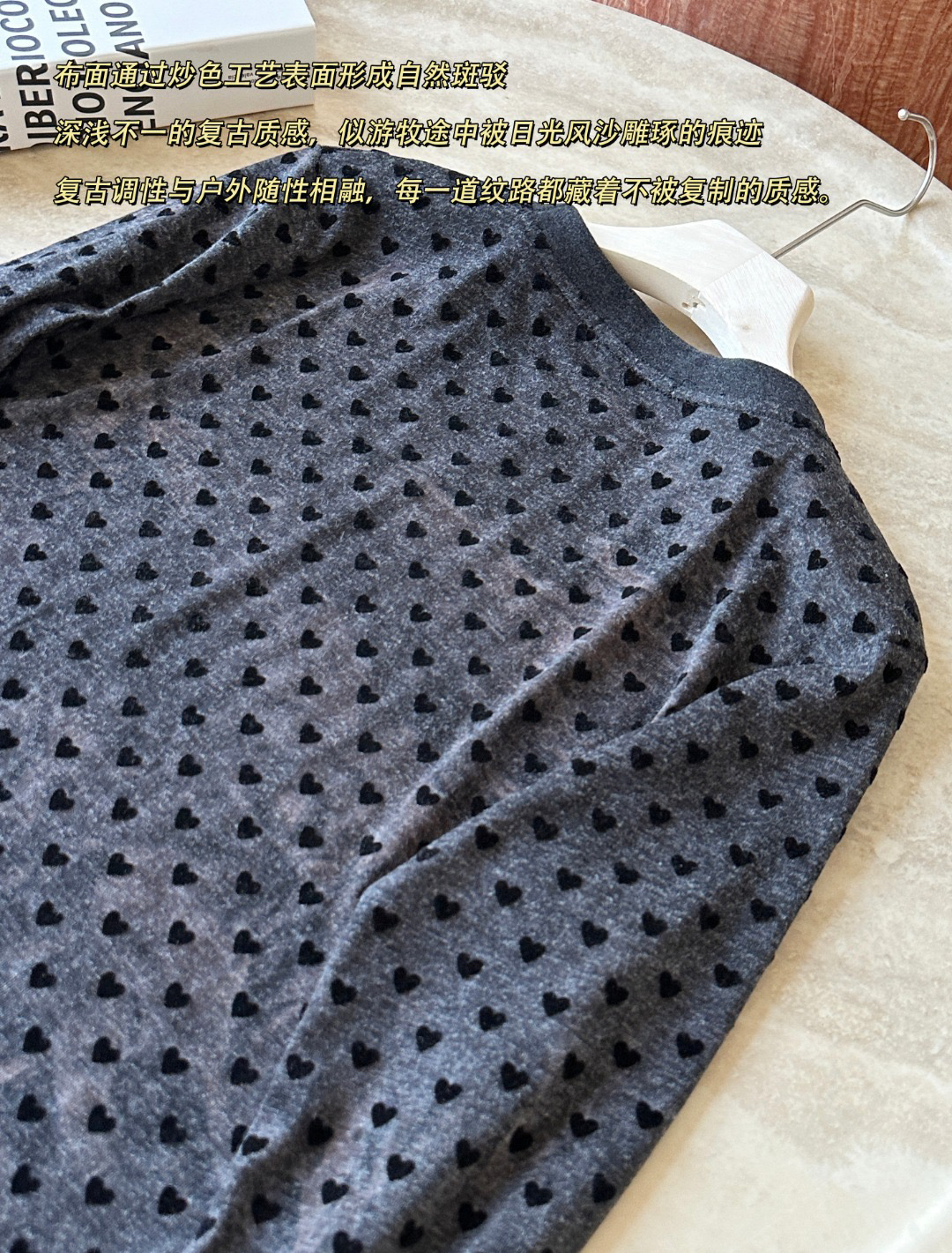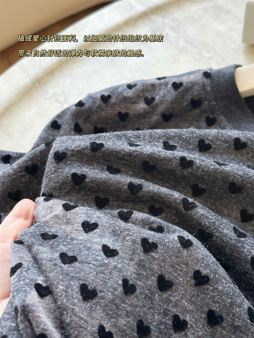立体植绒爱心图案 微修身版型显瘦不紧绷