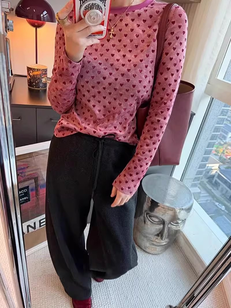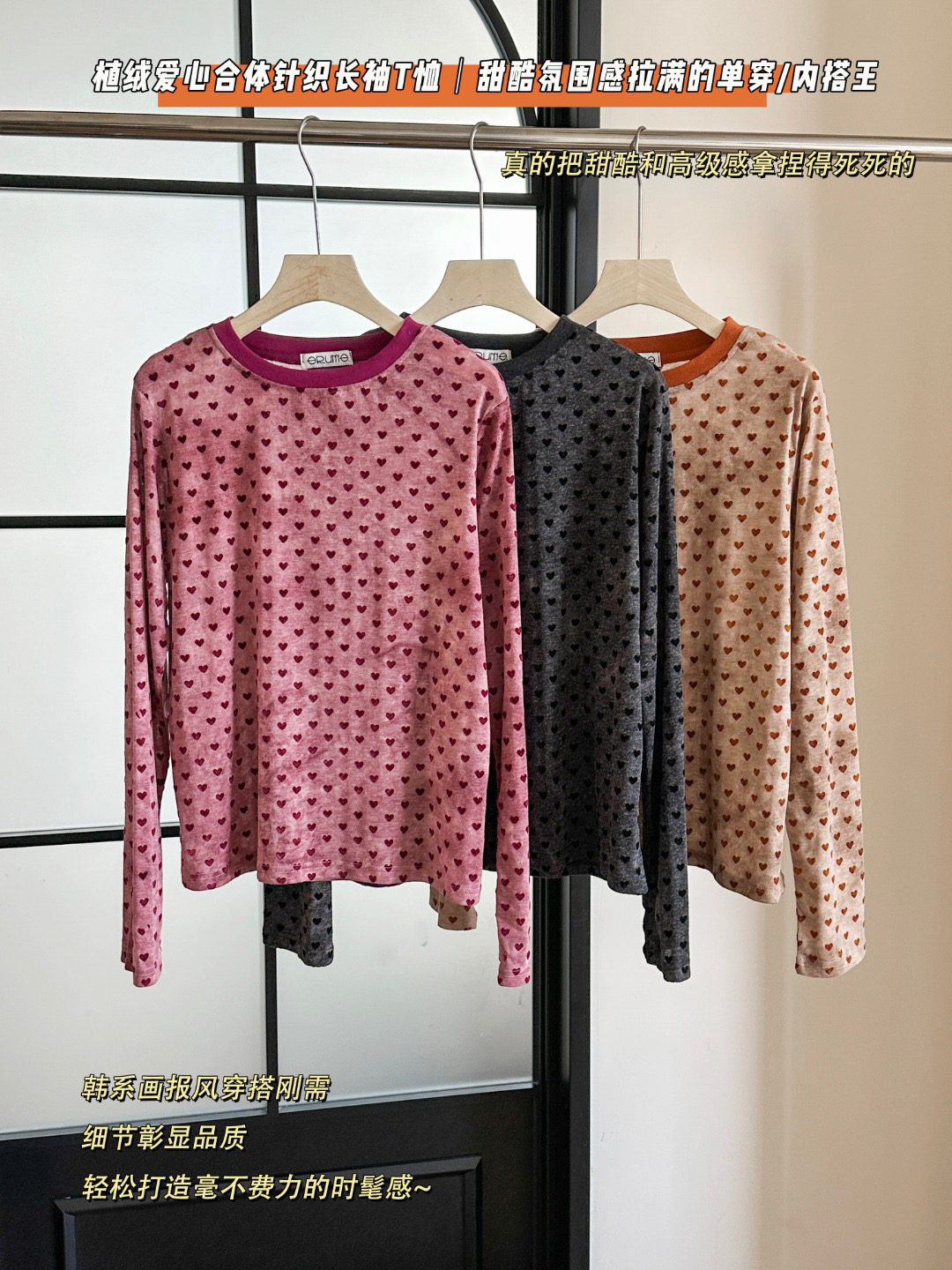 植绒爱心合体针织长袖T恤|甜酷氛围感拉满的单穿/内搭王