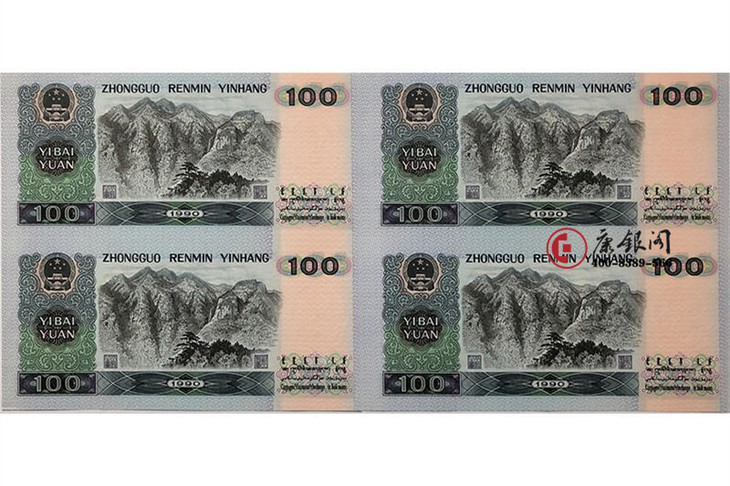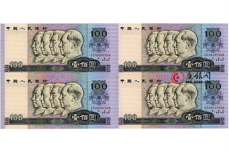 【藏品名称】1990版100元四连体
