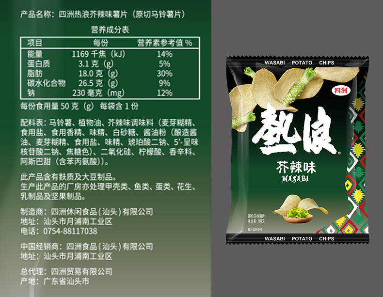 四洲热浪薯片50克*2(芥辣味)