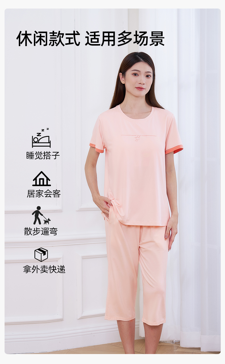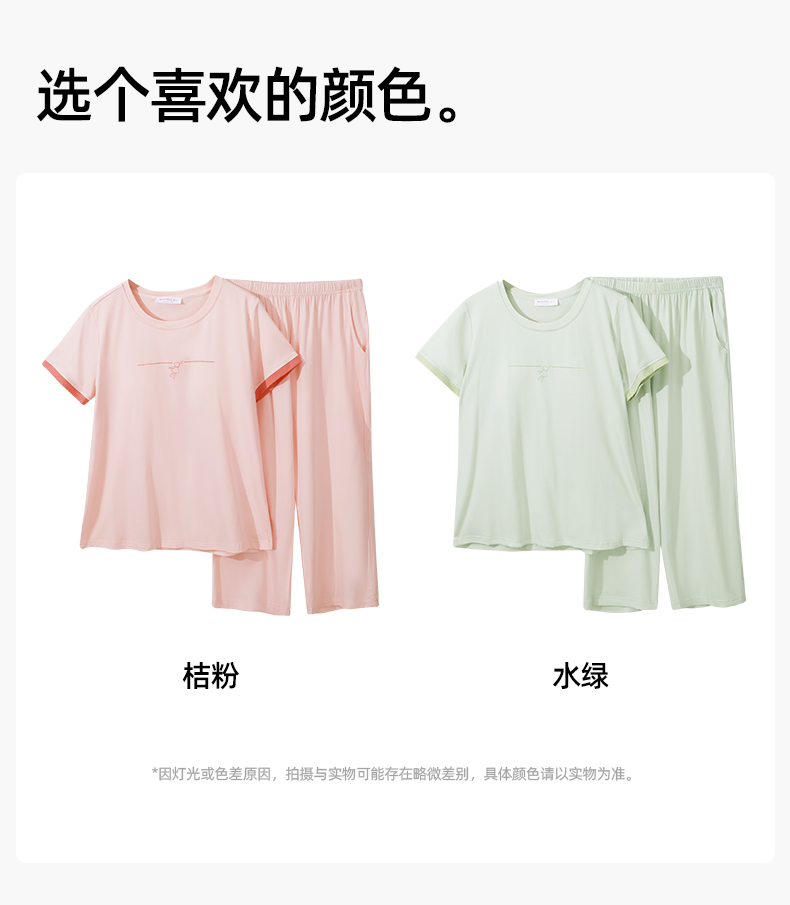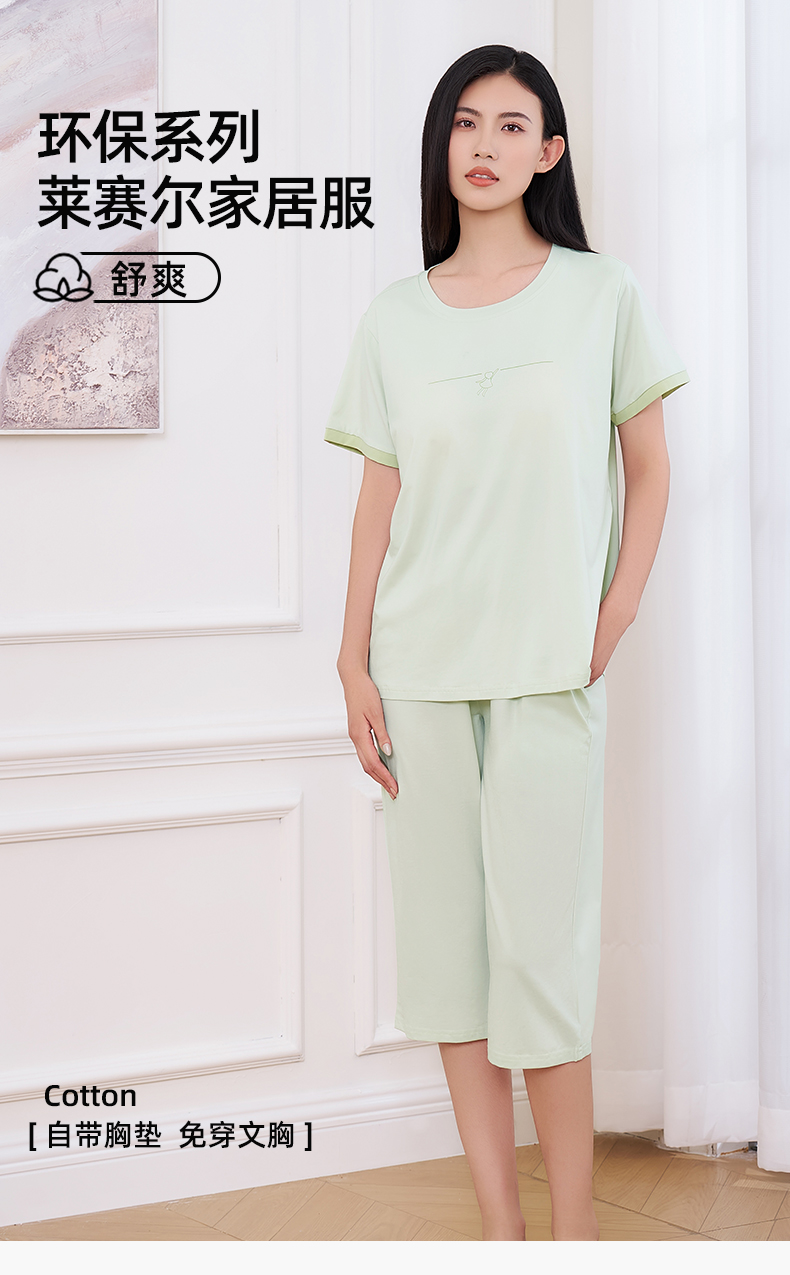 【商场同款】熳洁儿 带杯垫家居服短袖七分裤免穿文胸莱赛尔25203221