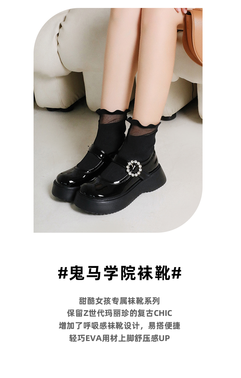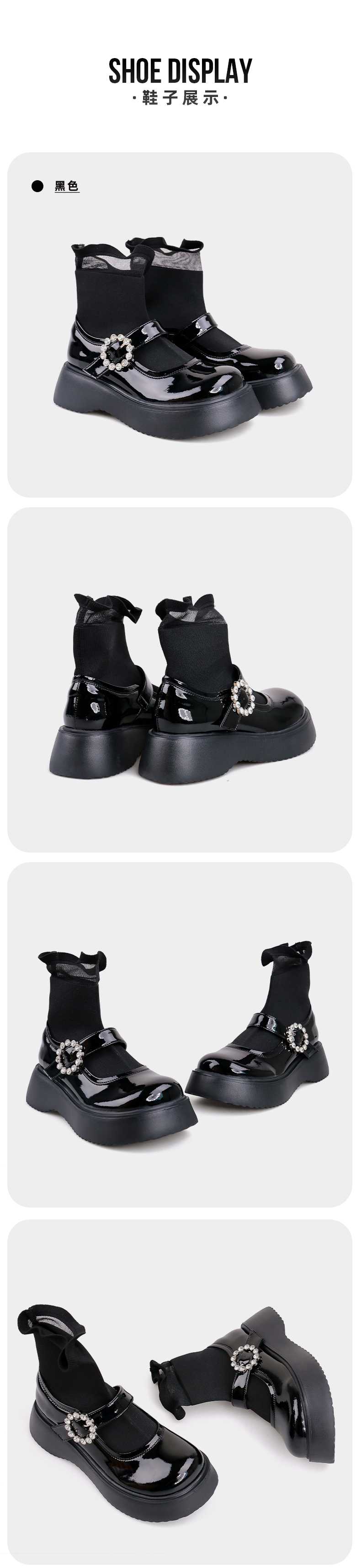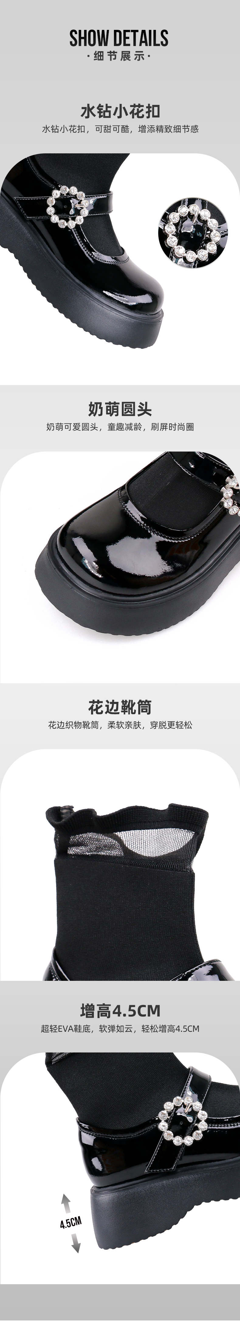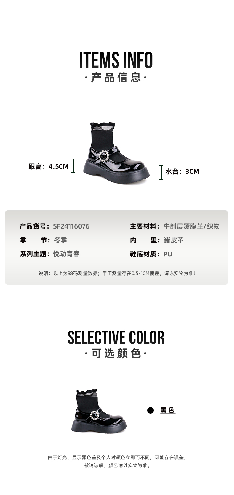 【双旦福利】Safiya/索菲娅 JK玛丽珍女鞋2022年冬季新款甜酷减龄厚软底袜靴女 SF24116076