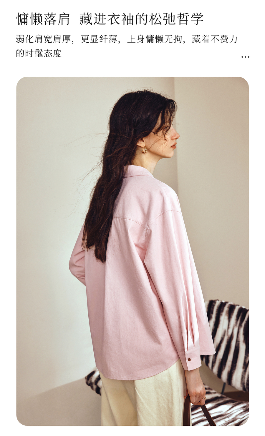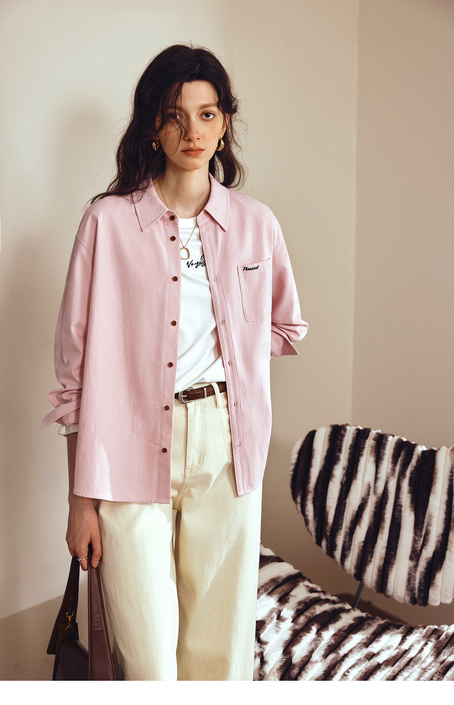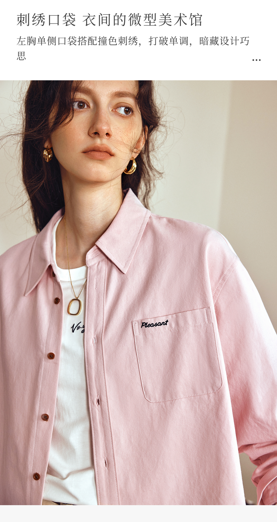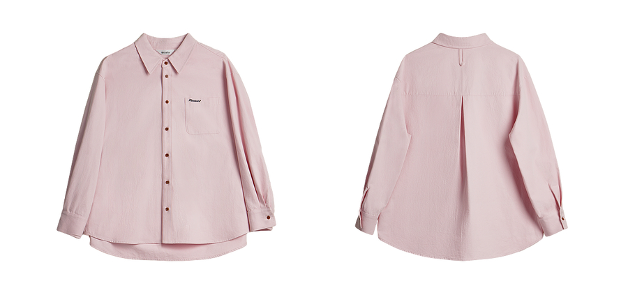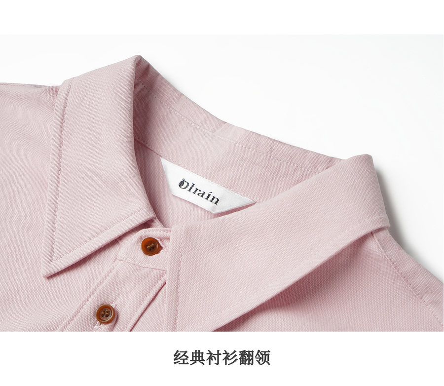 OLrain欧芮儿2025新款女秋季粉色翻领刺绣慵懒松弛通勤长袖衬衫