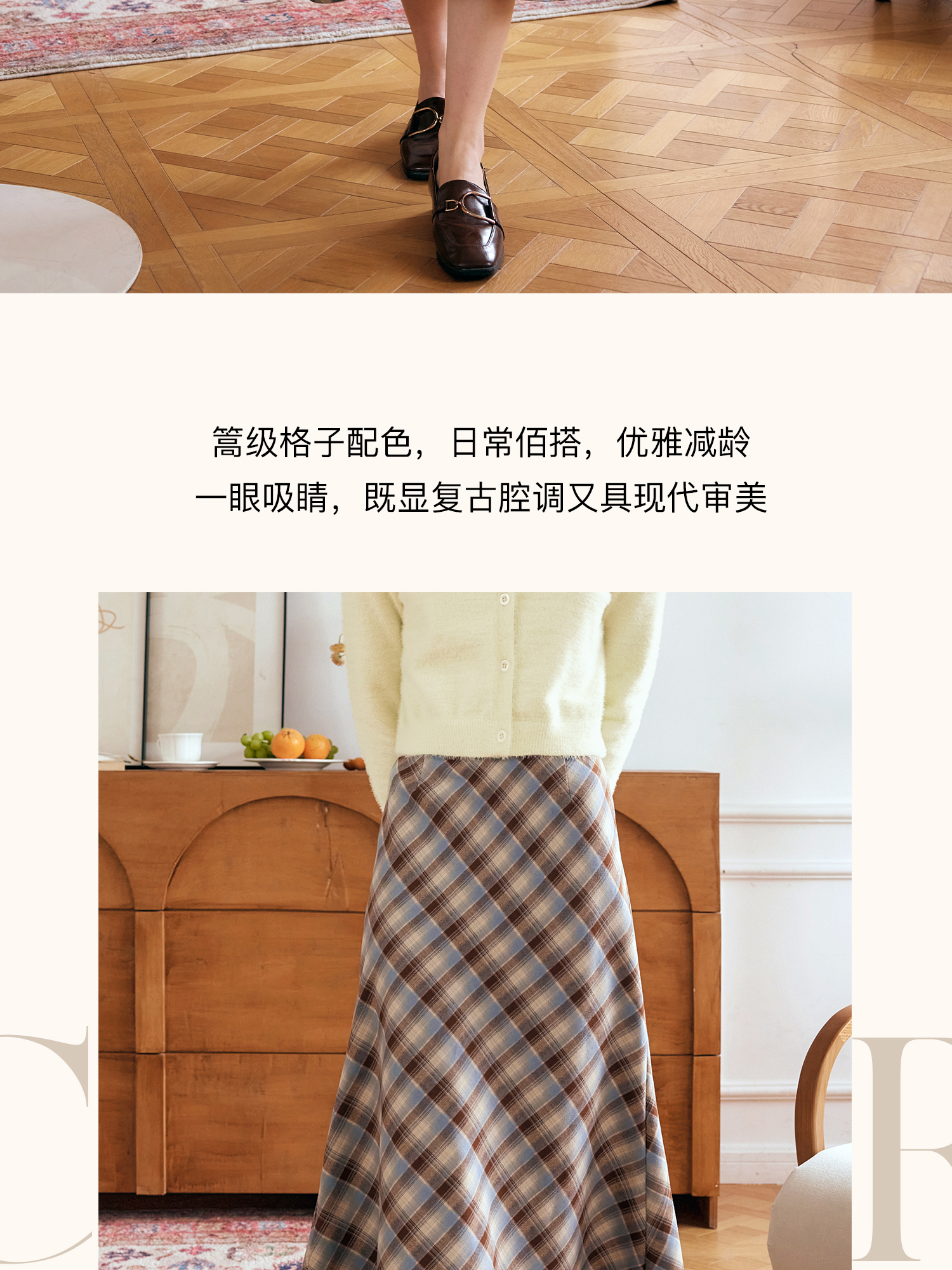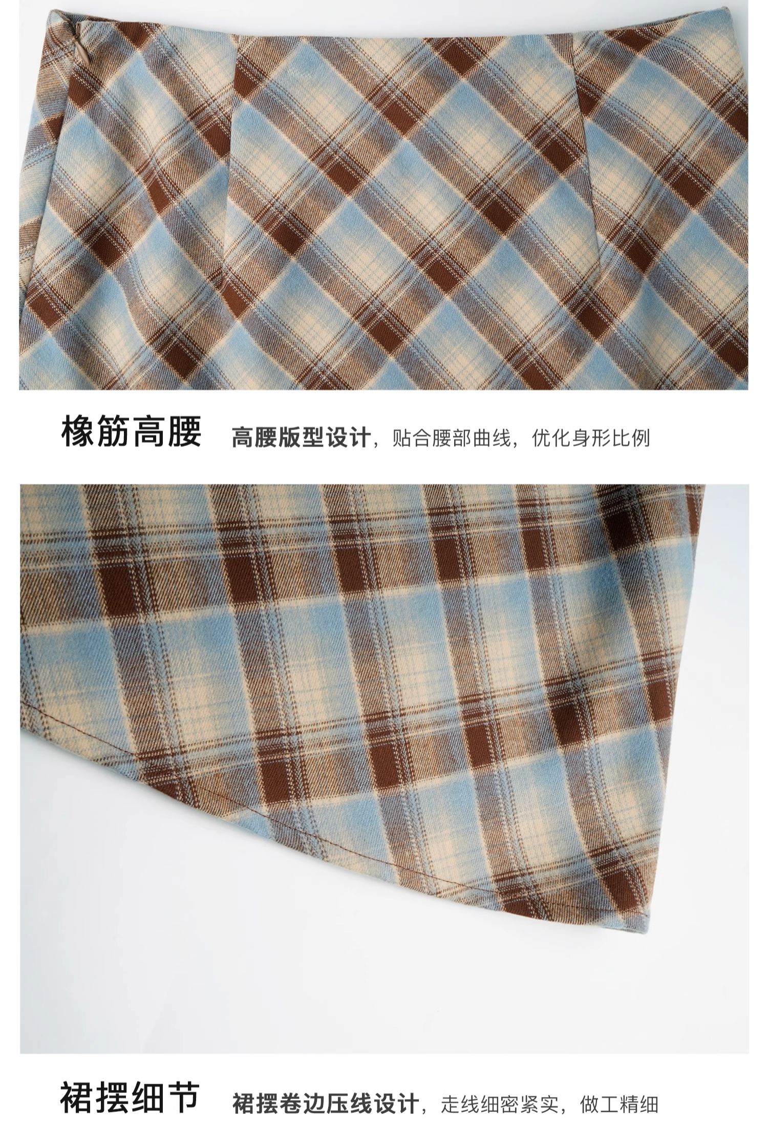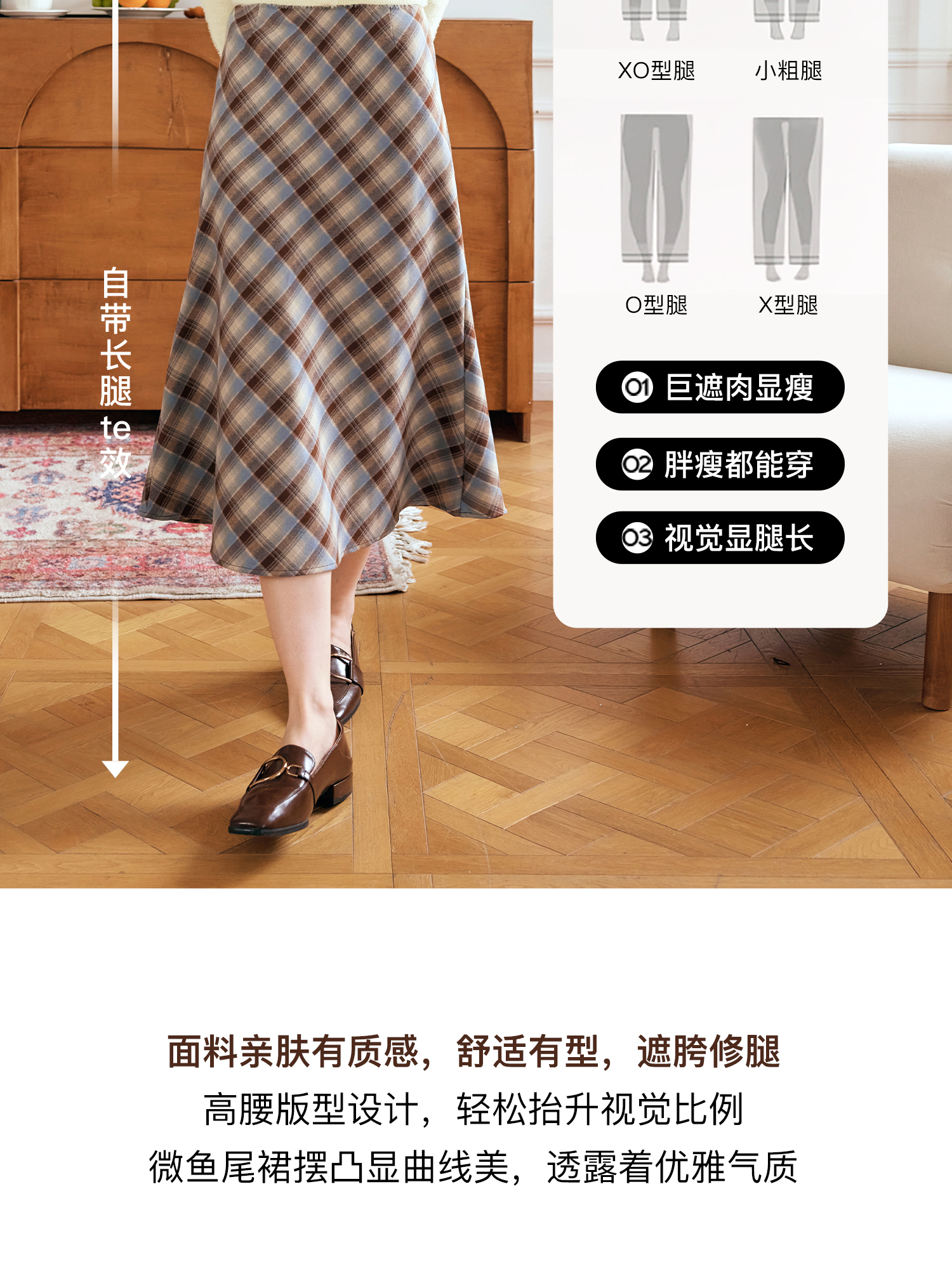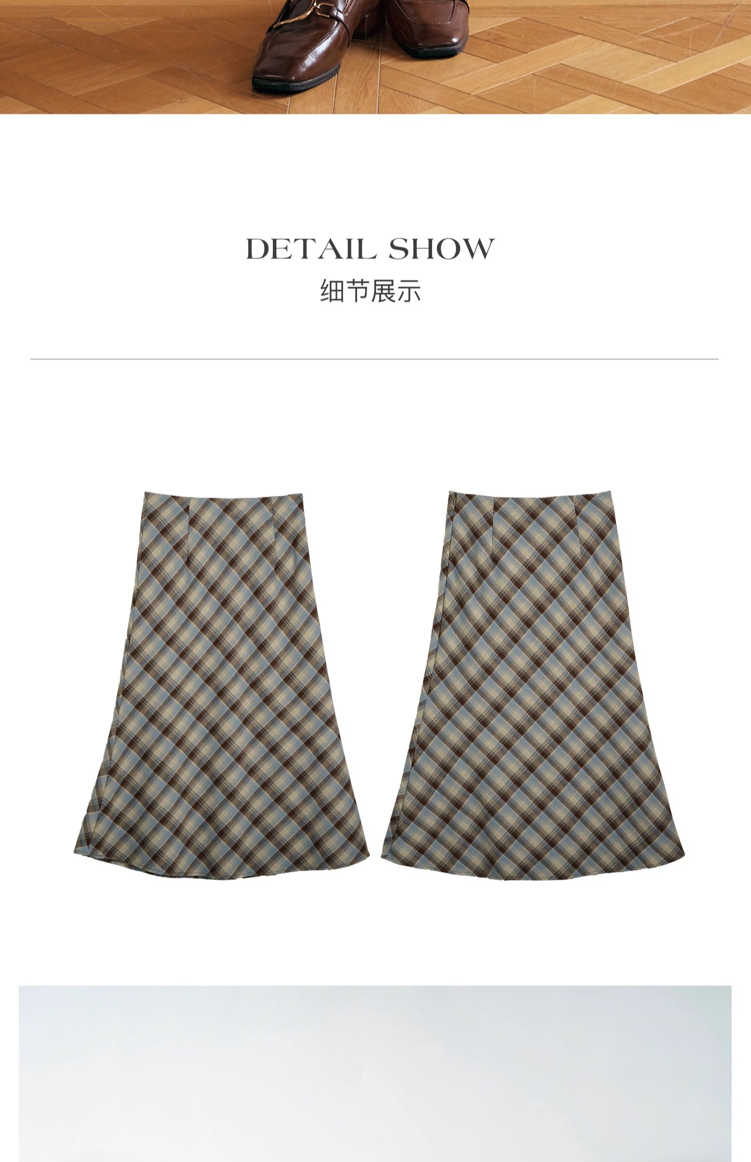 OLrain欧芮儿格纹半身裙女秋季2024年新款复古通勤斜裁鱼尾半裙