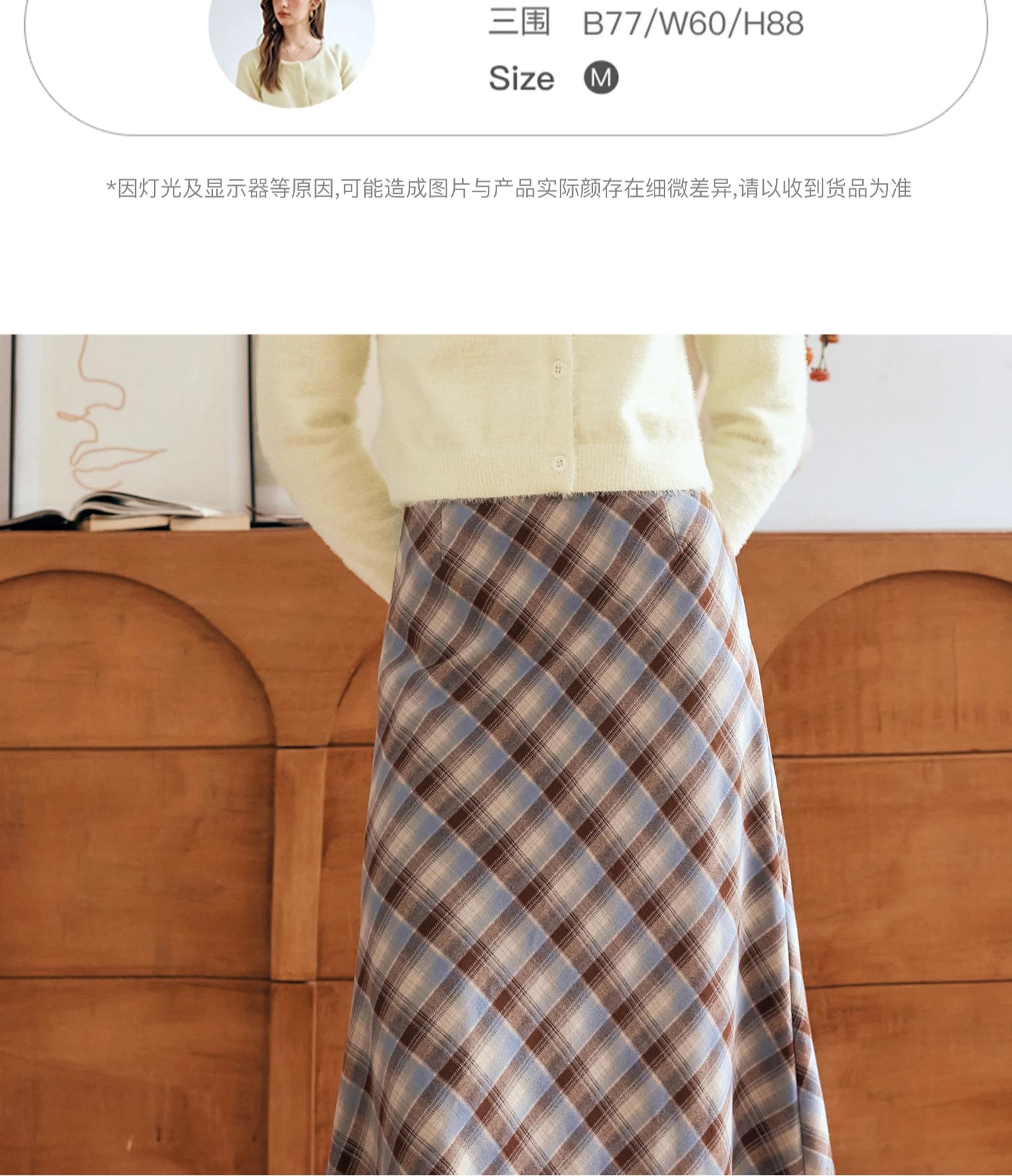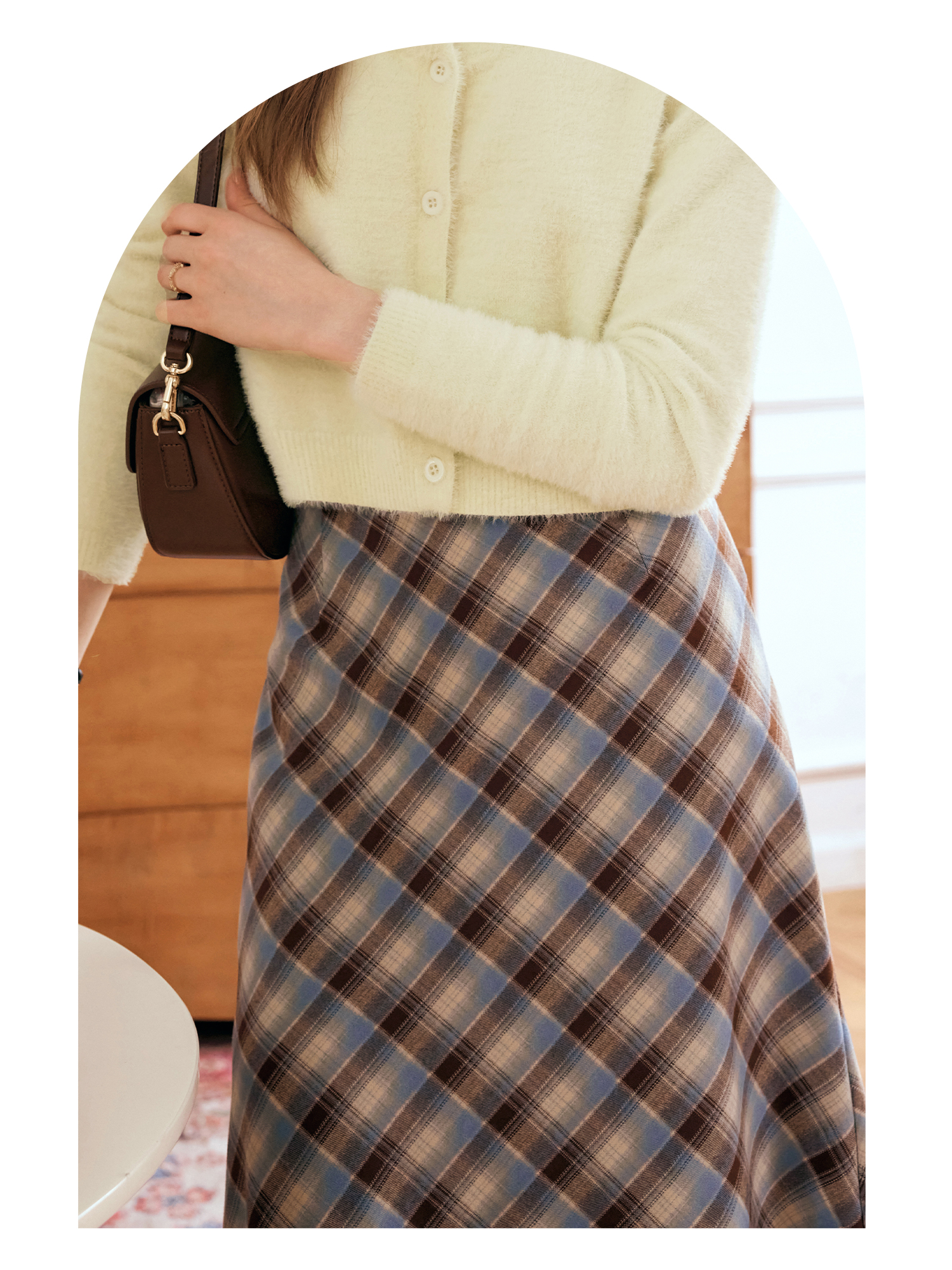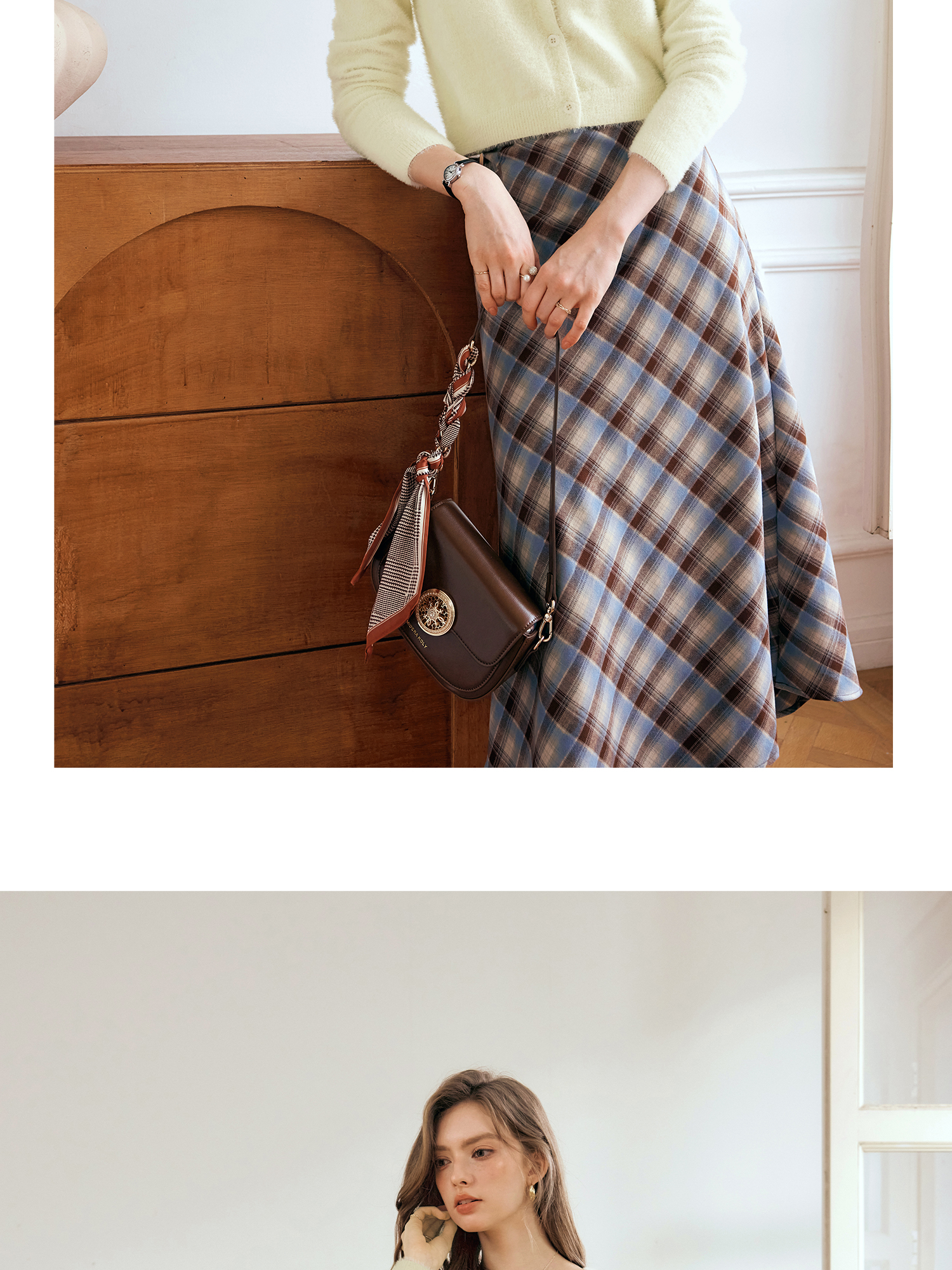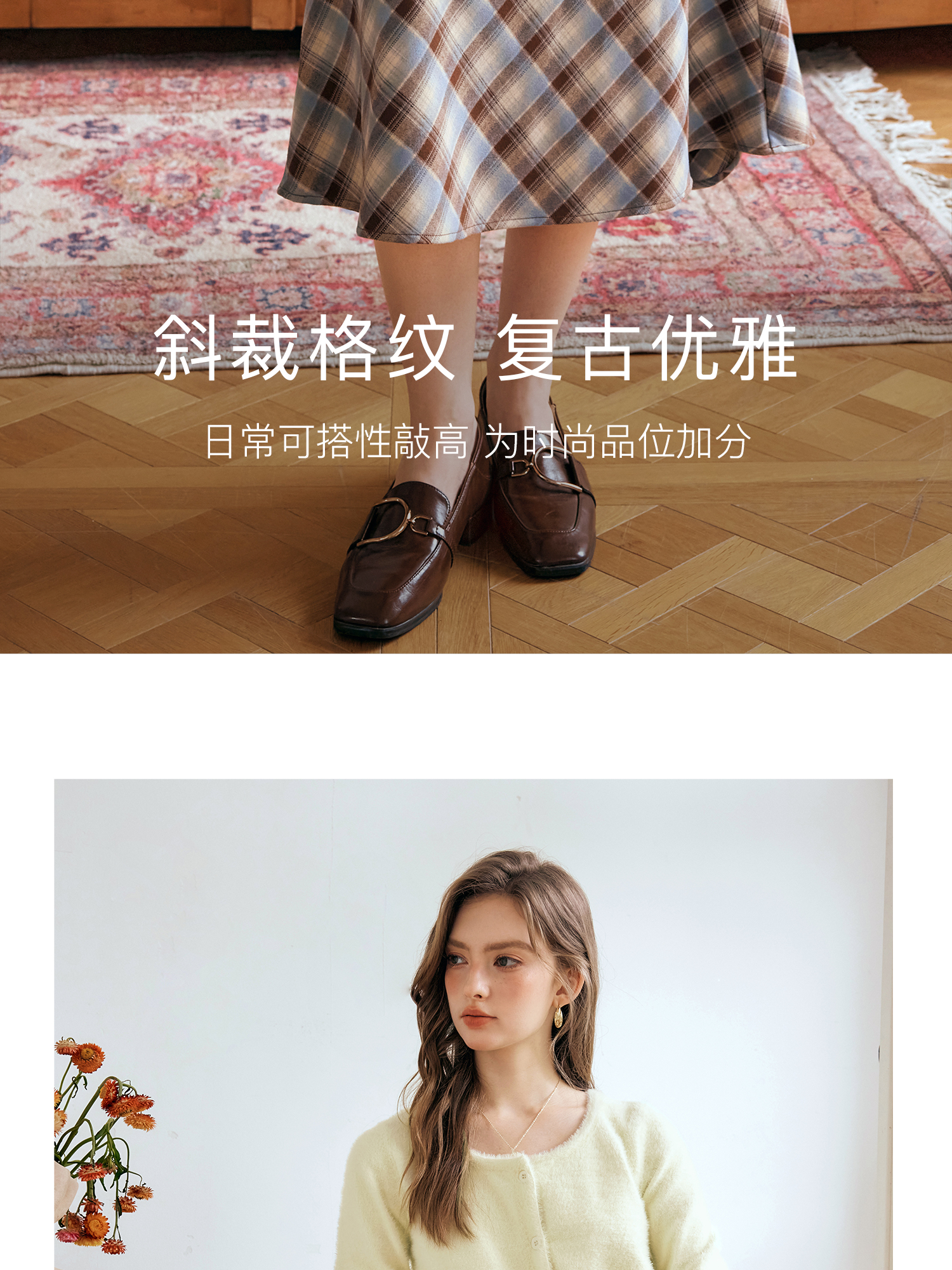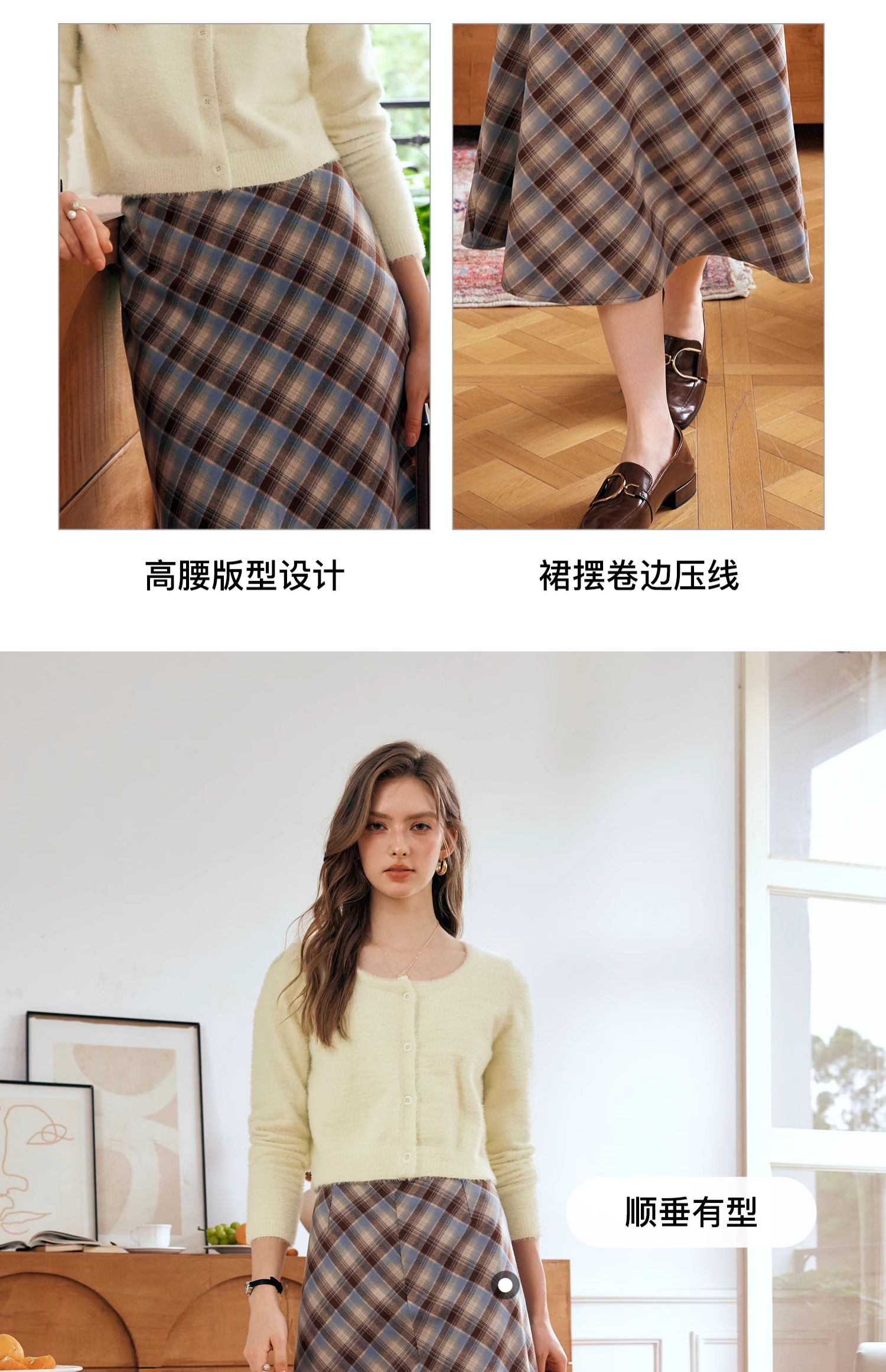 OLrain欧芮儿格纹半身裙女秋季2024年新款复古通勤斜裁鱼尾半裙